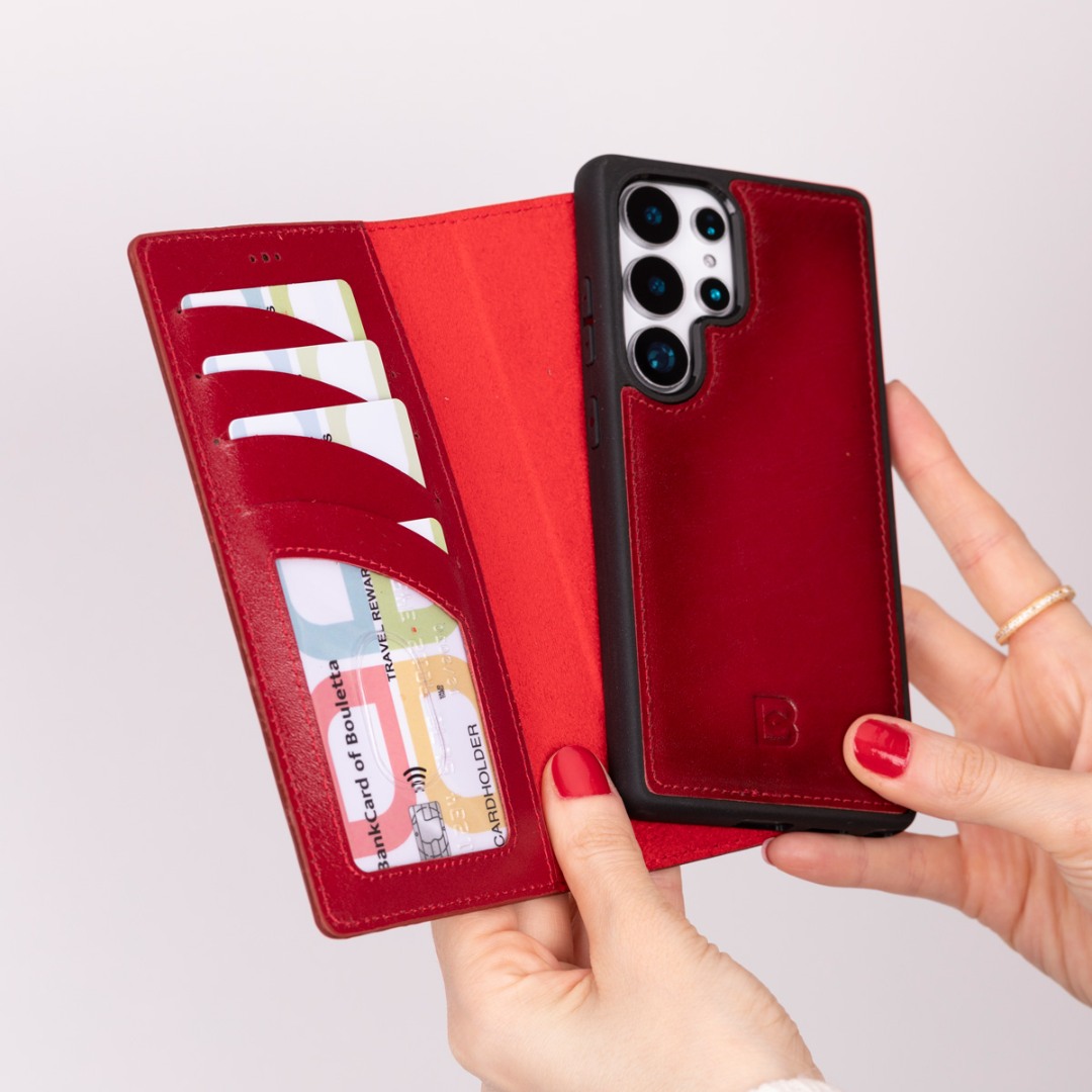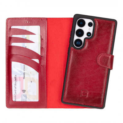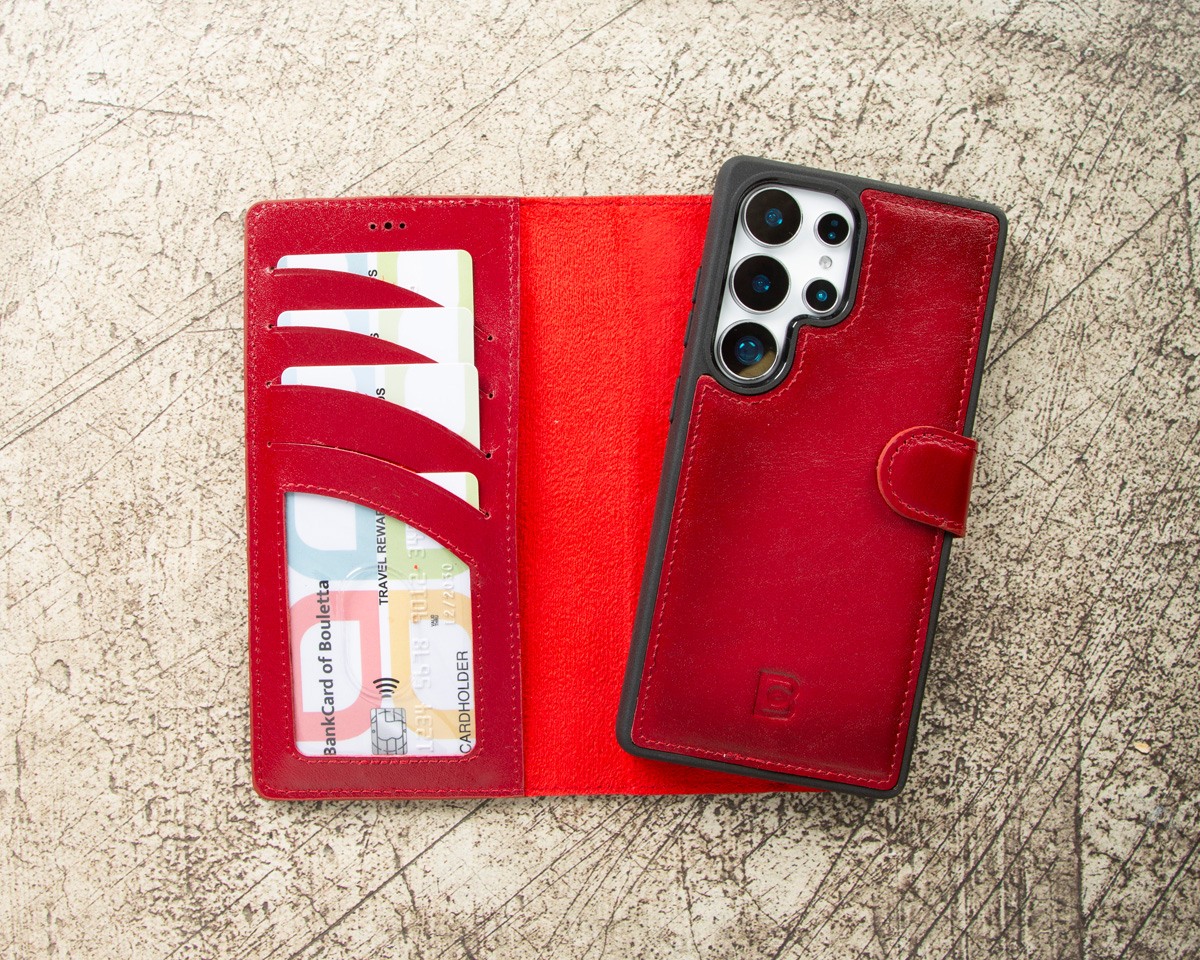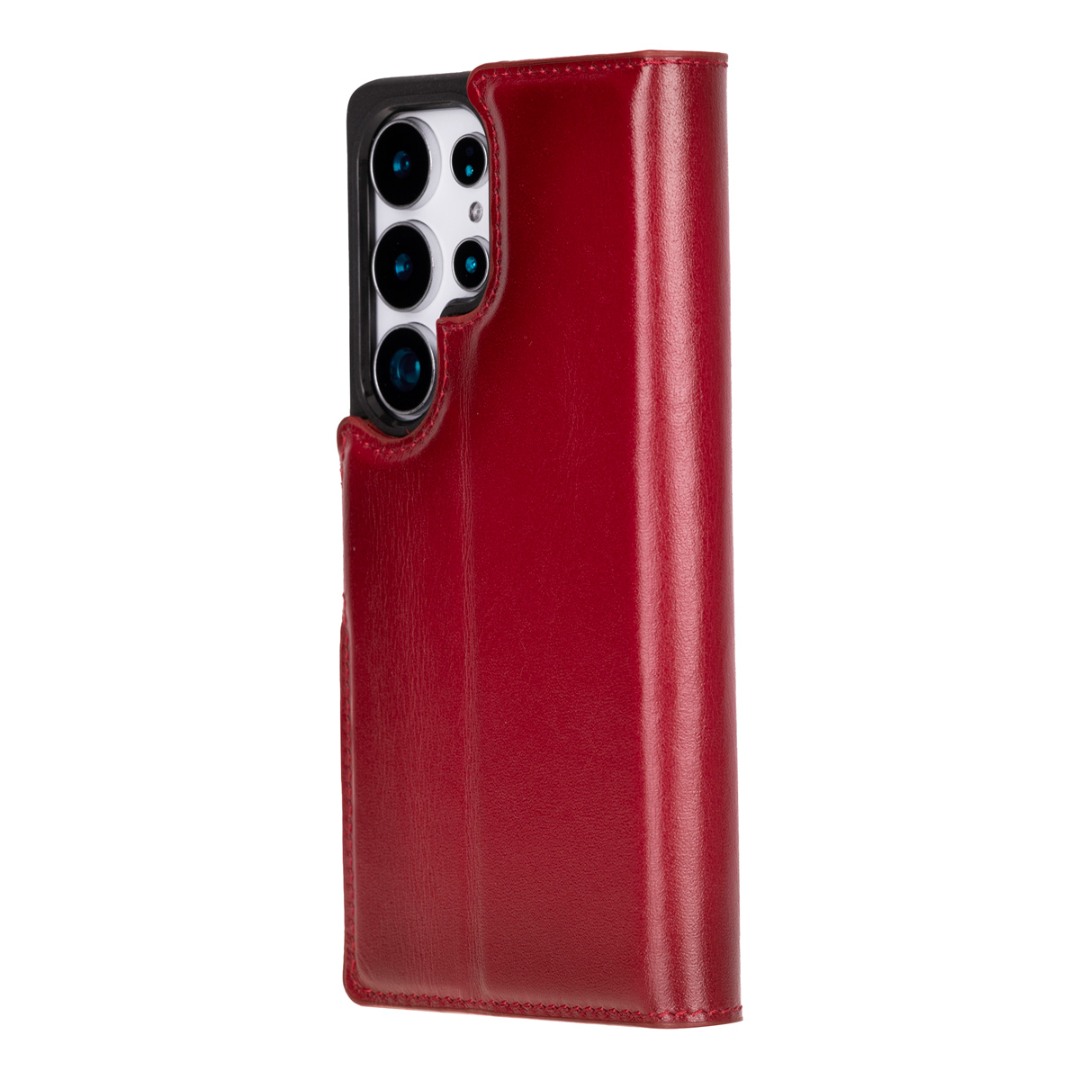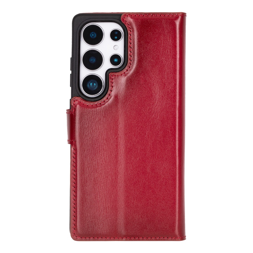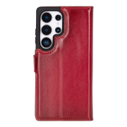 Husa polivalenta pentru Samsung Galaxy S25 Ultra din piele naturala premium, portofel + carcasa detasabila magnetic, functie vizionare video, inchidere sigura magnetica - Bouletta Magic Wallet, Burnished red