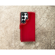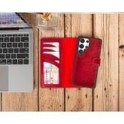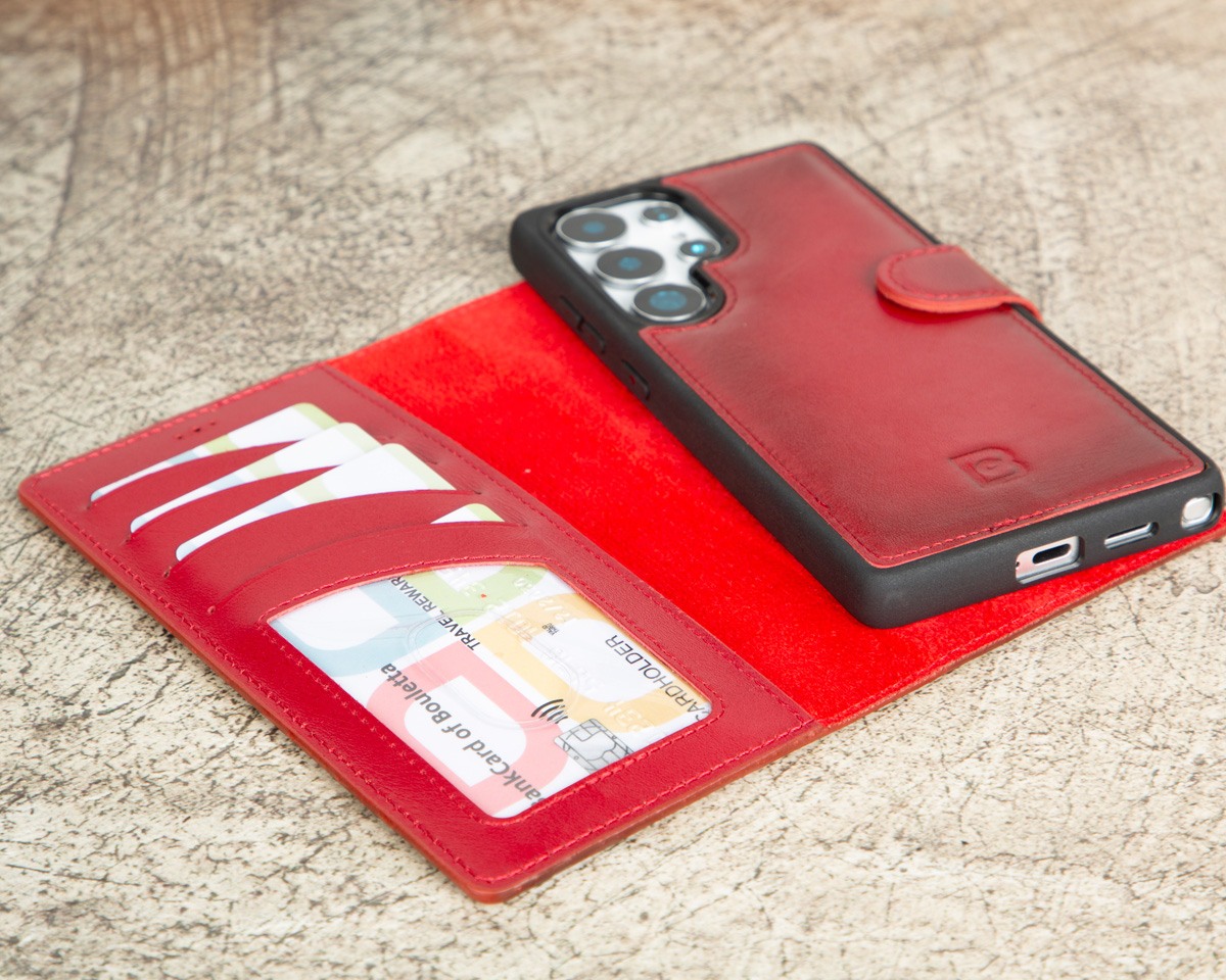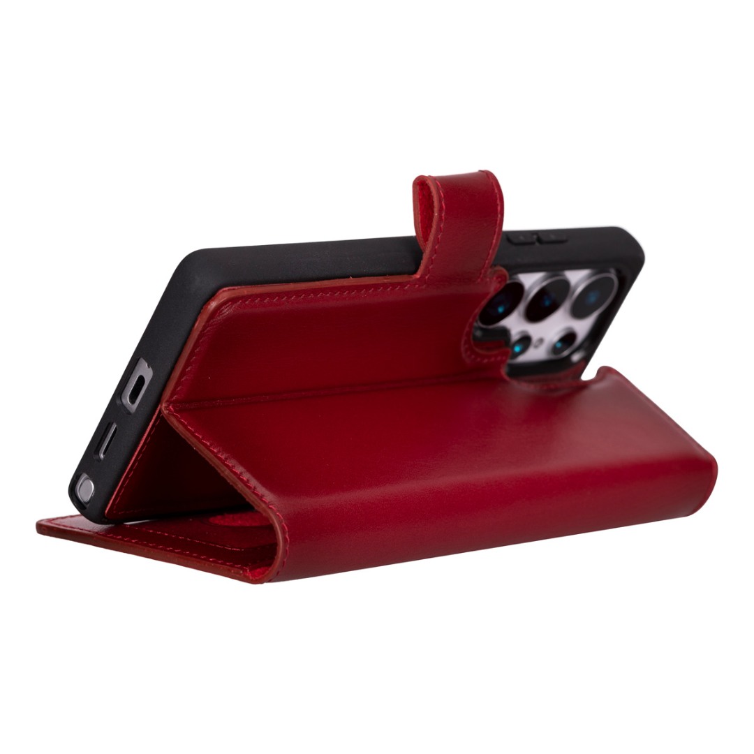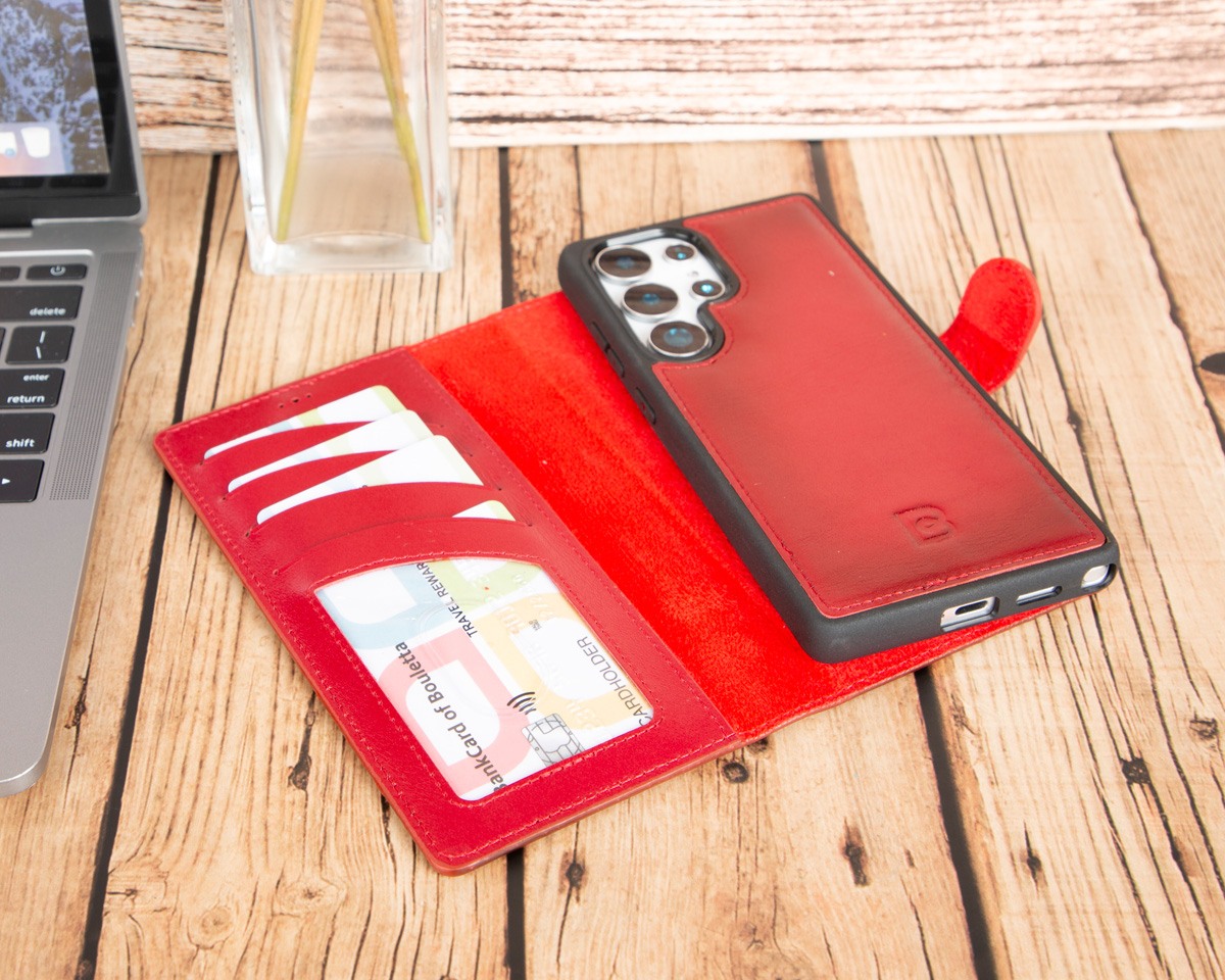 Husa polivalenta pentru Samsung Galaxy S25 Ultra din piele naturala premium, portofel + carcasa detasabila magnetic, functie vizionare video, inchidere sigura magnetica - Bouletta Magic Wallet, Burnished red