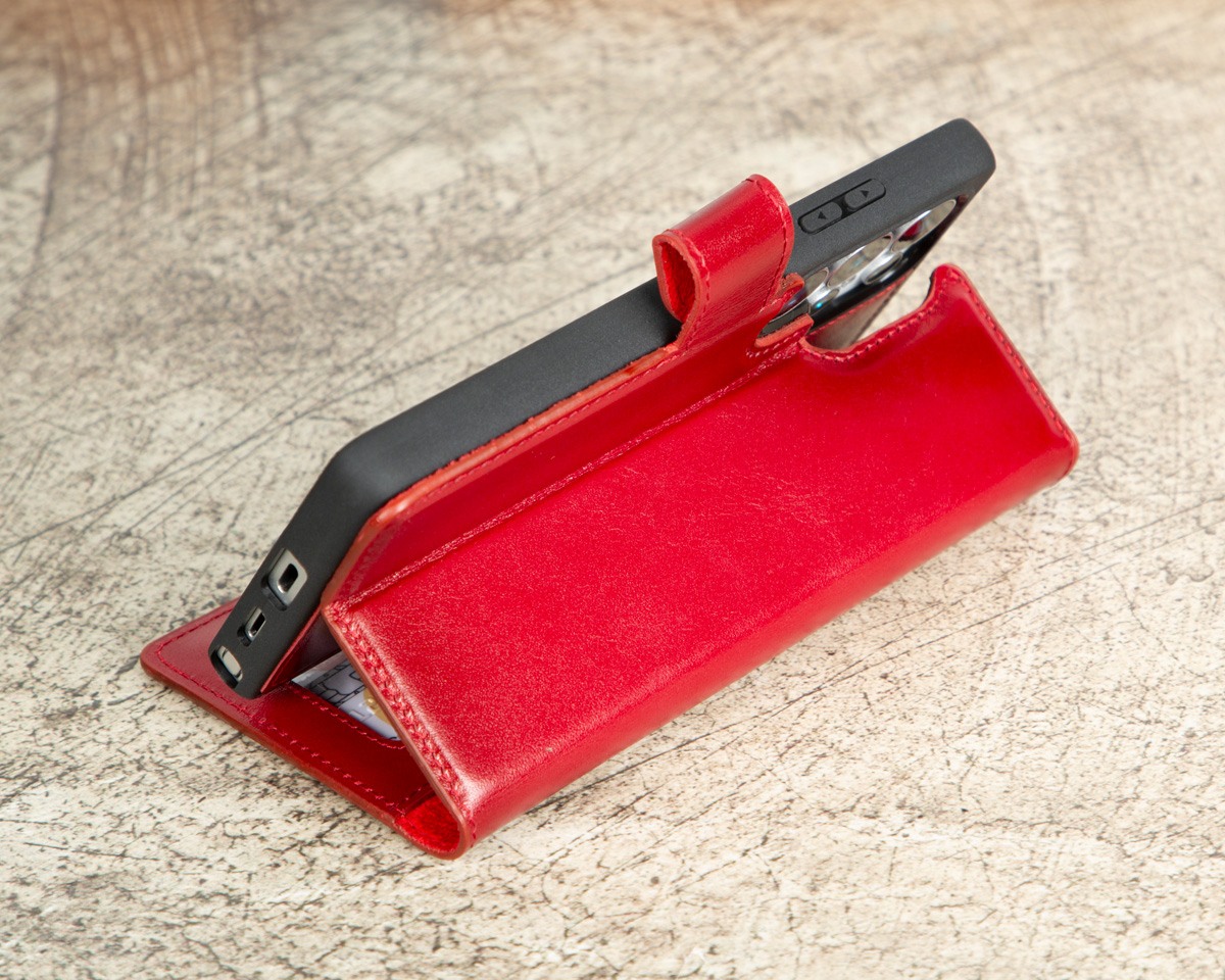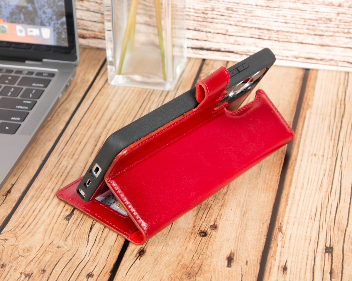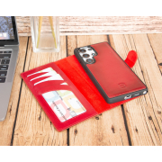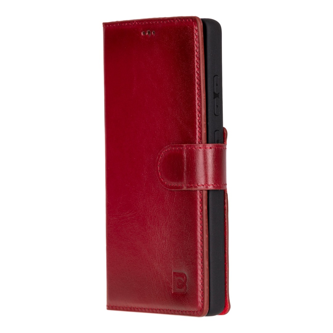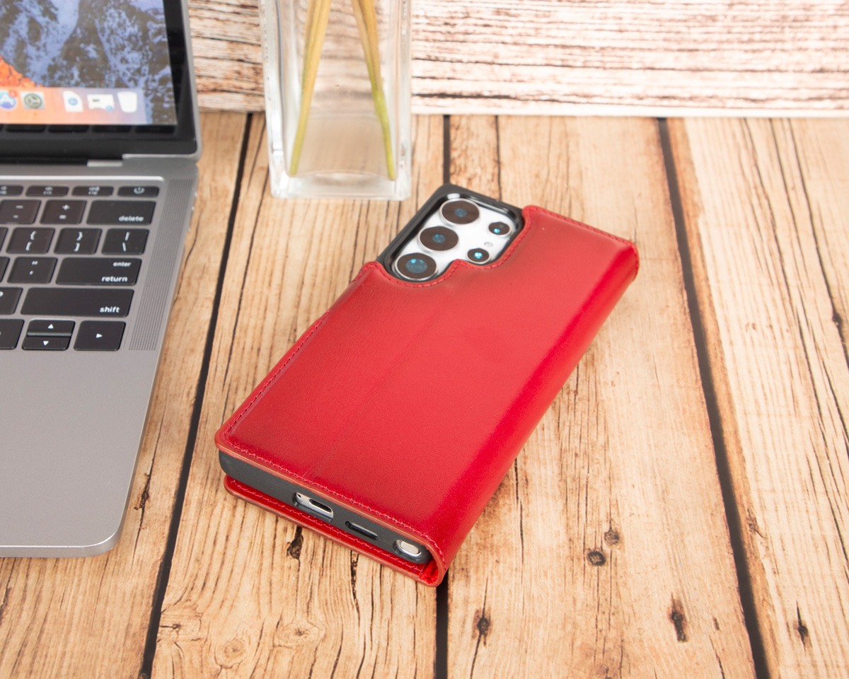 Husa polivalenta pentru Samsung Galaxy S25 Ultra din piele naturala premium, portofel + carcasa detasabila magnetic, functie vizionare video, inchidere sigura magnetica - Bouletta Magic Wallet, Burnished red
