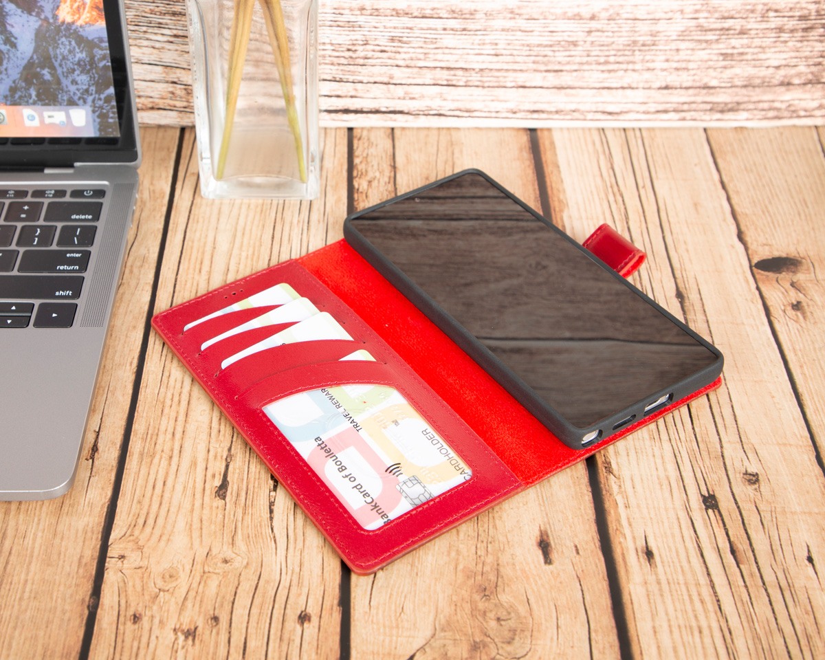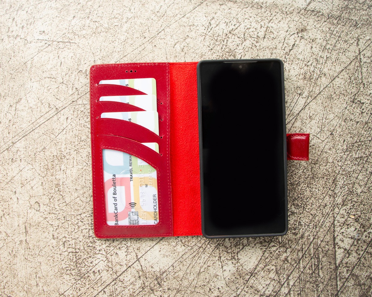 Clapeta se inchide magnetic, mentinand telefonul si cardurile in siguranta in orice moment.