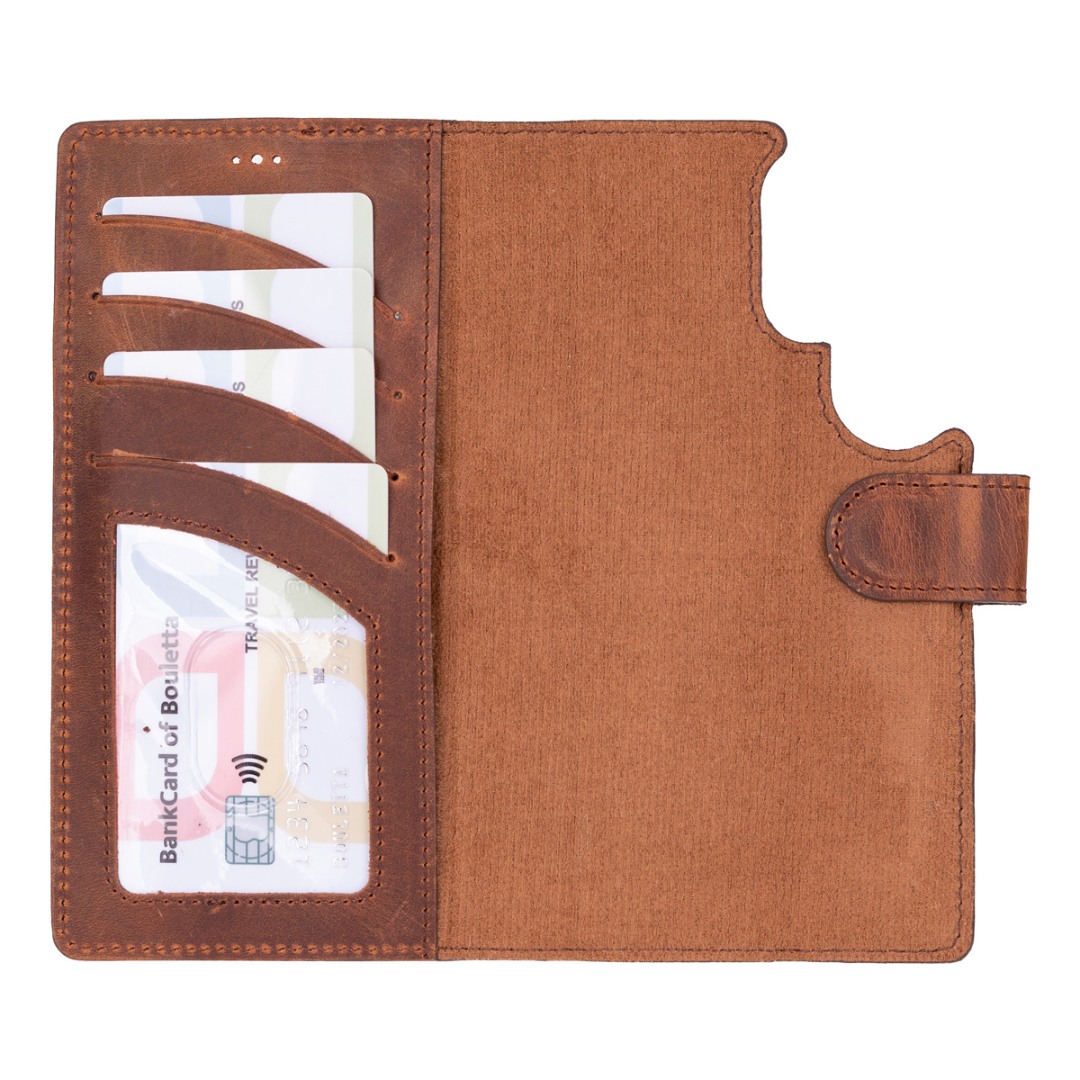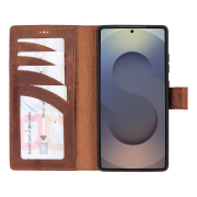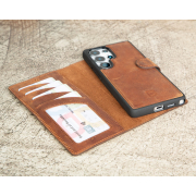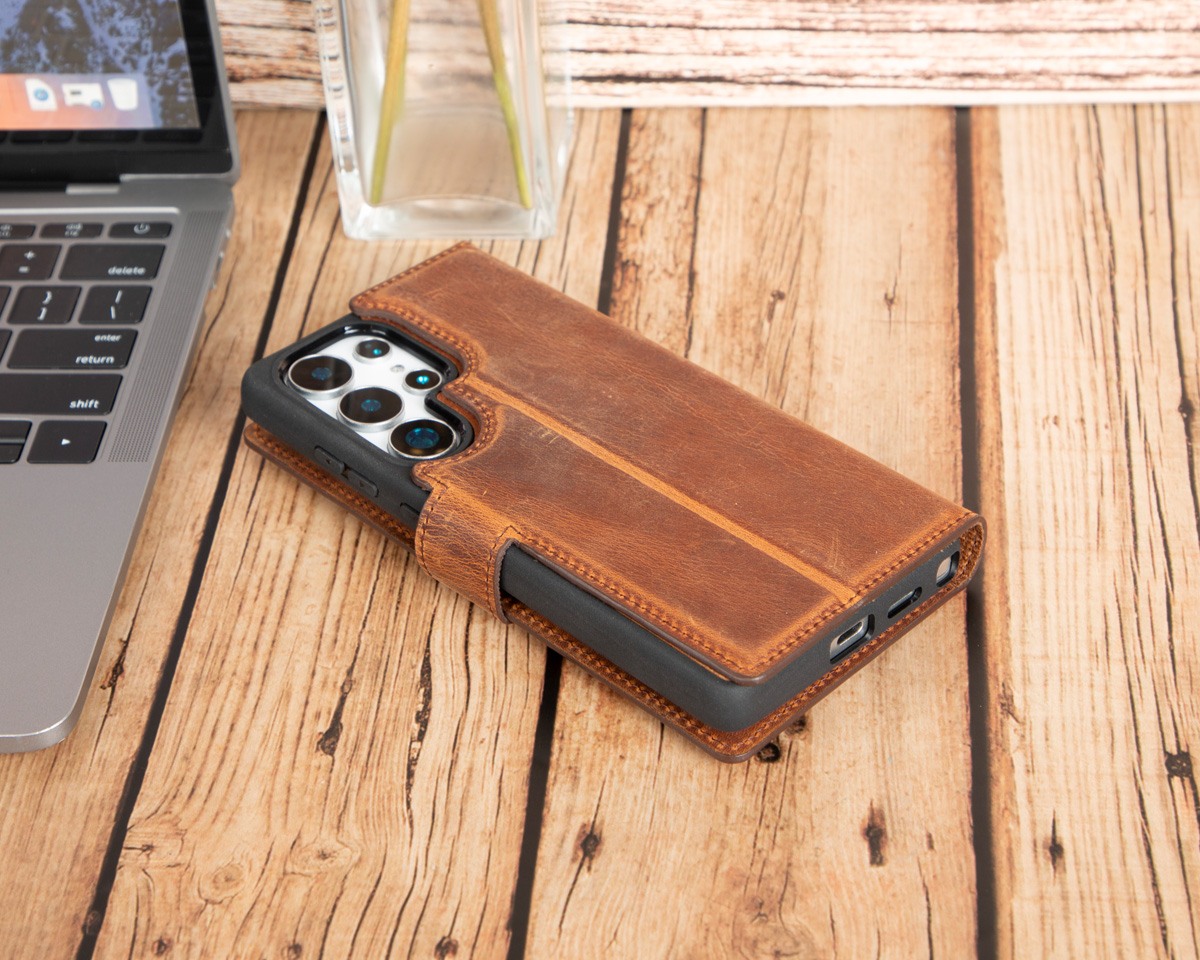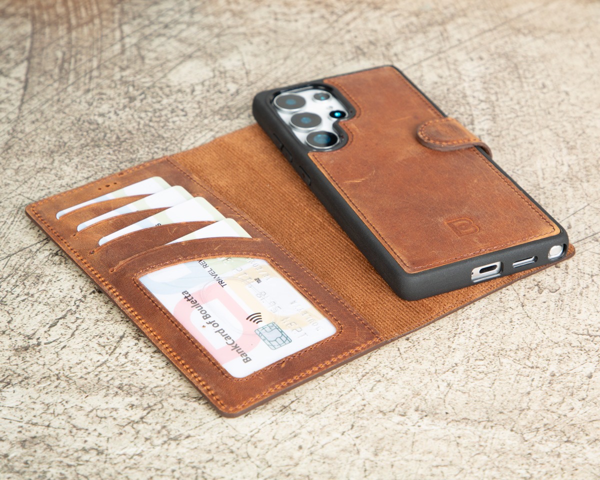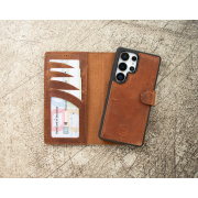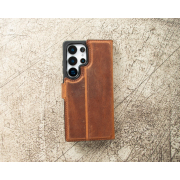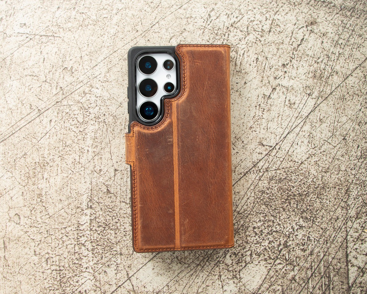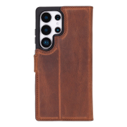 Husa polivalenta pentru Samsung Galaxy S25 Ultra din piele naturala premium, portofel + carcasa detasabila magnetic, functie vizionare video, inchidere sigura magnetica - Bouletta Magic Wallet, Antique brown