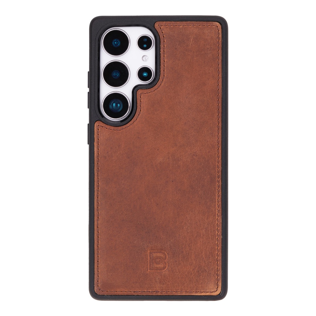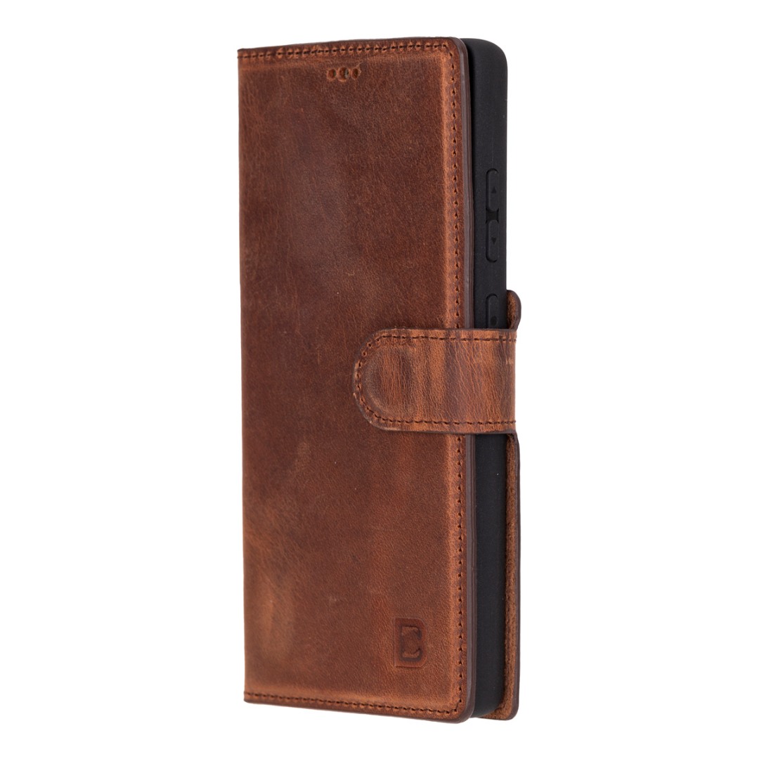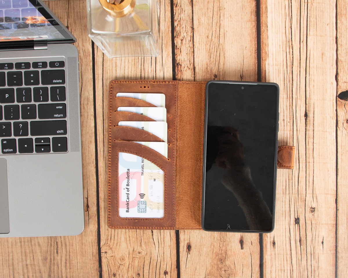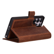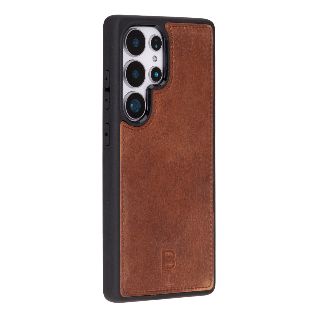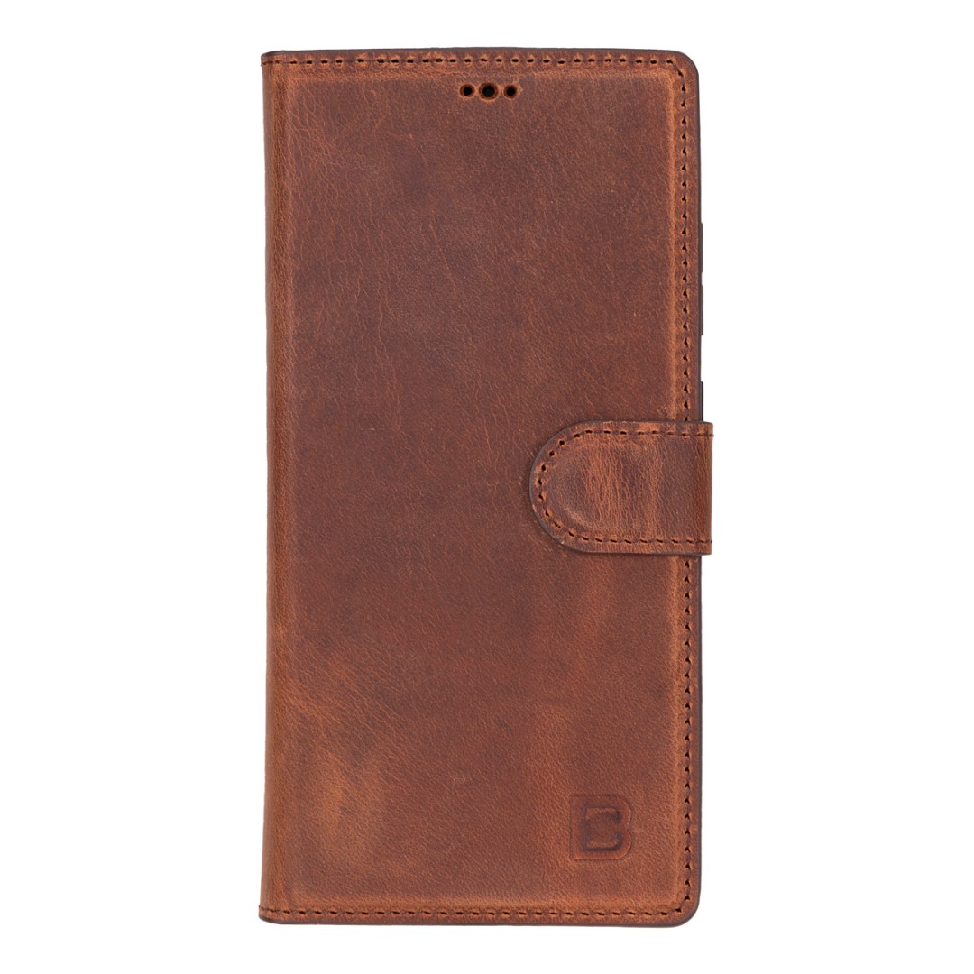 Husa polivalenta pentru Samsung Galaxy S25 Ultra din piele naturala premium, portofel + carcasa detasabila magnetic, functie vizionare video, inchidere sigura magnetica - Bouletta Magic Wallet, Antique brown