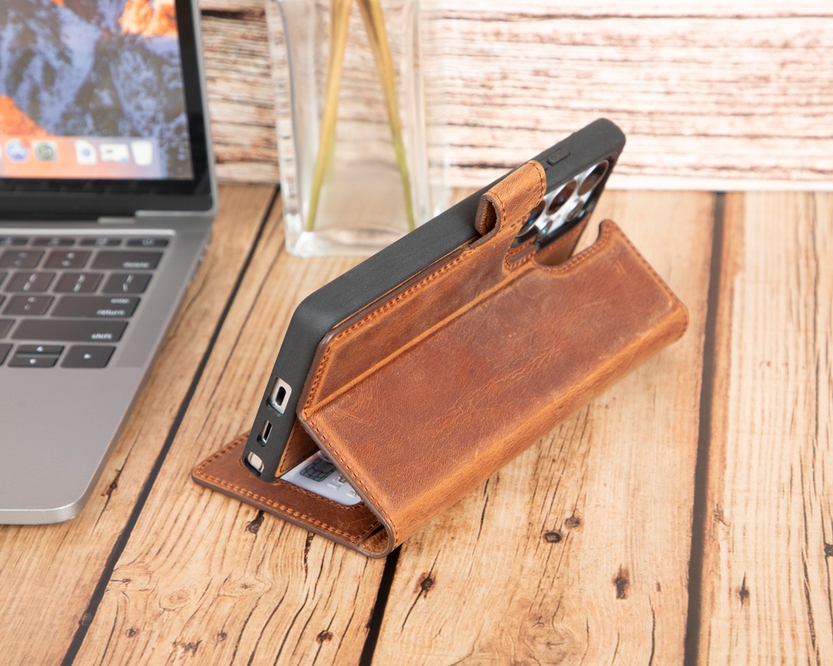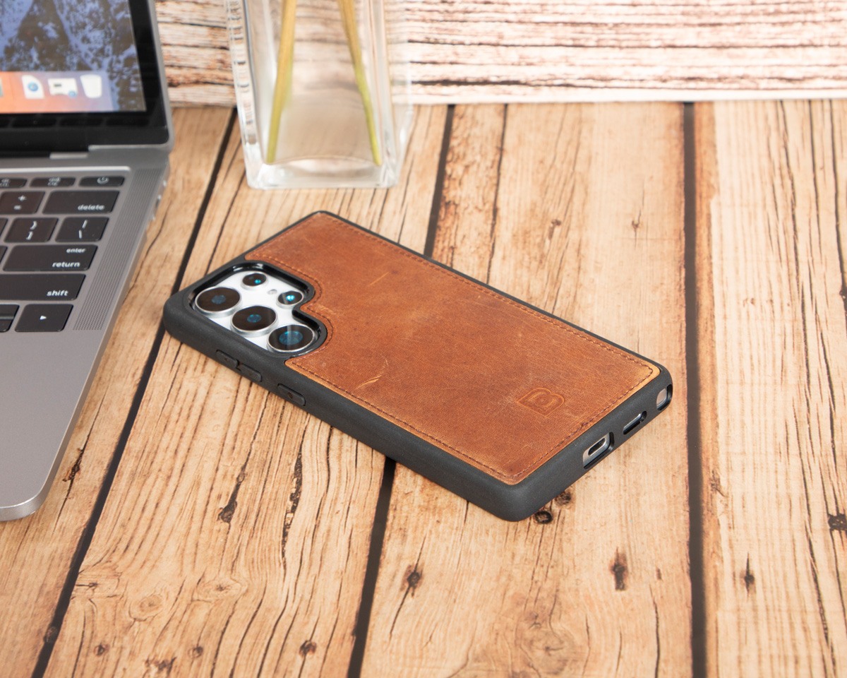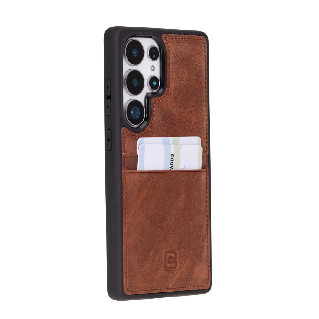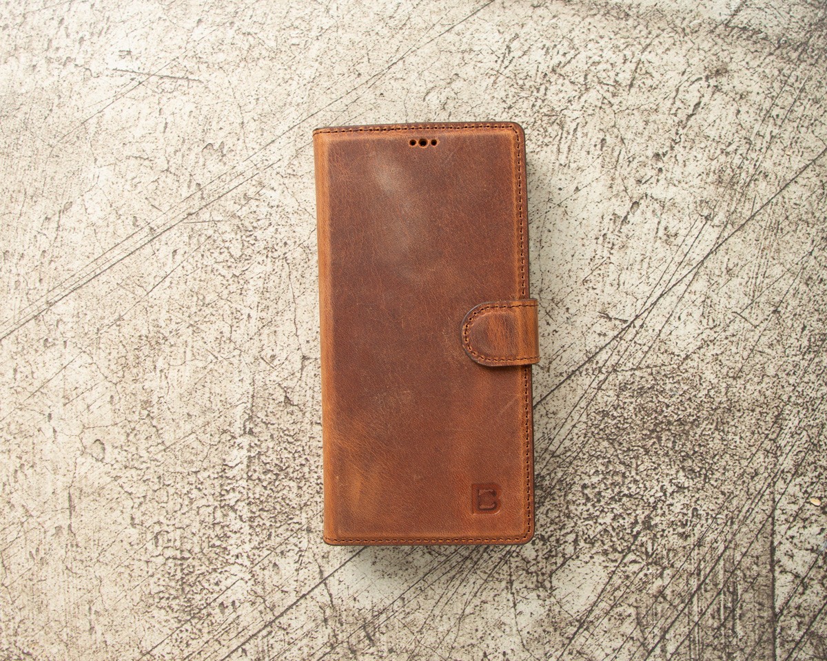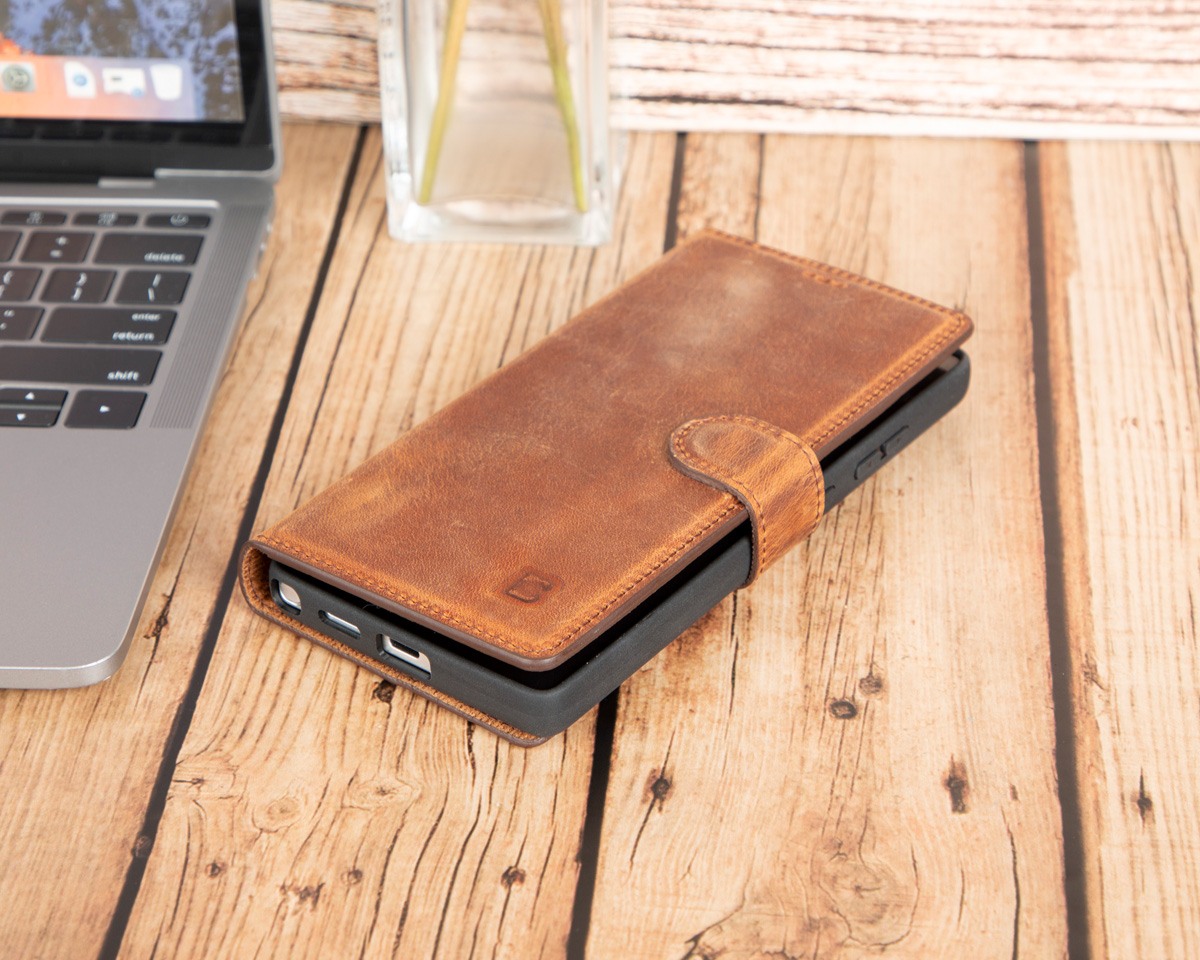 Husa polivalenta pentru Samsung Galaxy S25 Ultra din piele naturala premium, portofel + carcasa detasabila magnetic, functie vizionare video, inchidere sigura magnetica - Bouletta Magic Wallet, Antique brown