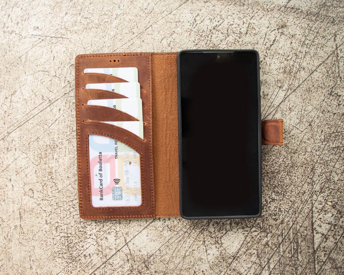 Clapeta se inchide magnetic, mentinand telefonul si cardurile in siguranta in orice moment.