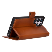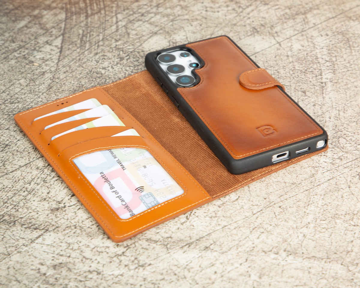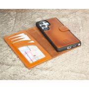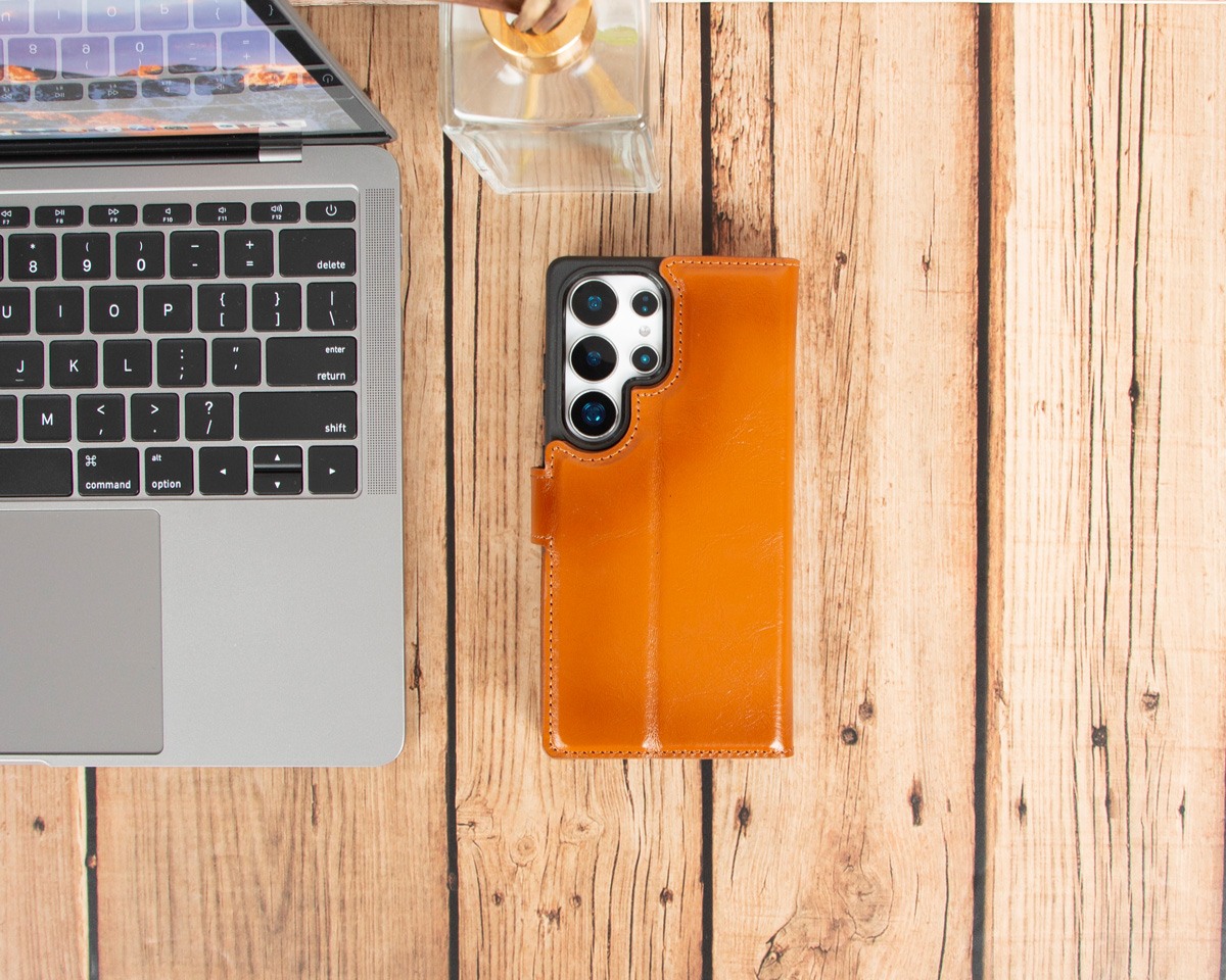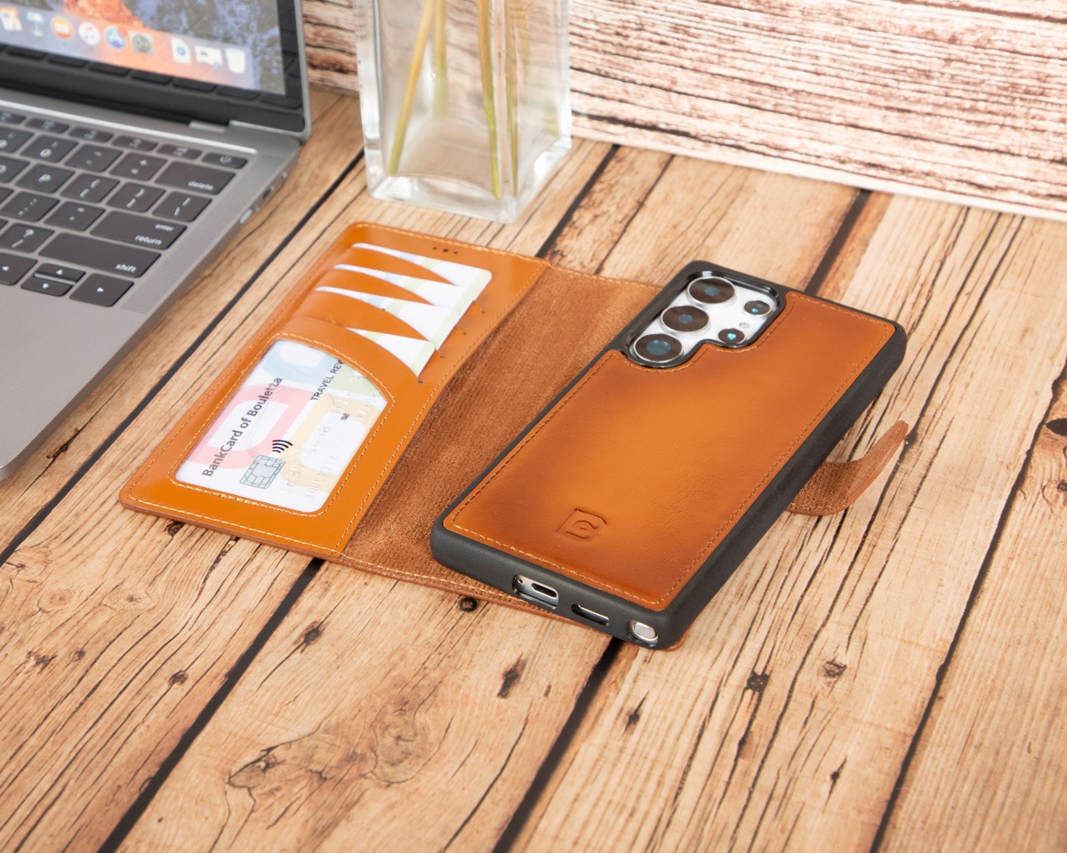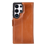Husa polivalenta pentru Samsung Galaxy S25 Ultra din piele naturala premium, portofel + carcasa detasabila magnetic, functie vizionare video, inchidere sigura magnetica - Bouletta Magic Wallet, Burnished tan