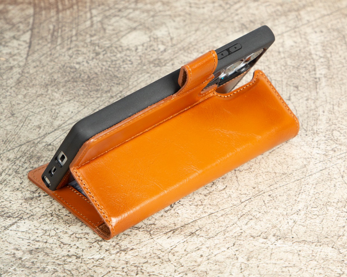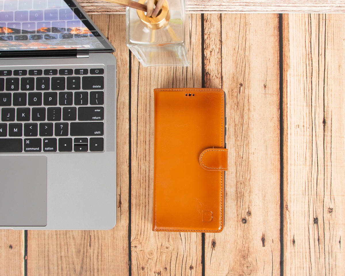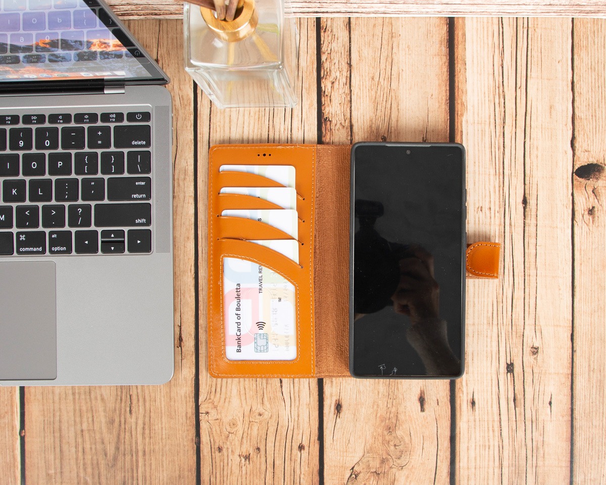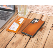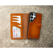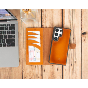 Husa polivalenta pentru Samsung Galaxy S25 Ultra din piele naturala premium, portofel + carcasa detasabila magnetic, functie vizionare video, inchidere sigura magnetica - Bouletta Magic Wallet, Burnished tan