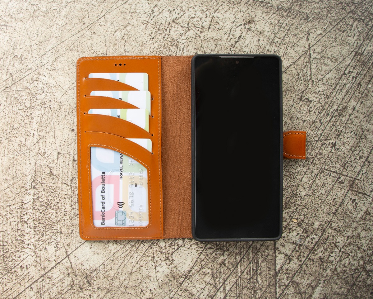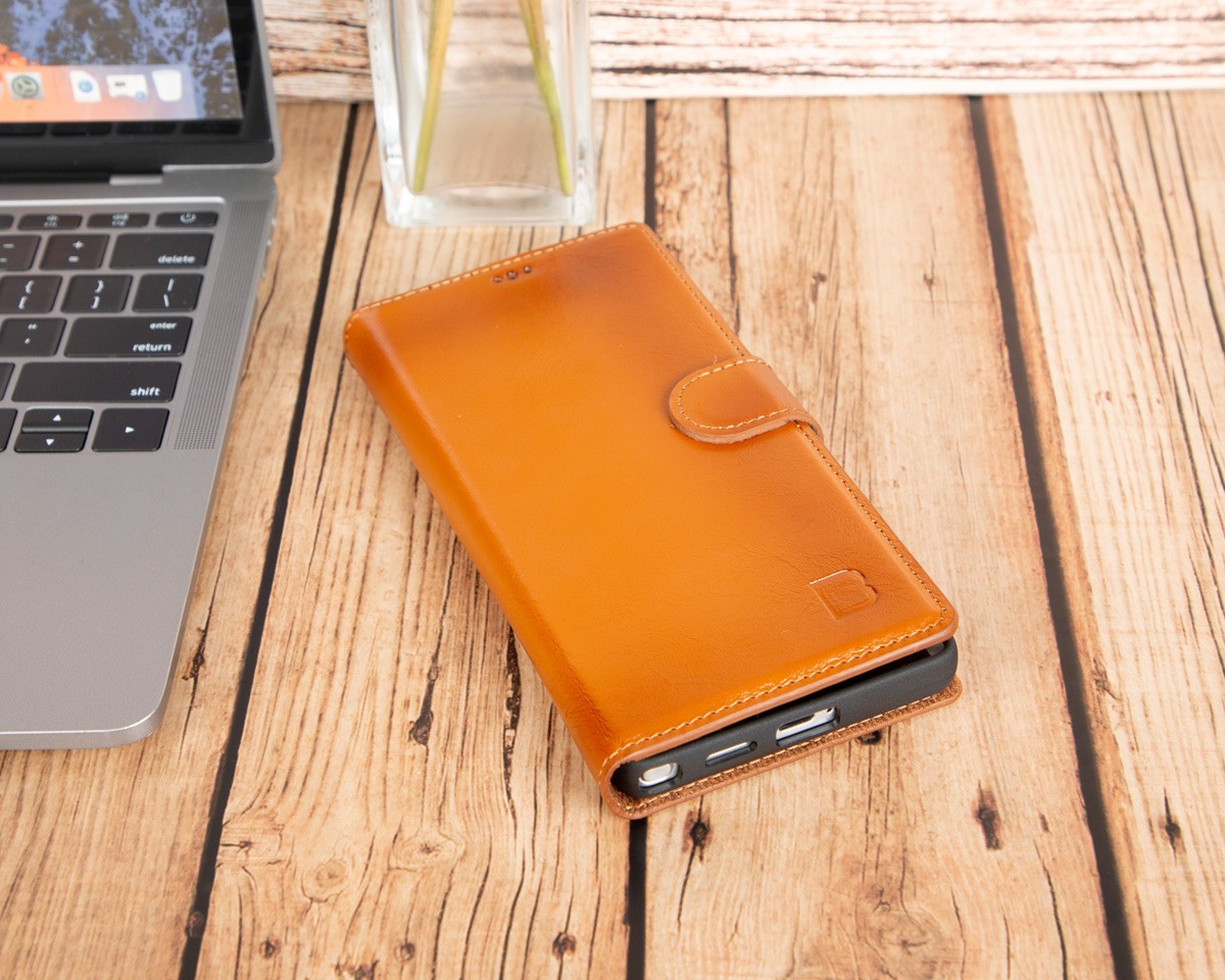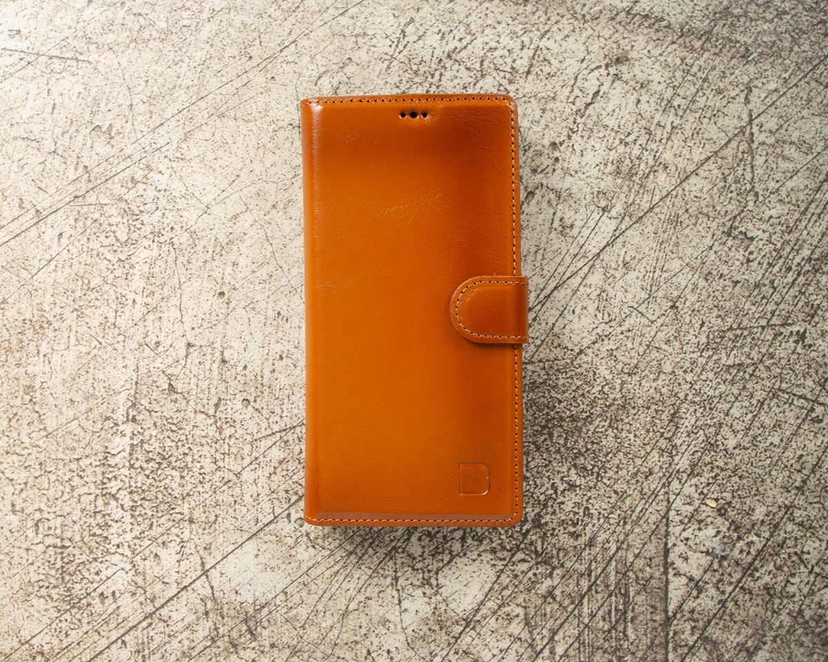 Confectionata manual din piele naturala premium, husa ofera un aspect elegant si o textura placuta, avand la interior o microfibra moale pentru protectia dispozitivului.