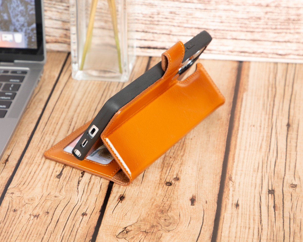 Clapeta se inchide magnetic, mentinand telefonul si cardurile in siguranta in orice moment.