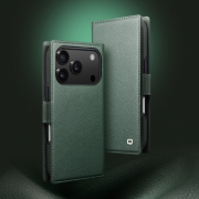 Husa polivalenta pentru iPhone 17 Pro din piele naturala de bovina, carcasa detasabila magnetic si portofel integrat, compatibil MagSafe si suporturi auto magnetice, inchidere magnetica discreta, Qialino, Verde - Forest Green