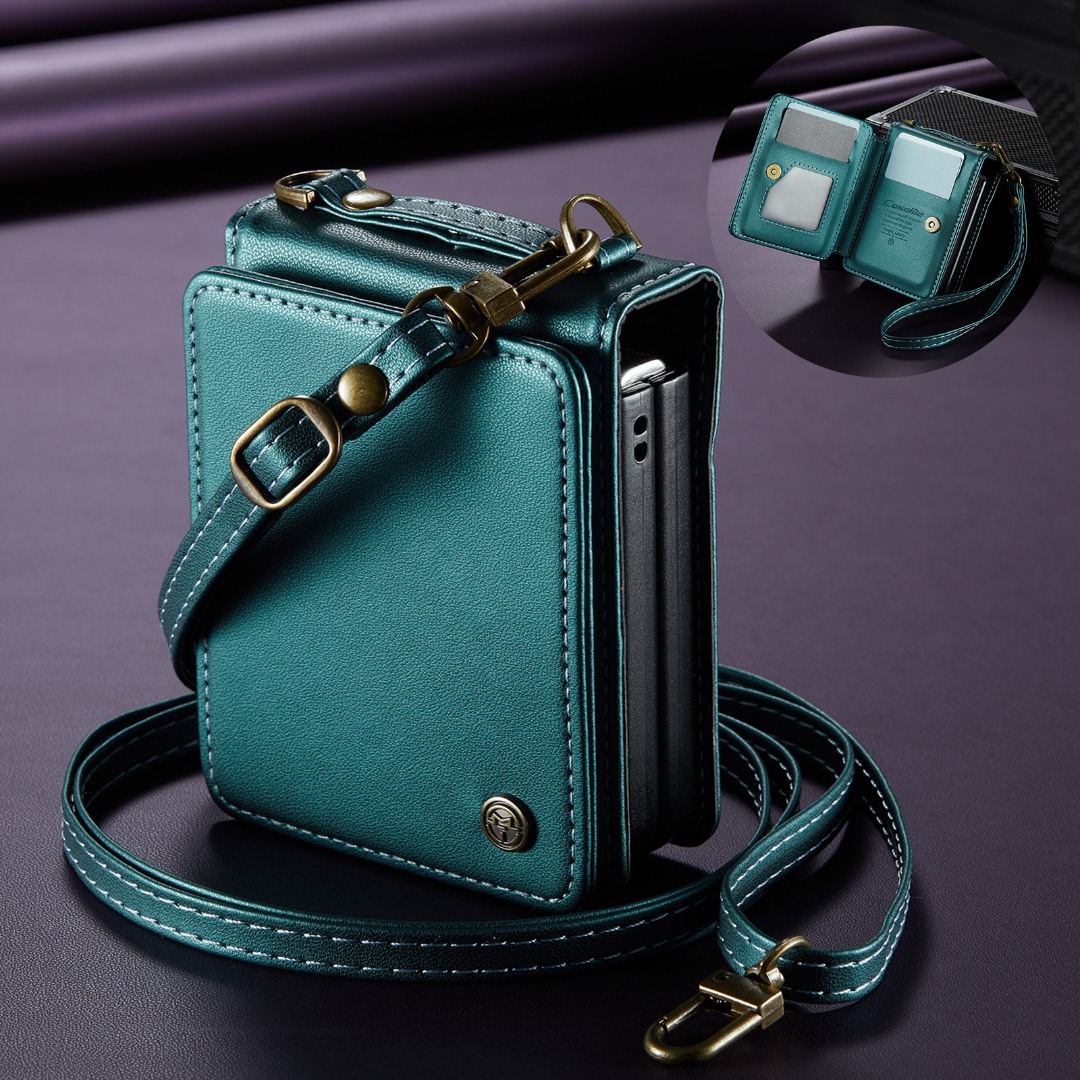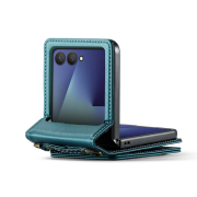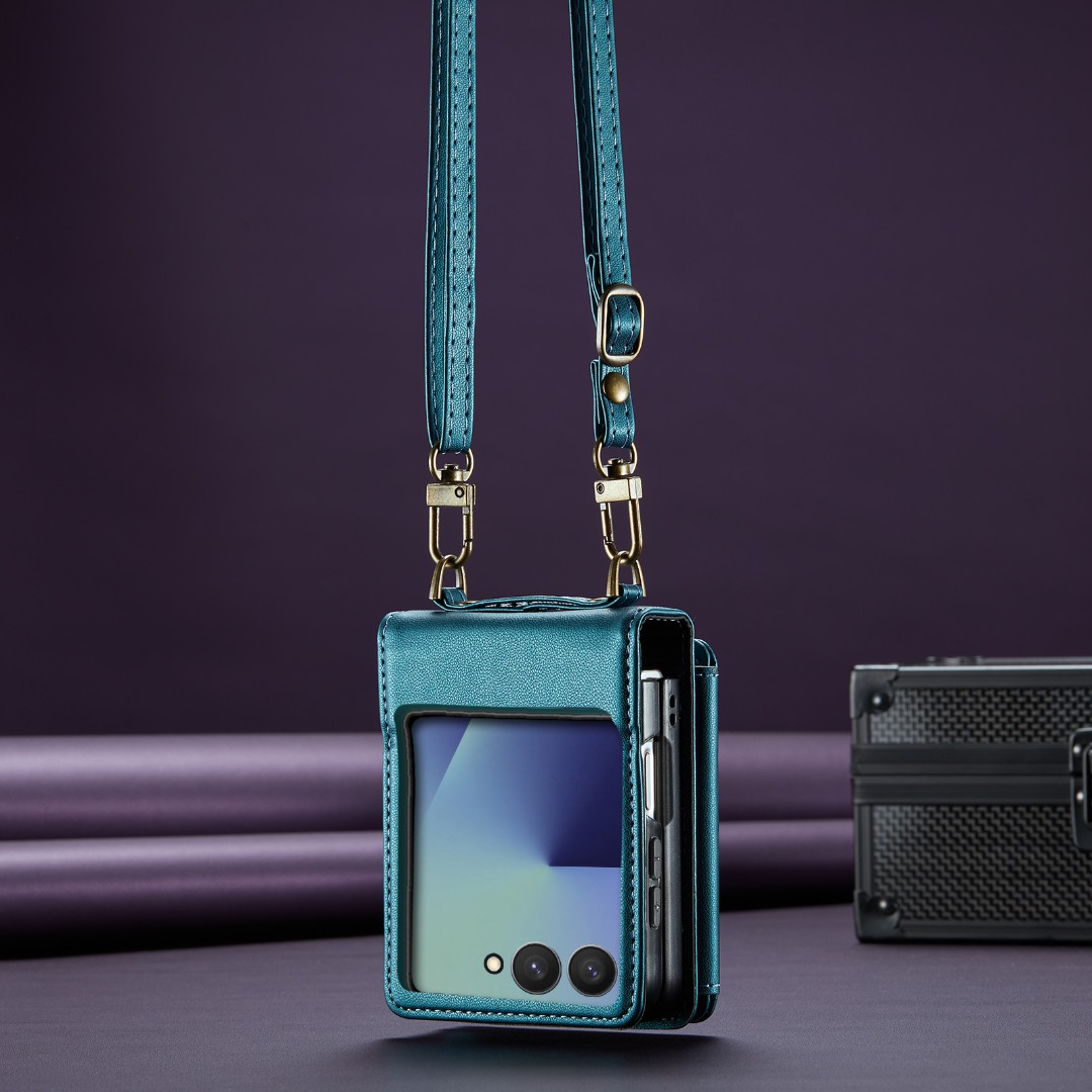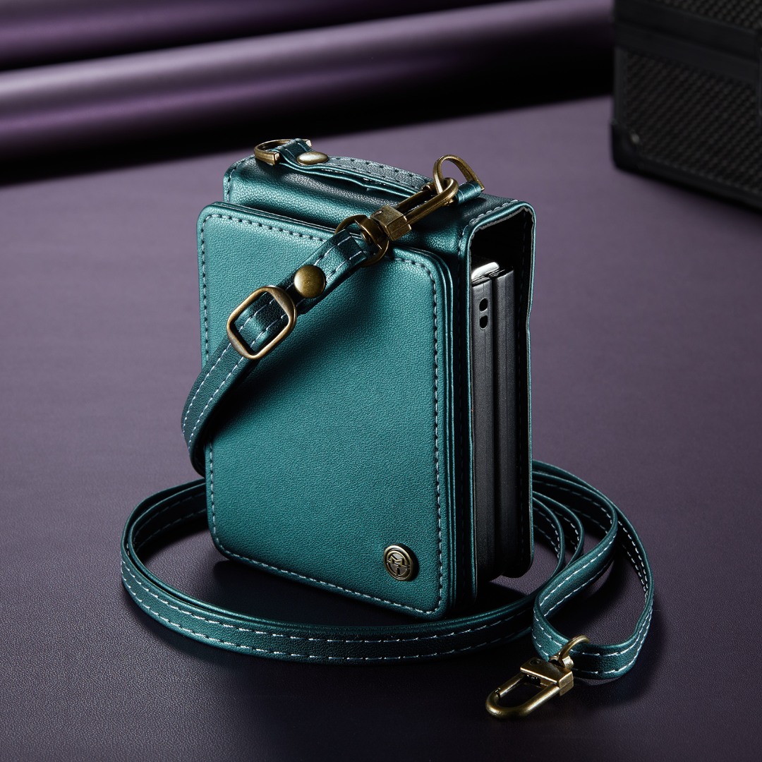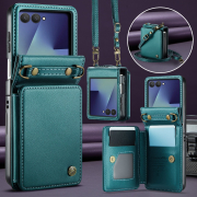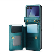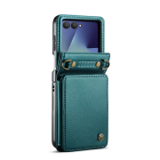 Husa / Portofel / Geanta piele textura moale si aderenta in mana, tip carcasa, protectie completa, 2 curele detasabile, buzunar carduri, Samsung Galaxy Z Flip7, CaseMe, Verde