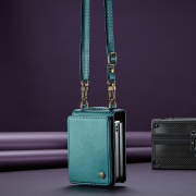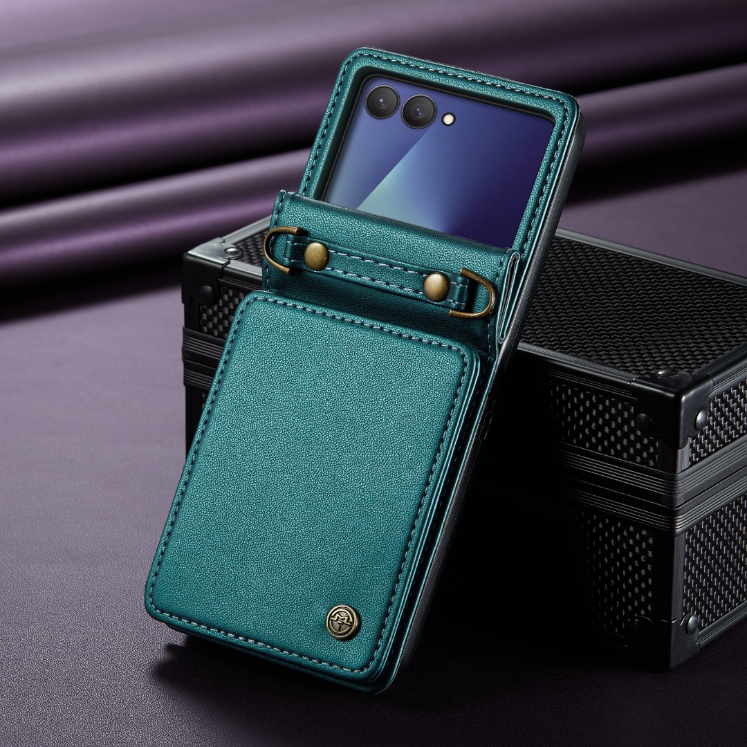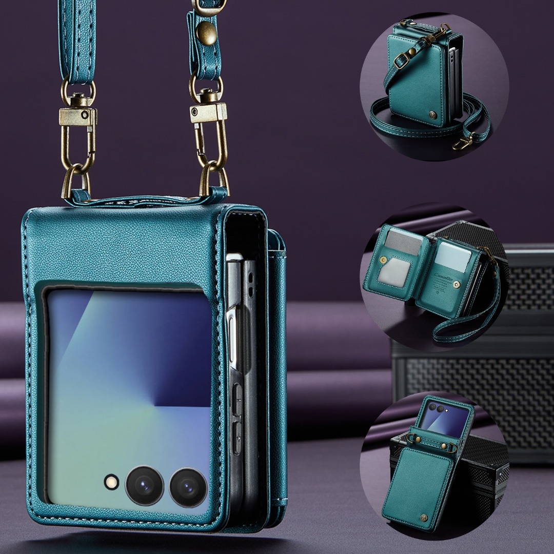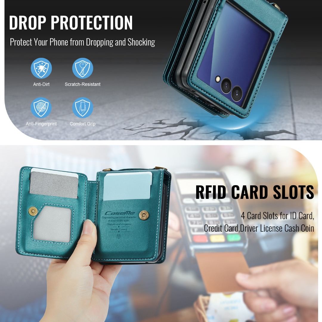 Husa / Portofel / Geanta piele textura moale si aderenta in mana, tip carcasa, protectie completa, 2 curele detasabile, buzunar carduri, Samsung Galaxy Z Flip7, CaseMe, Verde