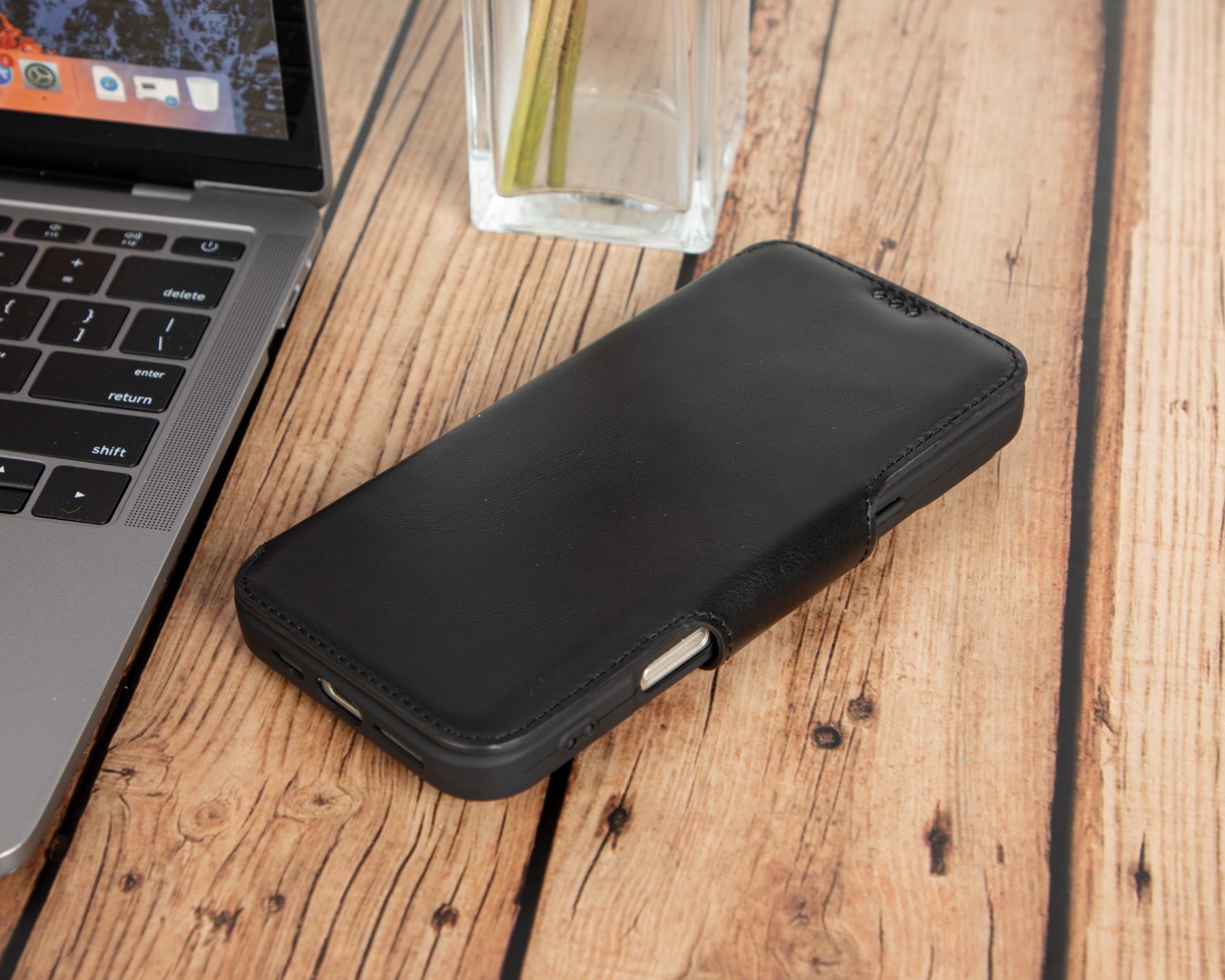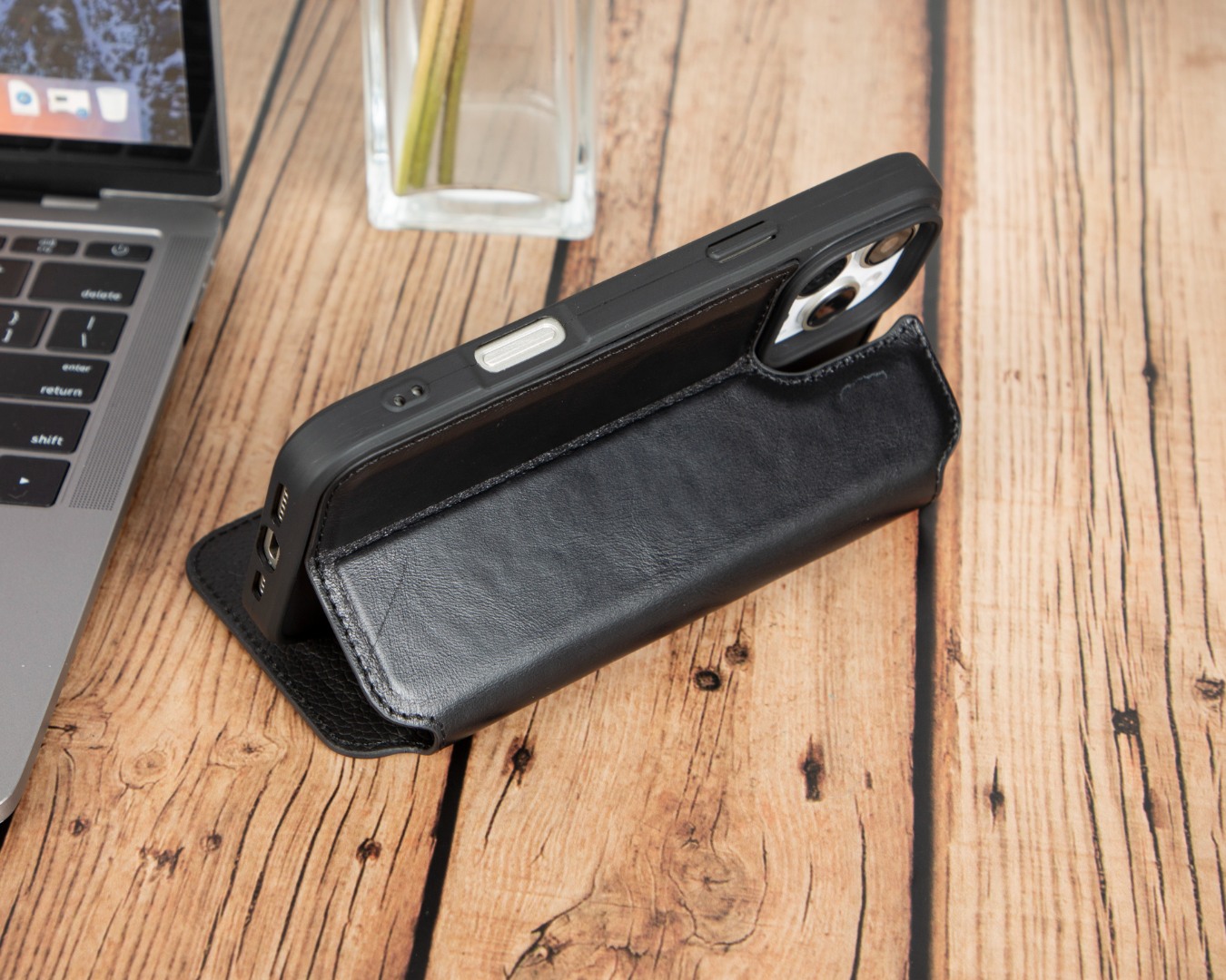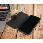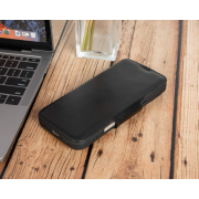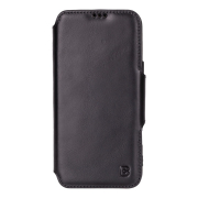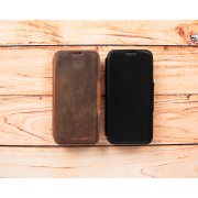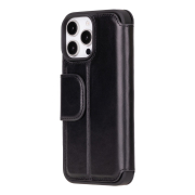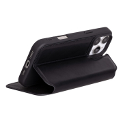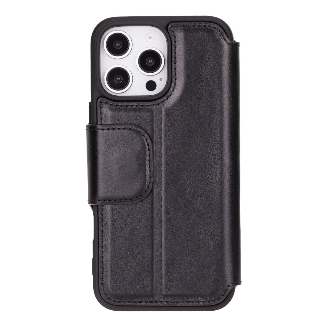 Husa slim pentru iPhone 16 Pro Max - din piele naturala premium (interior/exterior), design simplu si durabill. tip carte, inchidere sigura cu banda magnetica, suport stand & buzunare carduri, Bouletta Firenze, Rustic black