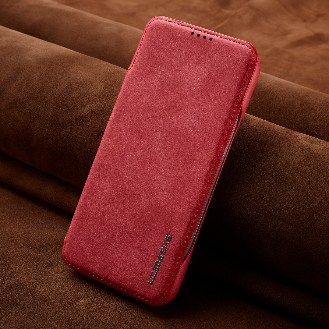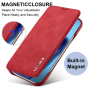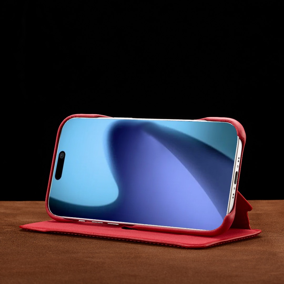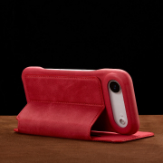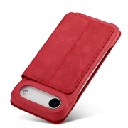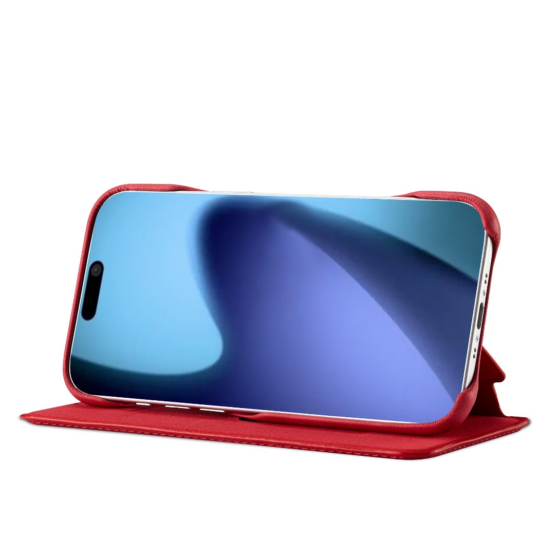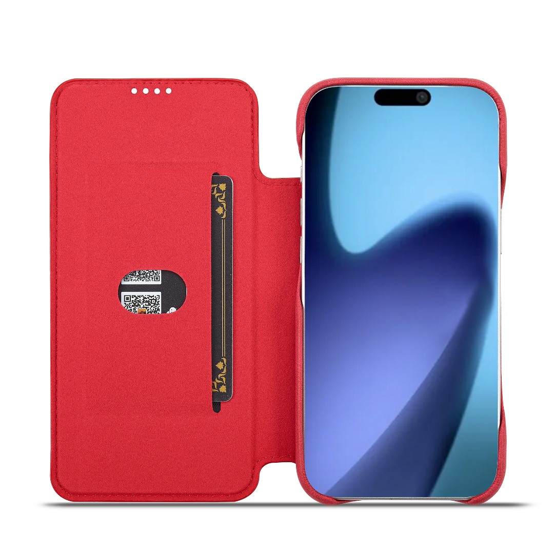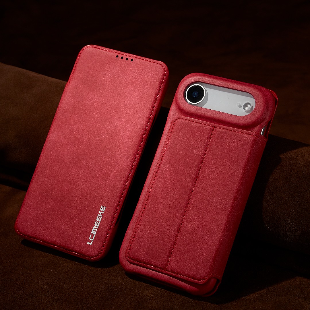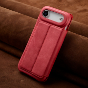 Husa slim tip carte pentru iPhone Air, cu buzunar pentru card, functie stand pentru vizionare video, decupaj pentru convorbiri cu clapeta inchisa, inchidere magnetica, CaseMe, Rosu