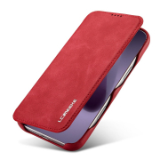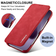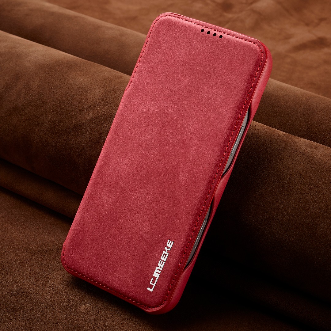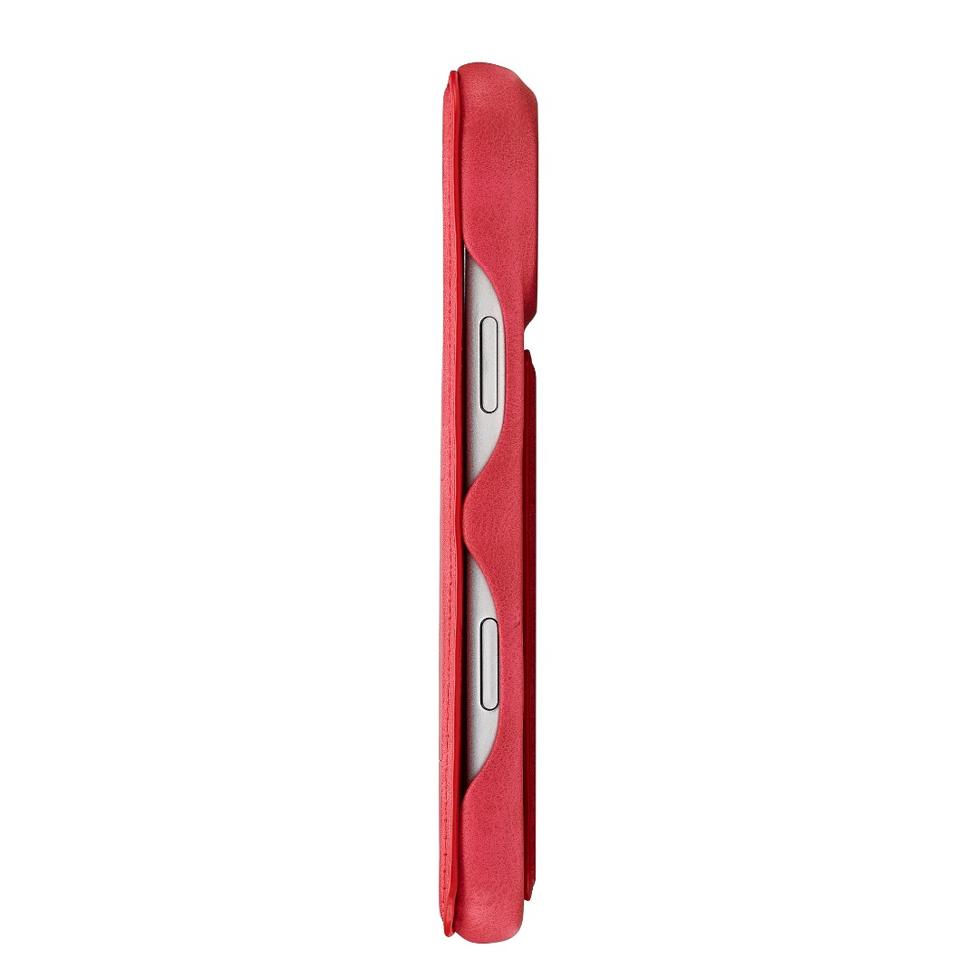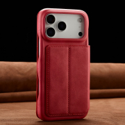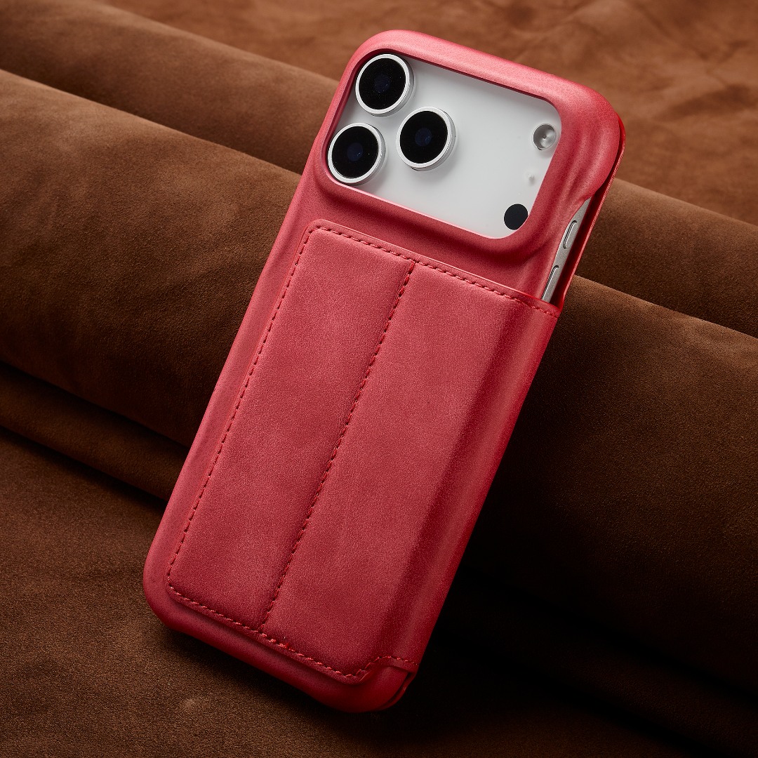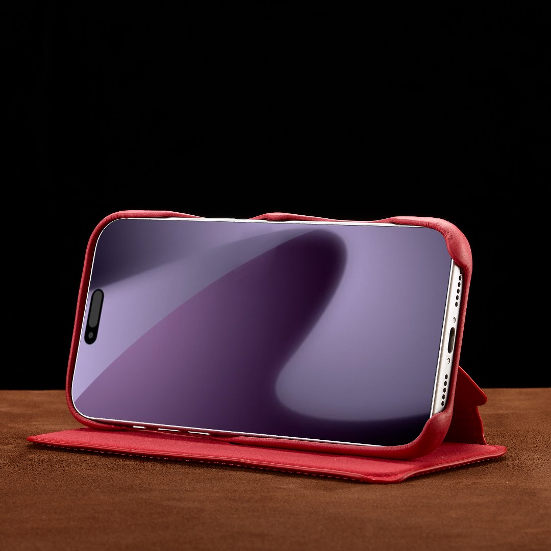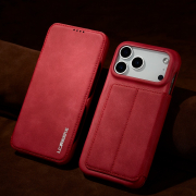 Husa slim tip carte pentru iPhone 17 Pro, cu buzunar pentru card, functie stand pentru vizionare video, decupaj pentru convorbiri cu clapeta inchisa, inchidere magnetica, CaseMe, Rosu