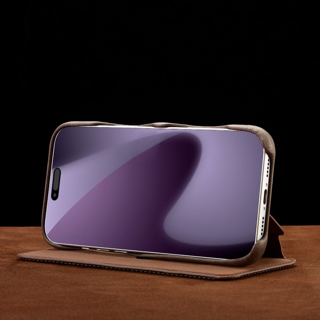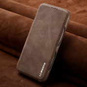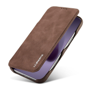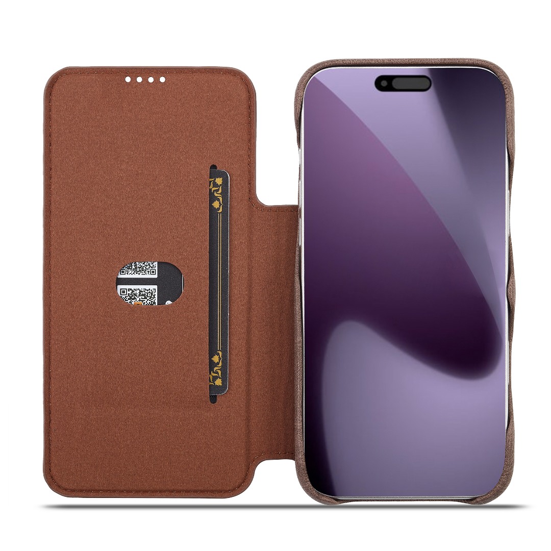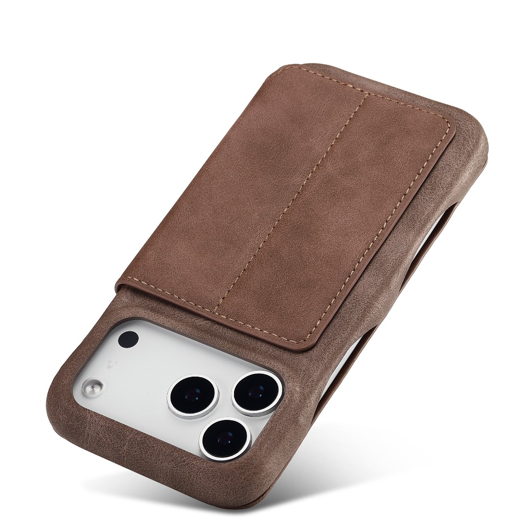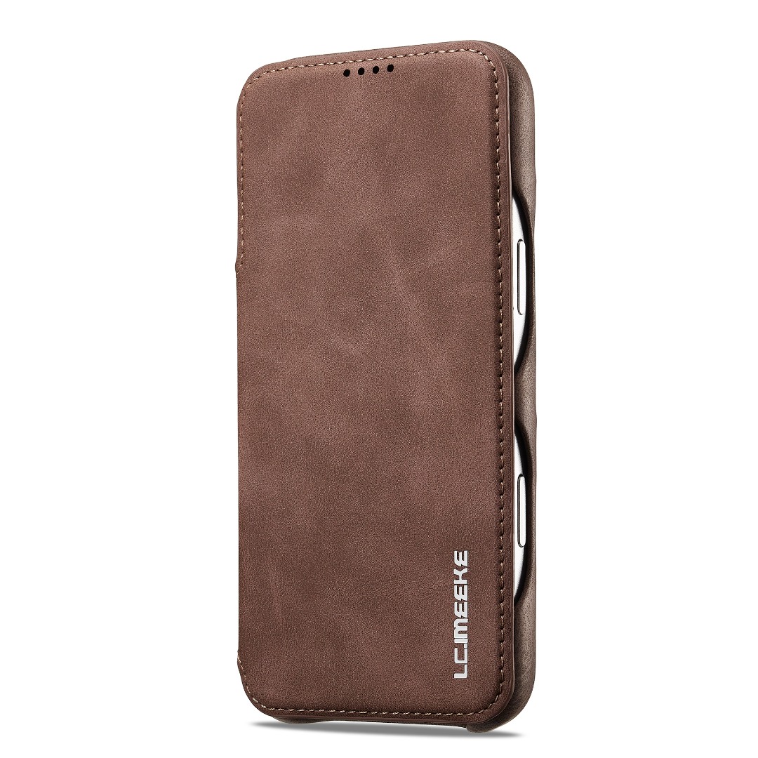 Husa slim tip carte pentru iPhone 17 Pro Max, cu buzunar pentru card, functie stand pentru vizionare video, decupaj pentru convorbiri cu clapeta inchisa, inchidere magnetica, CaseMe, Maro coffee