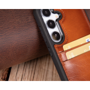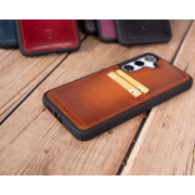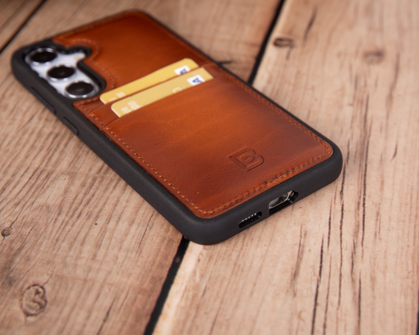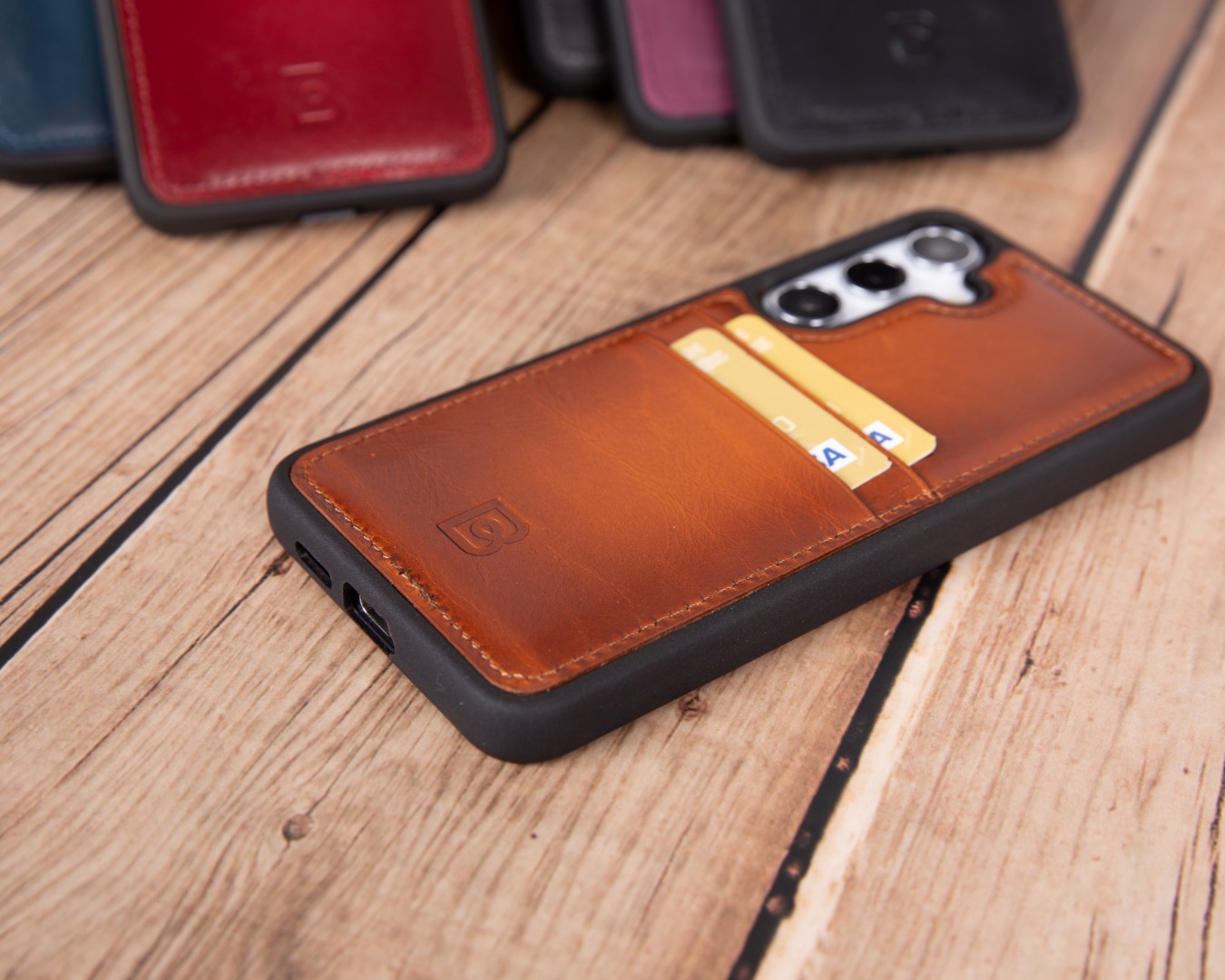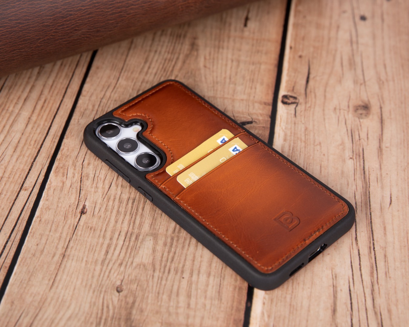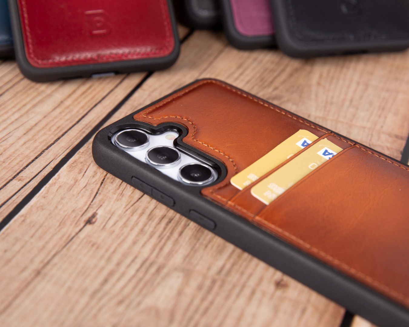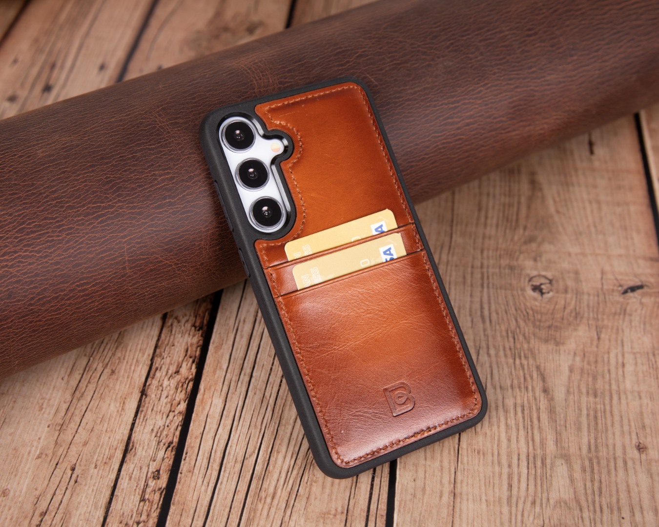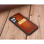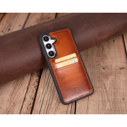Husa slim piele naturala + rama TPU moale, back cover cu buzunare pentru carduri, Samsung Galaxy S25 Plus - Bouletta Flex cover CCP, Burnished tan