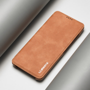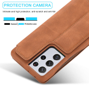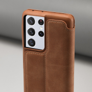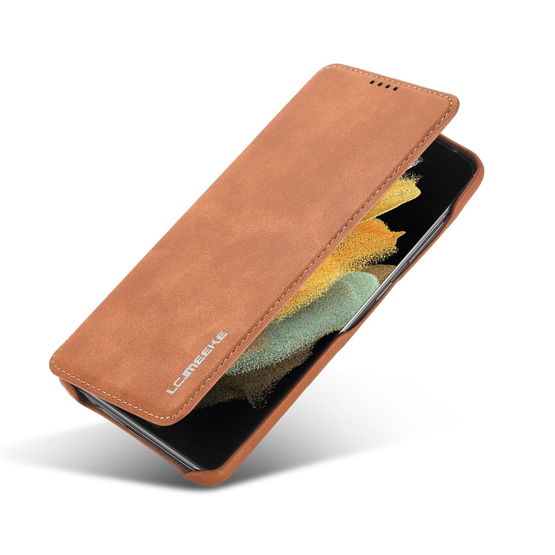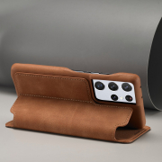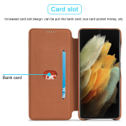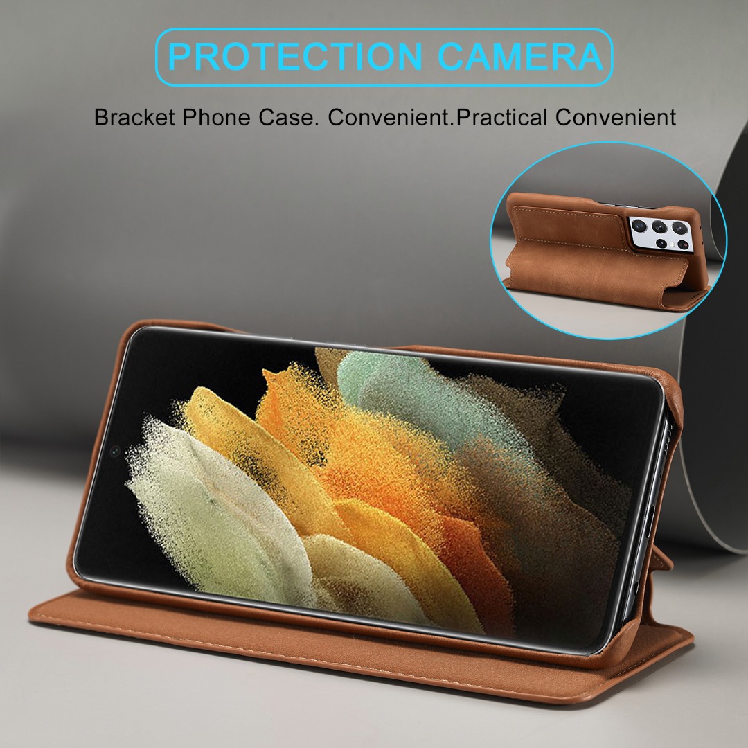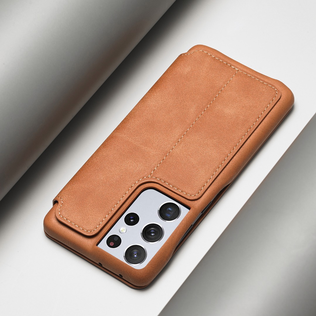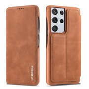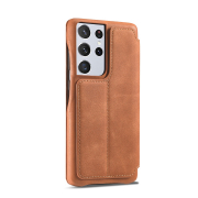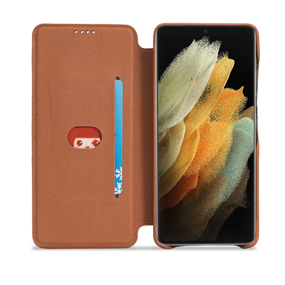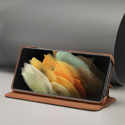 Husa slim piele, stand, inchidere magnetica, textura fina, Samsung Galaxy S21 Ultra - CaseMe, Maro