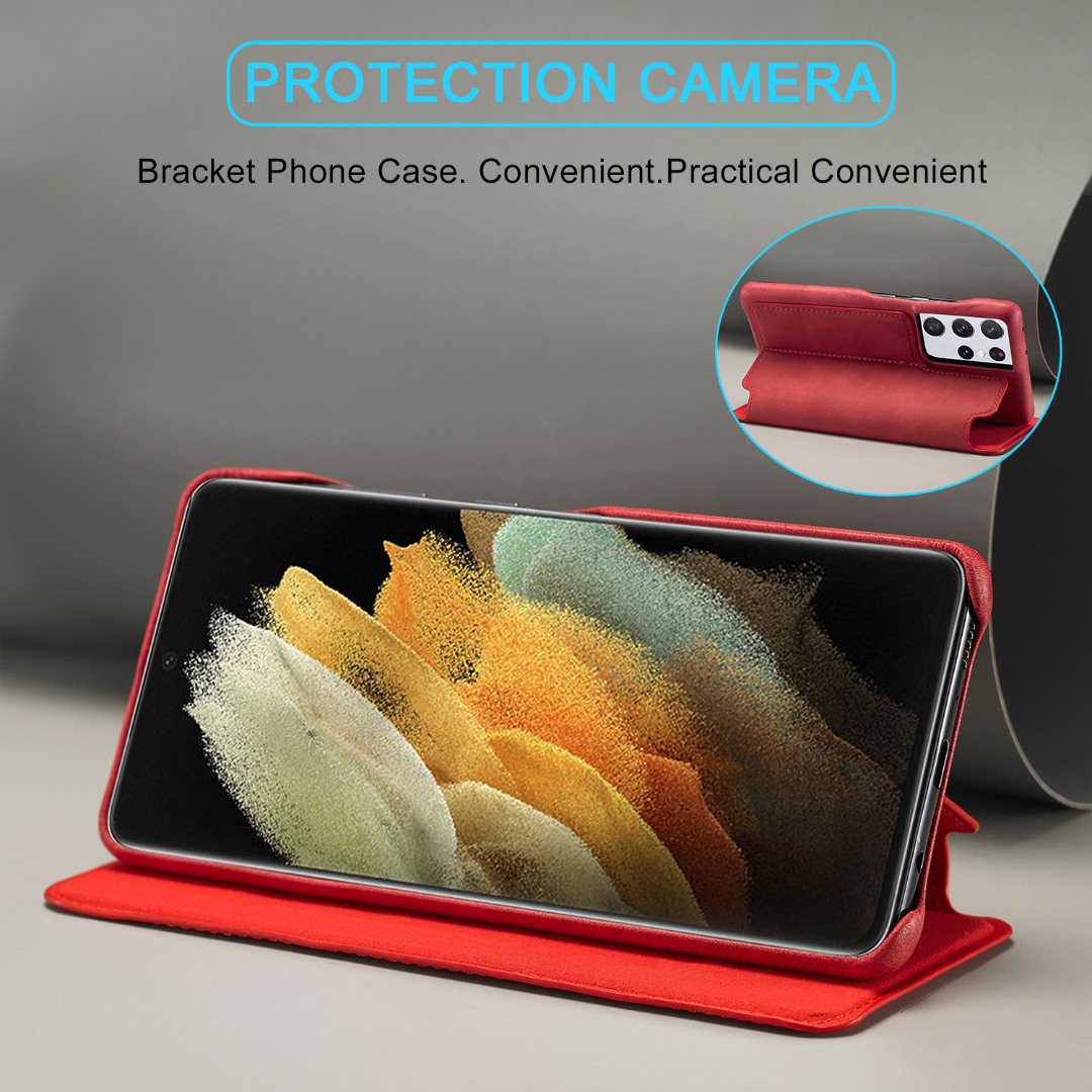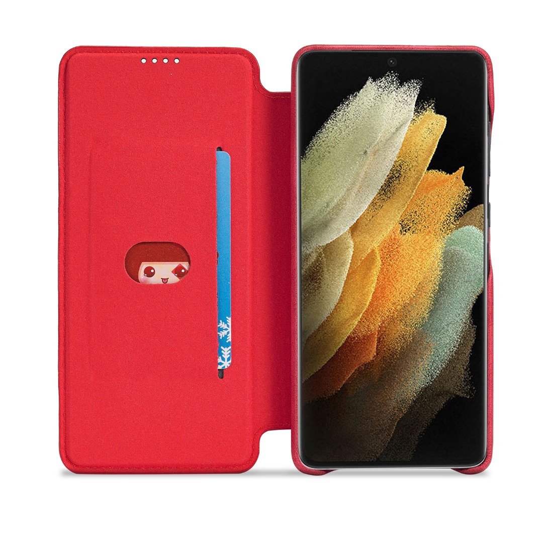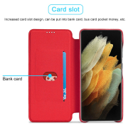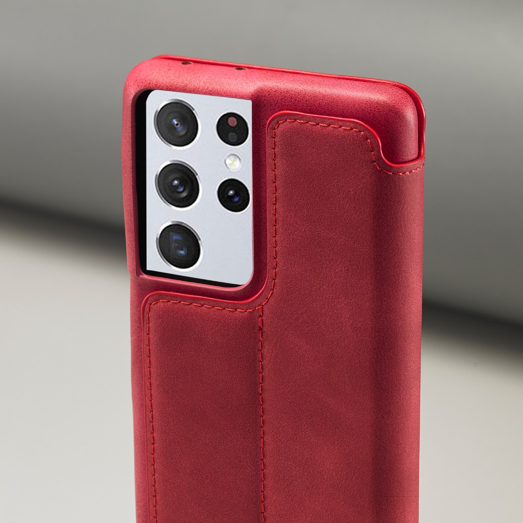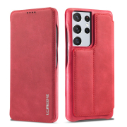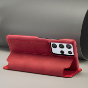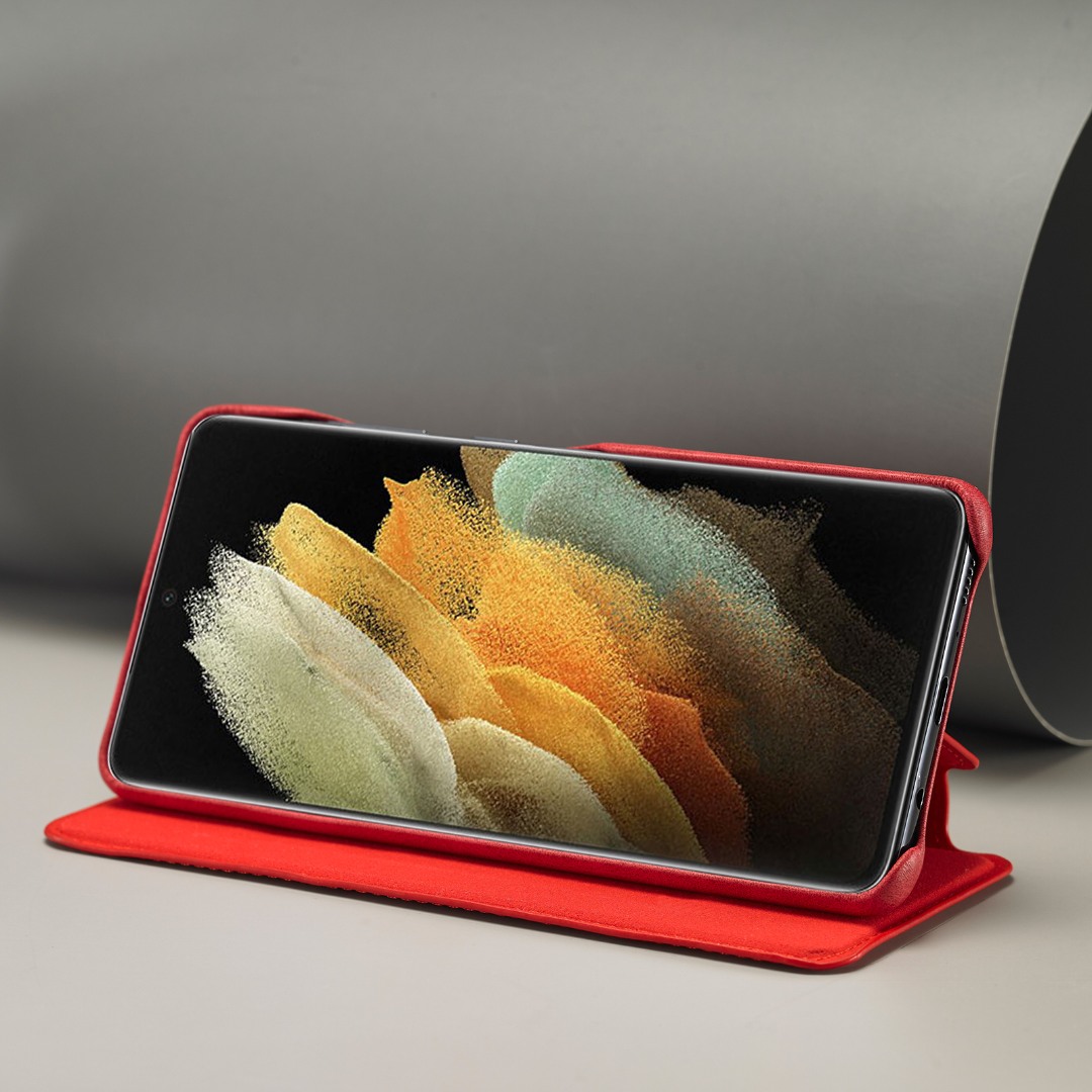 Husa slim piele, stand, inchidere magnetica, textura fina, Samsung Galaxy S21 Ultra - CaseMe, Rosu