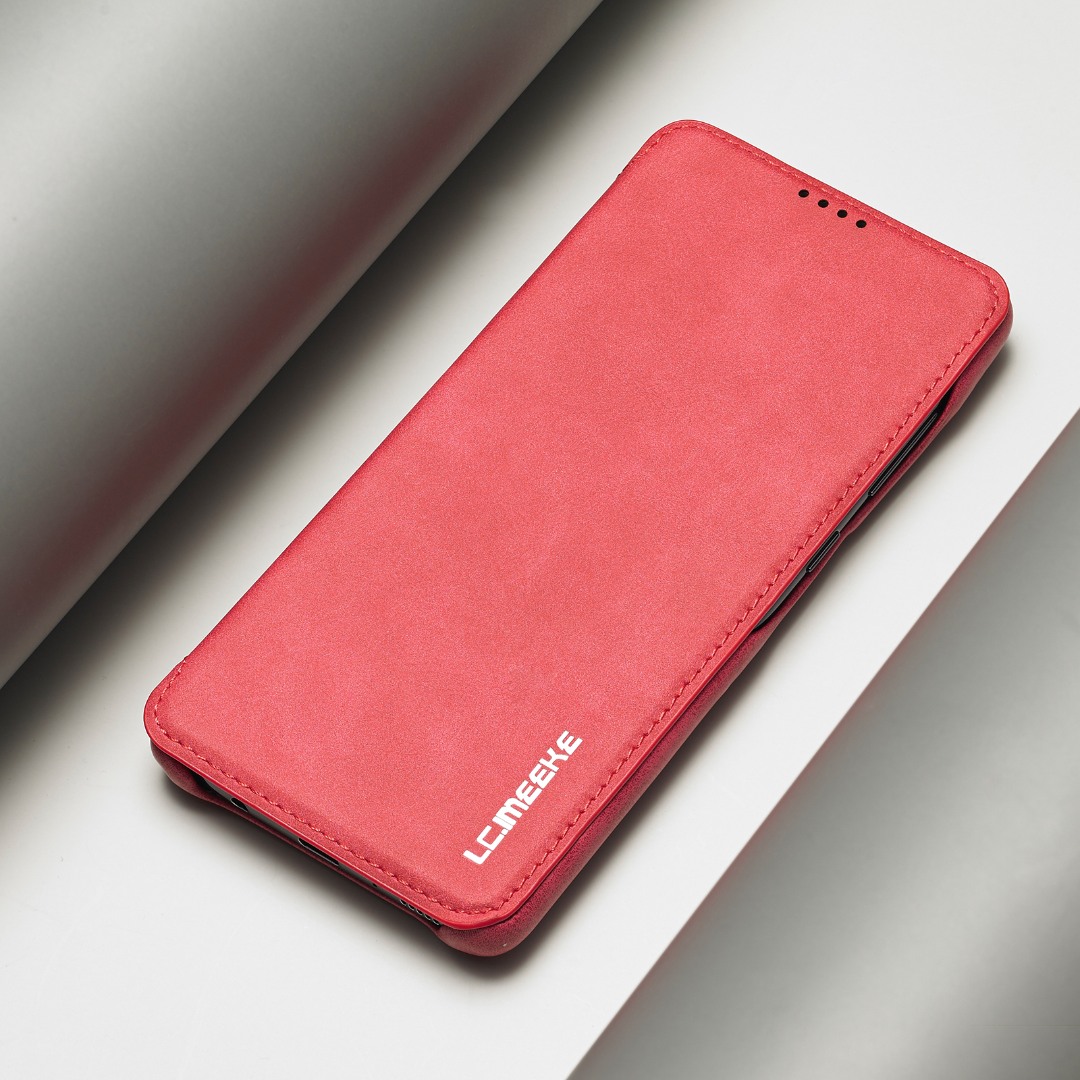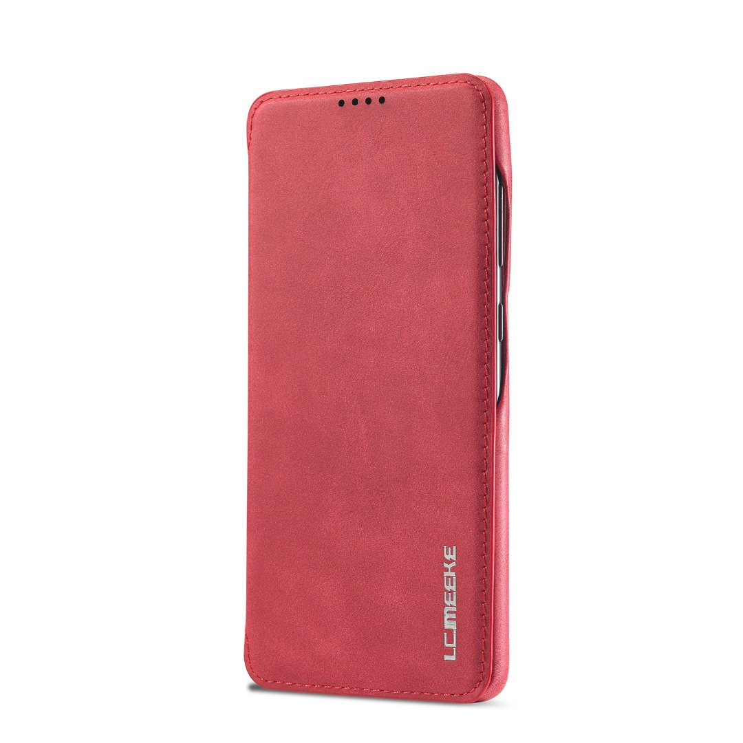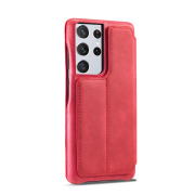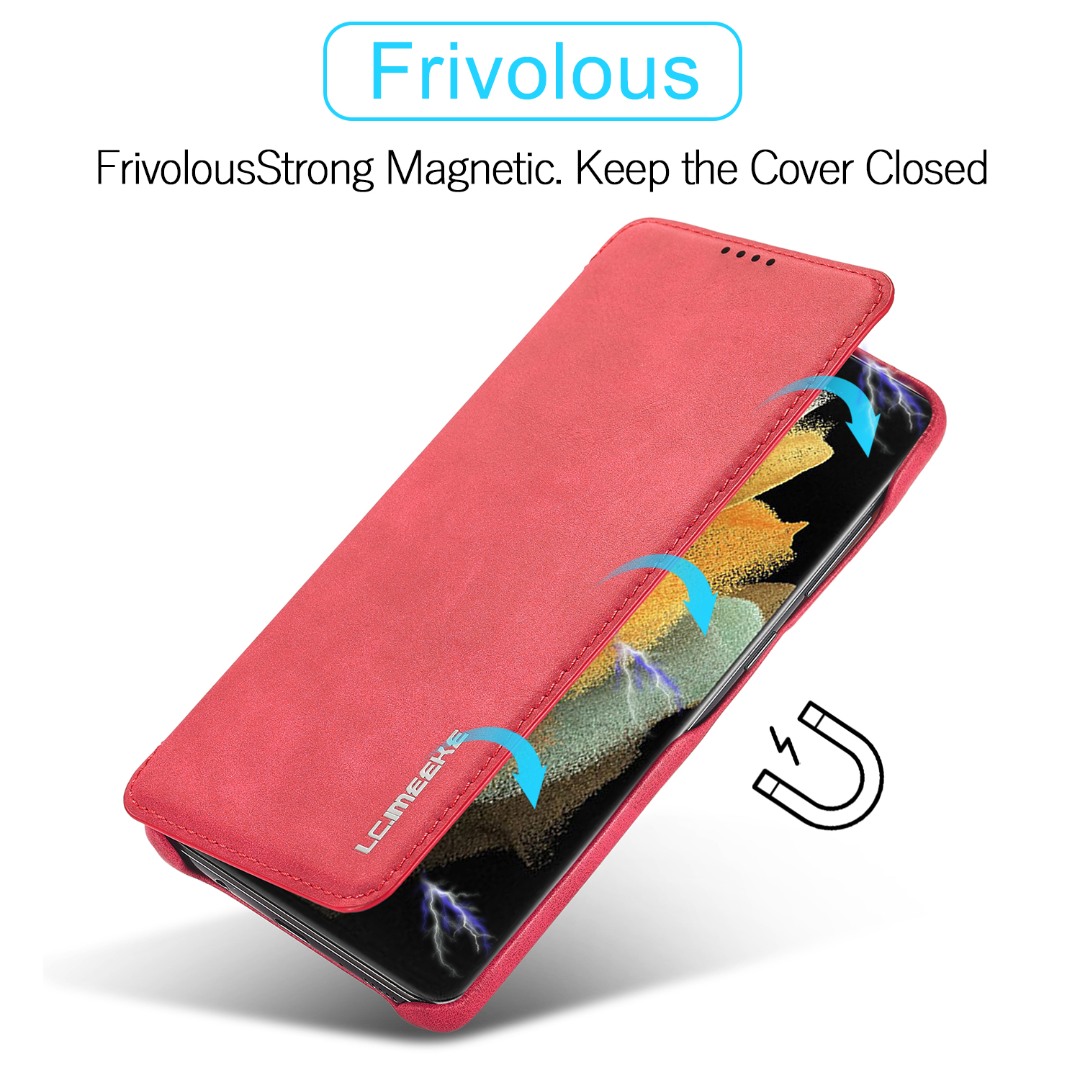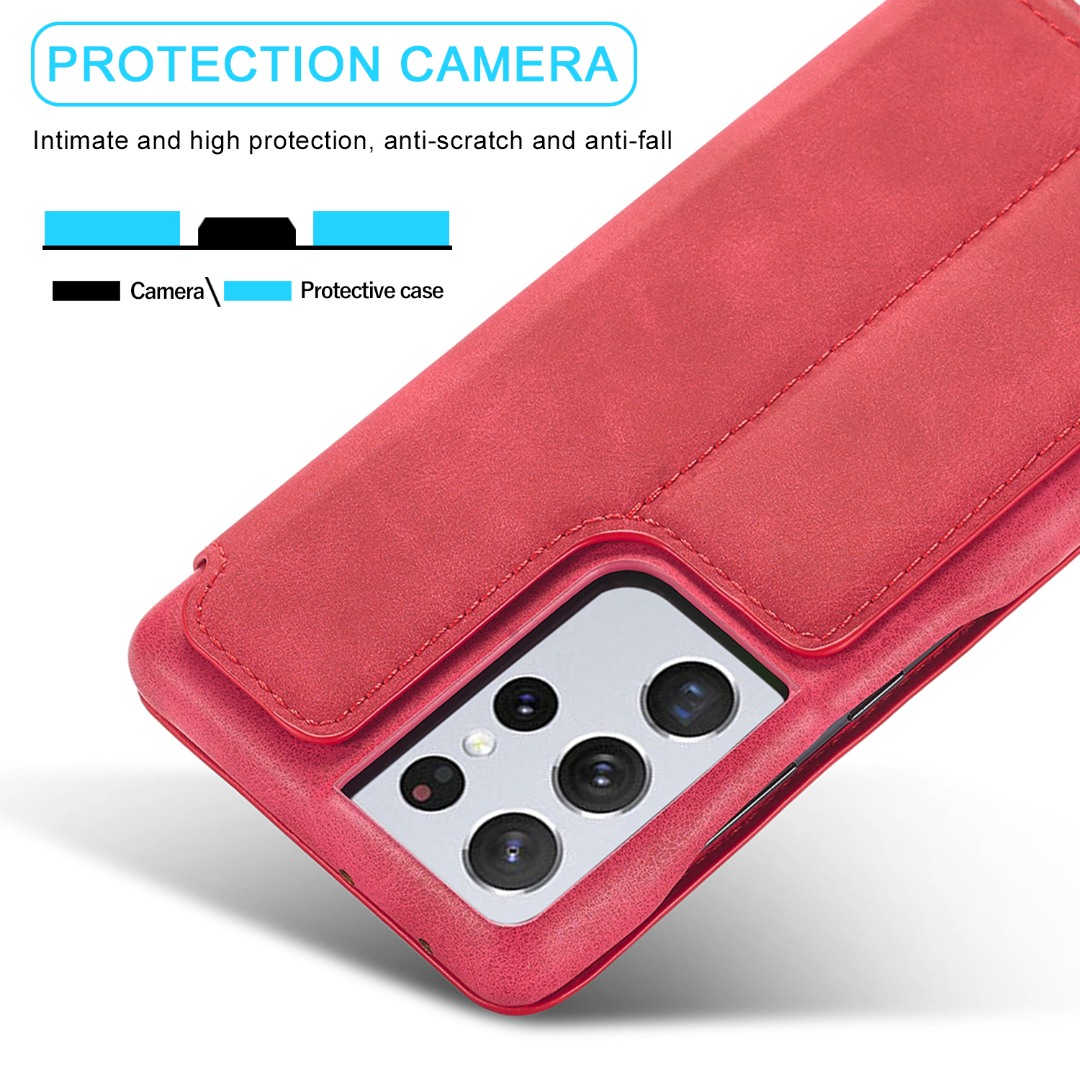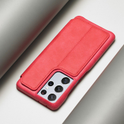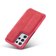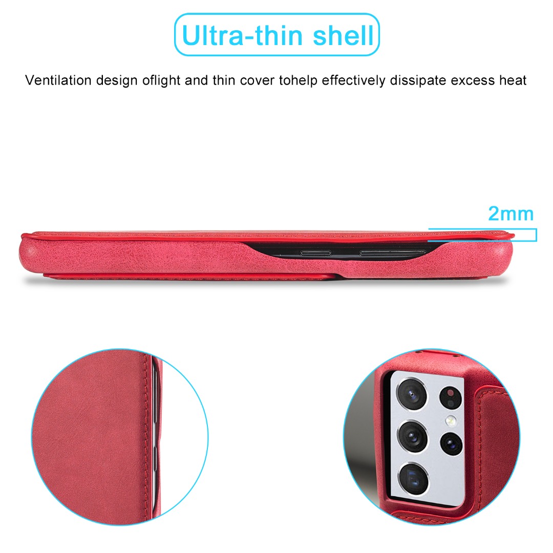 Husa slim piele, stand, inchidere magnetica, textura fina, Samsung Galaxy S21 Ultra - CaseMe, Rosu