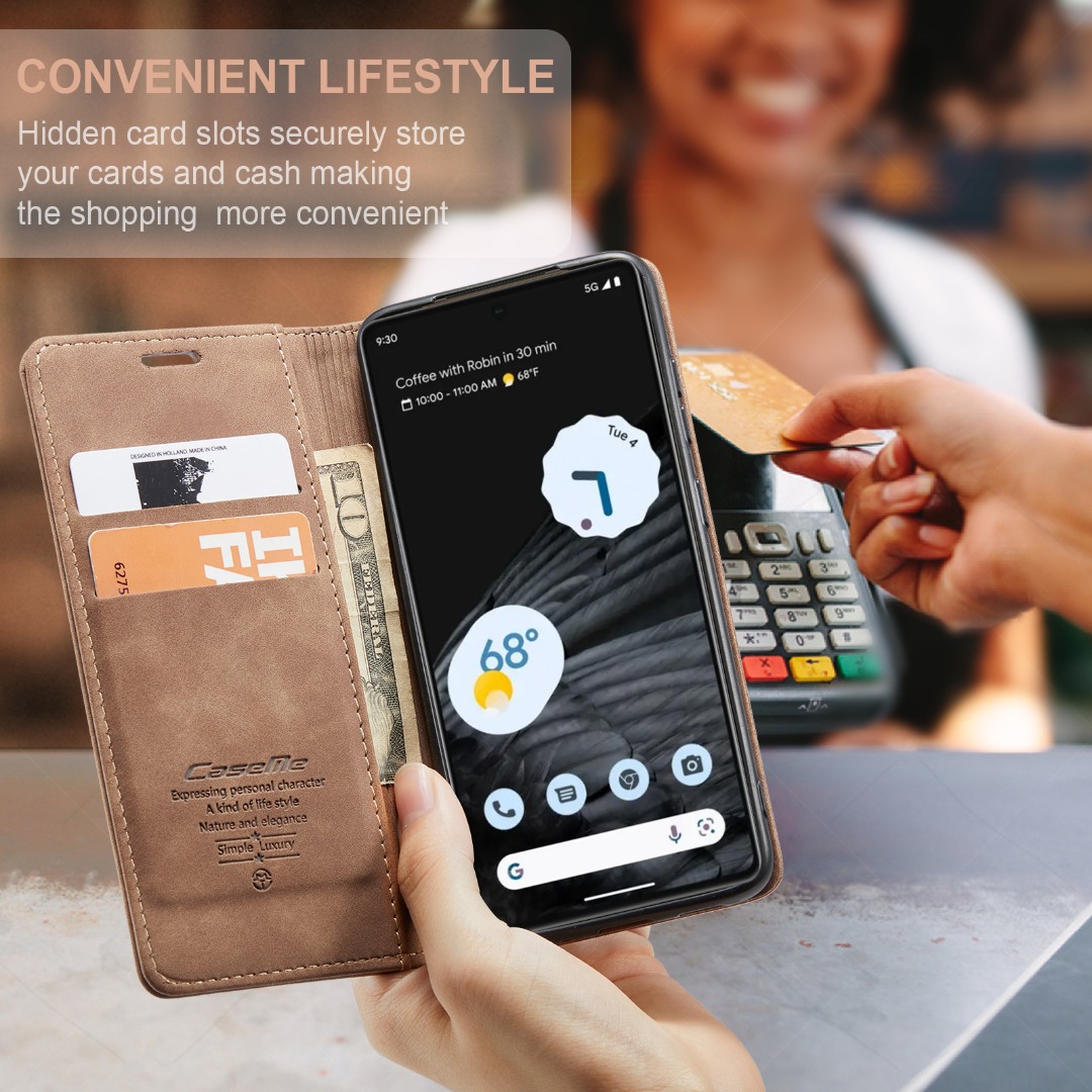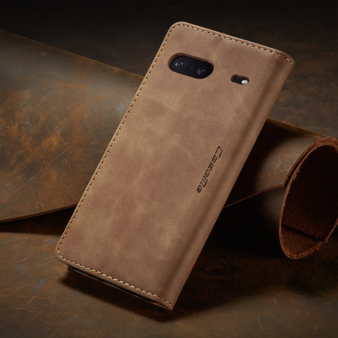 Husa slim piele, tip portofel, stand, inchidere magnetica, textura catifelata, Google Pixel 7 - CaseMe, Maro