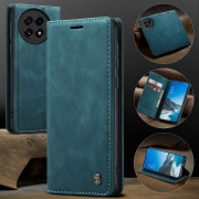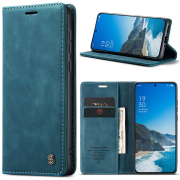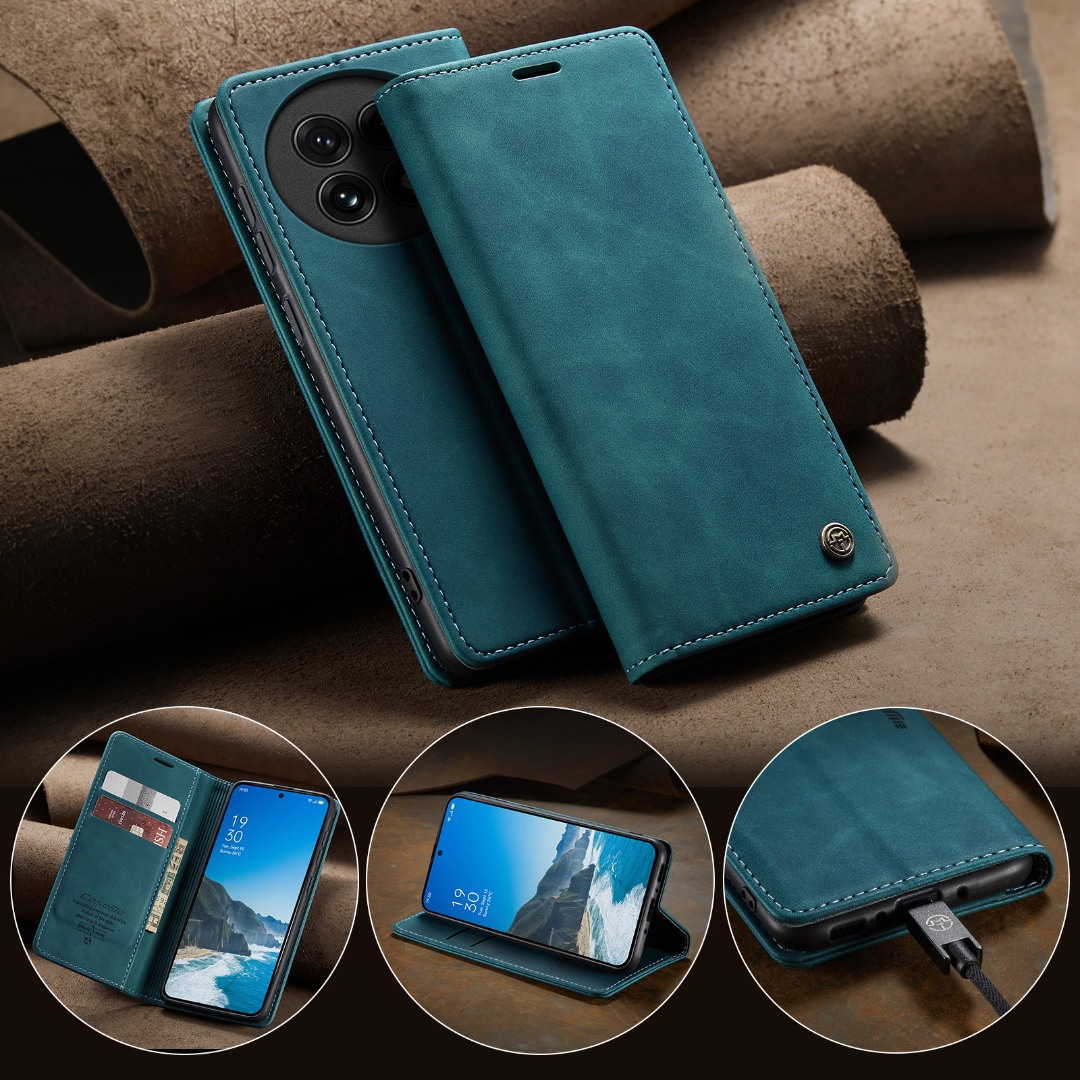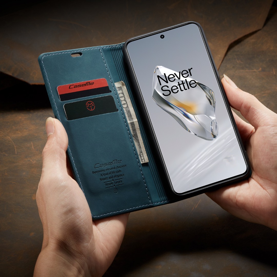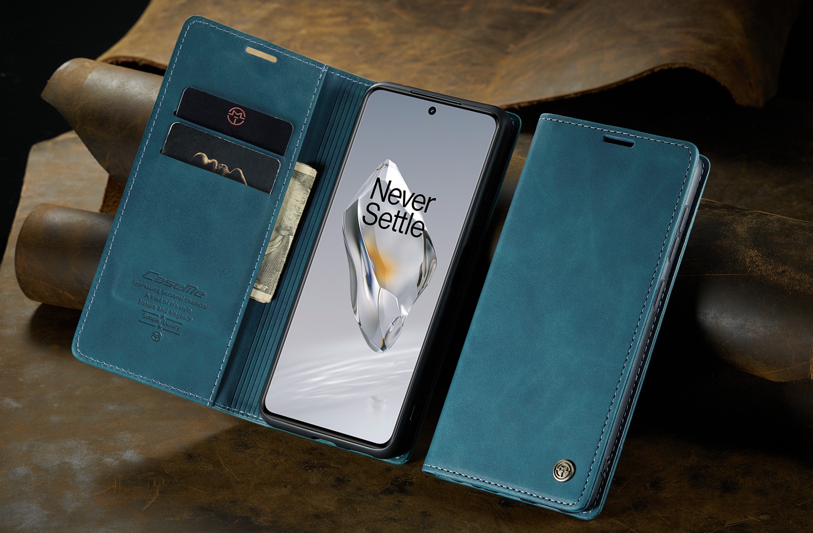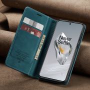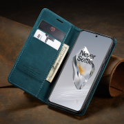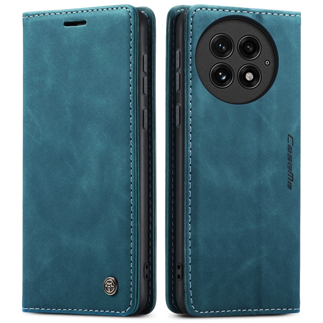 Husa slim piele, tip portofel, stand, inchidere magnetica, textura catifelata, OnePlus 13 - CaseMe, Albastru verzui