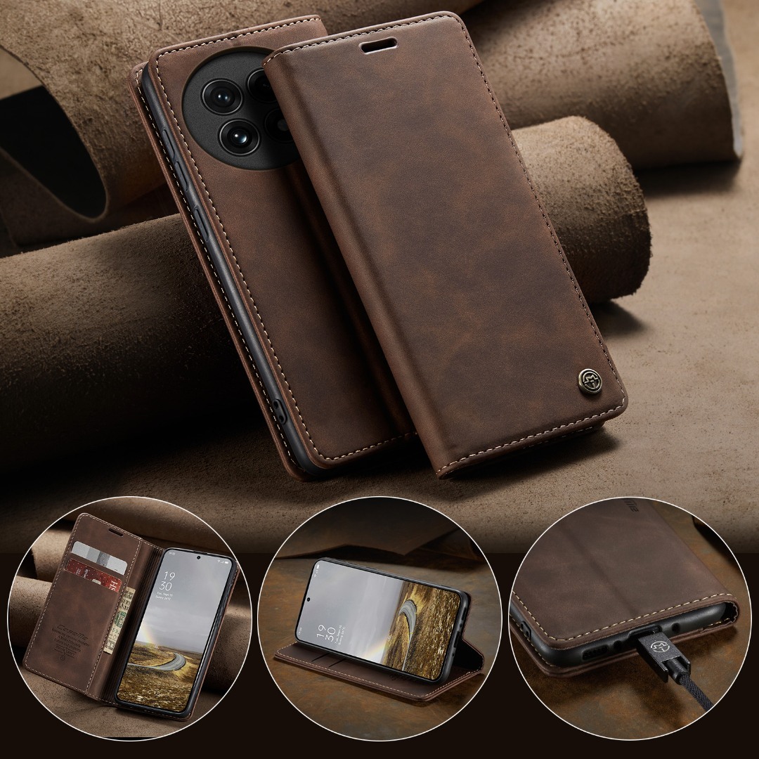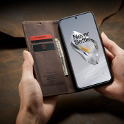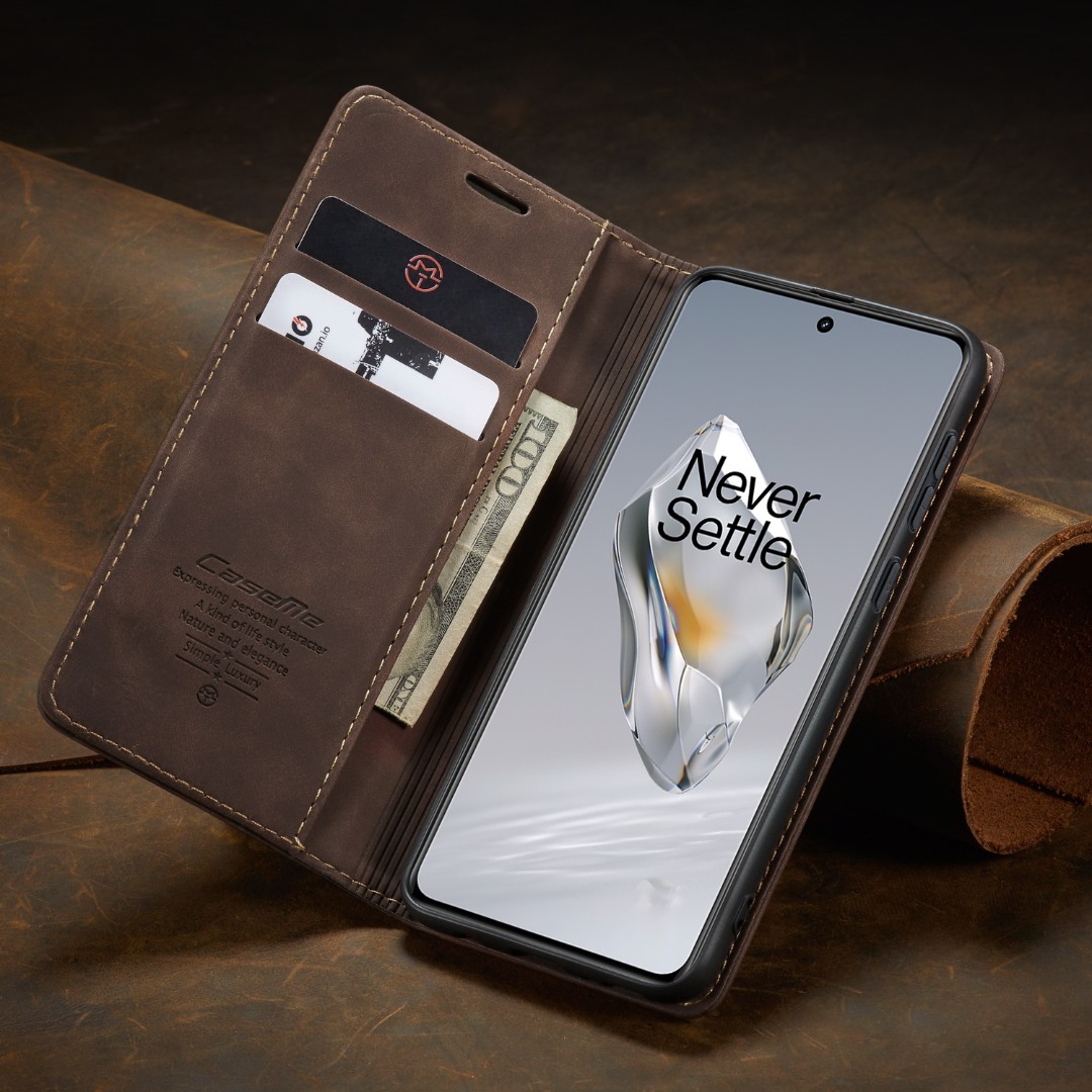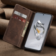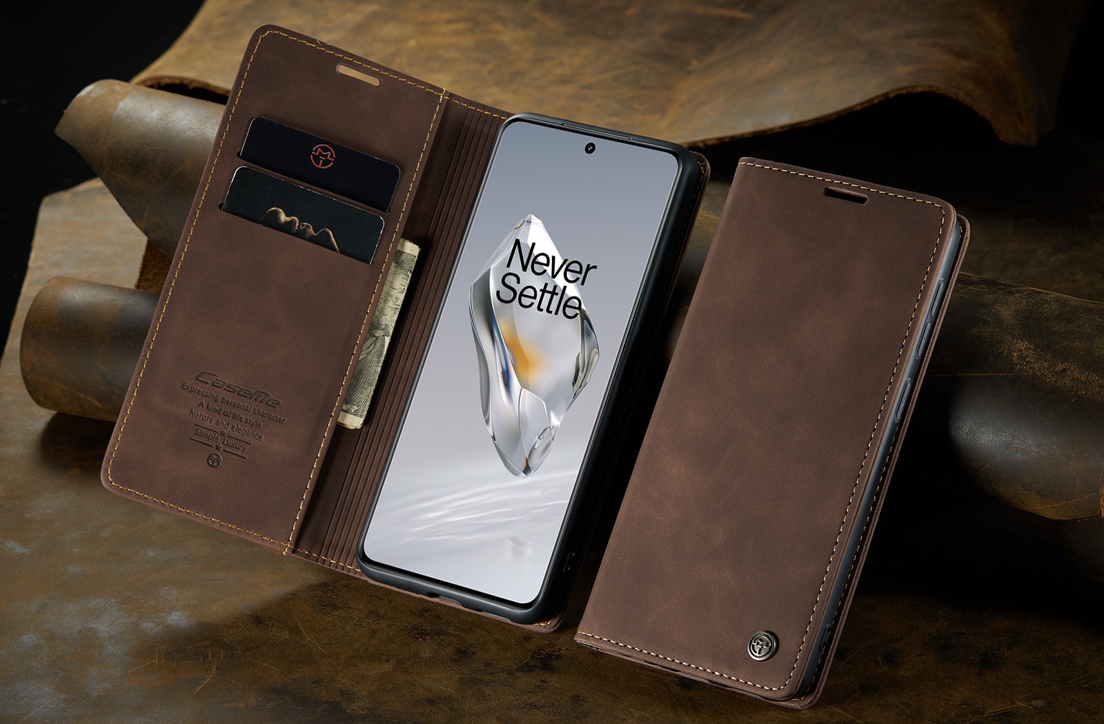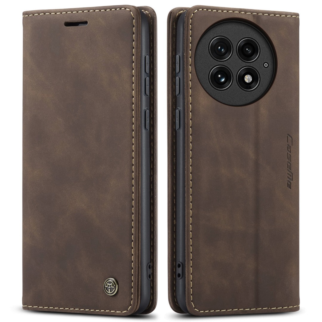 Husa slim piele, tip portofel, stand, inchidere magnetica, textura catifelata, OnePlus 13 - CaseMe, Maro coffee