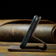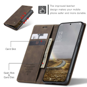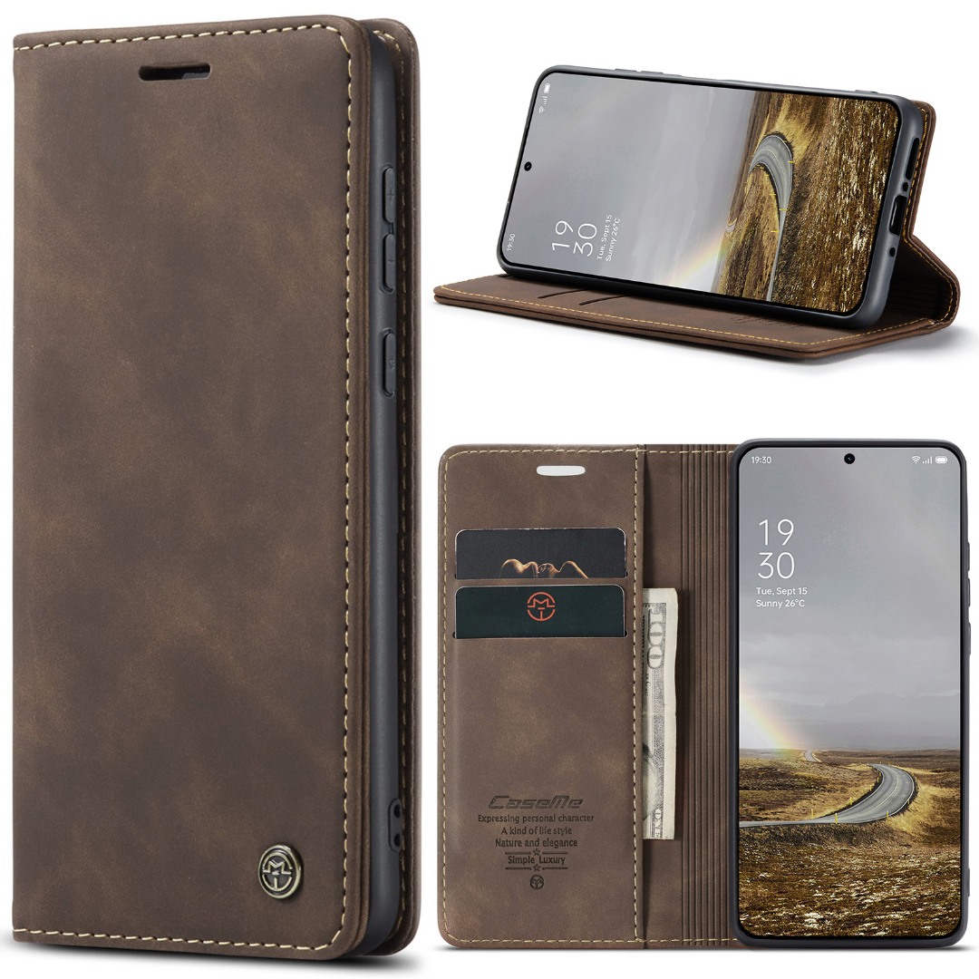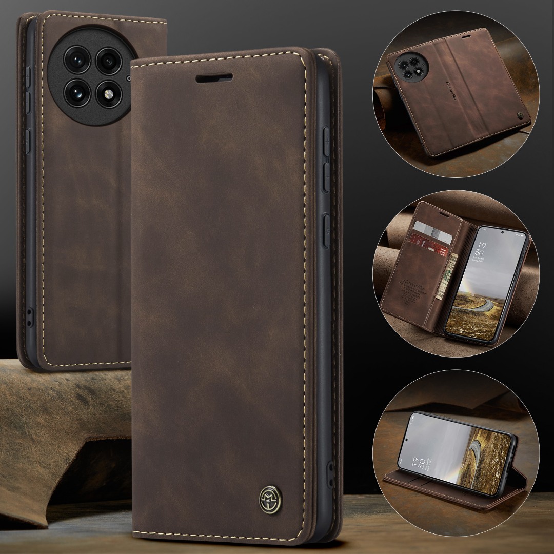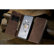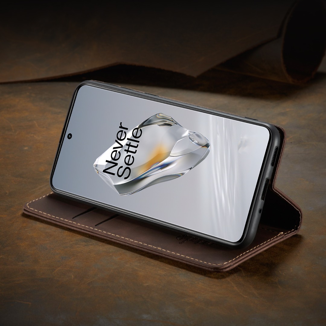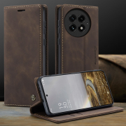 Husa slim piele, tip portofel, stand, inchidere magnetica, textura catifelata, OnePlus 13 - CaseMe, Maro coffee