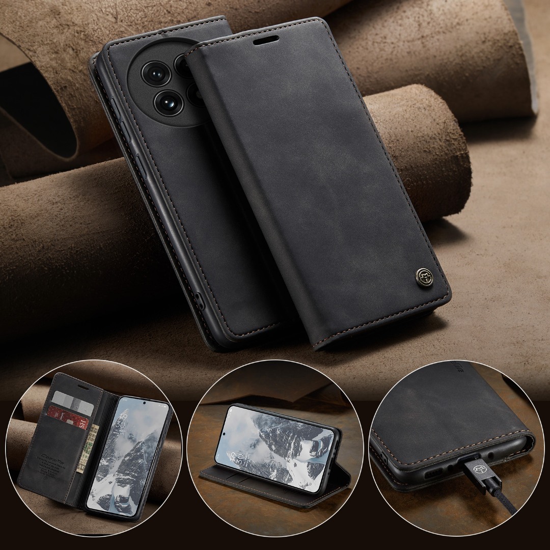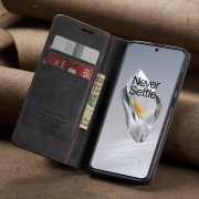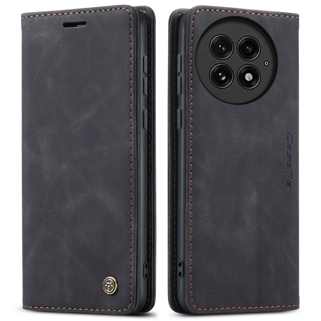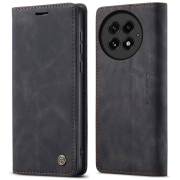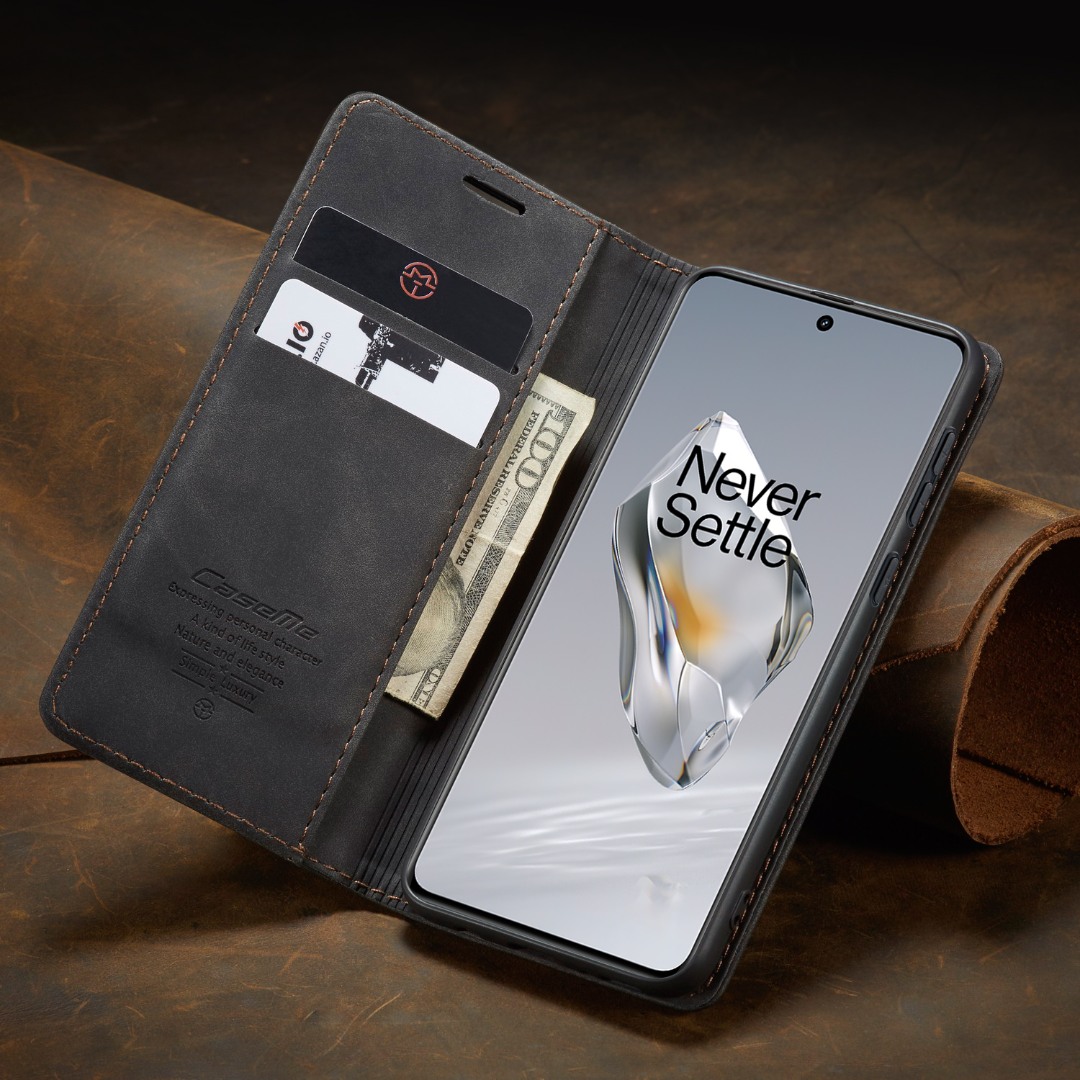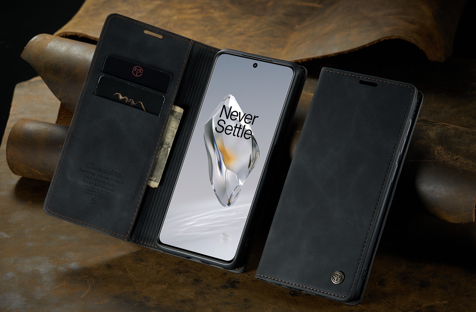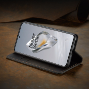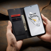 Husa slim piele, tip portofel, stand, inchidere magnetica, textura catifelata, OnePlus 13 - CaseMe, Negru