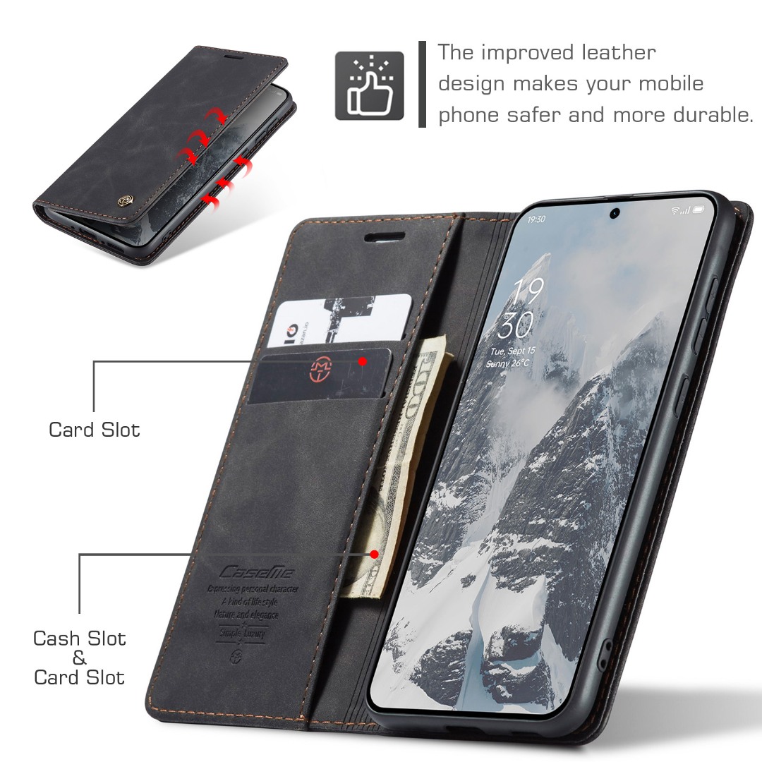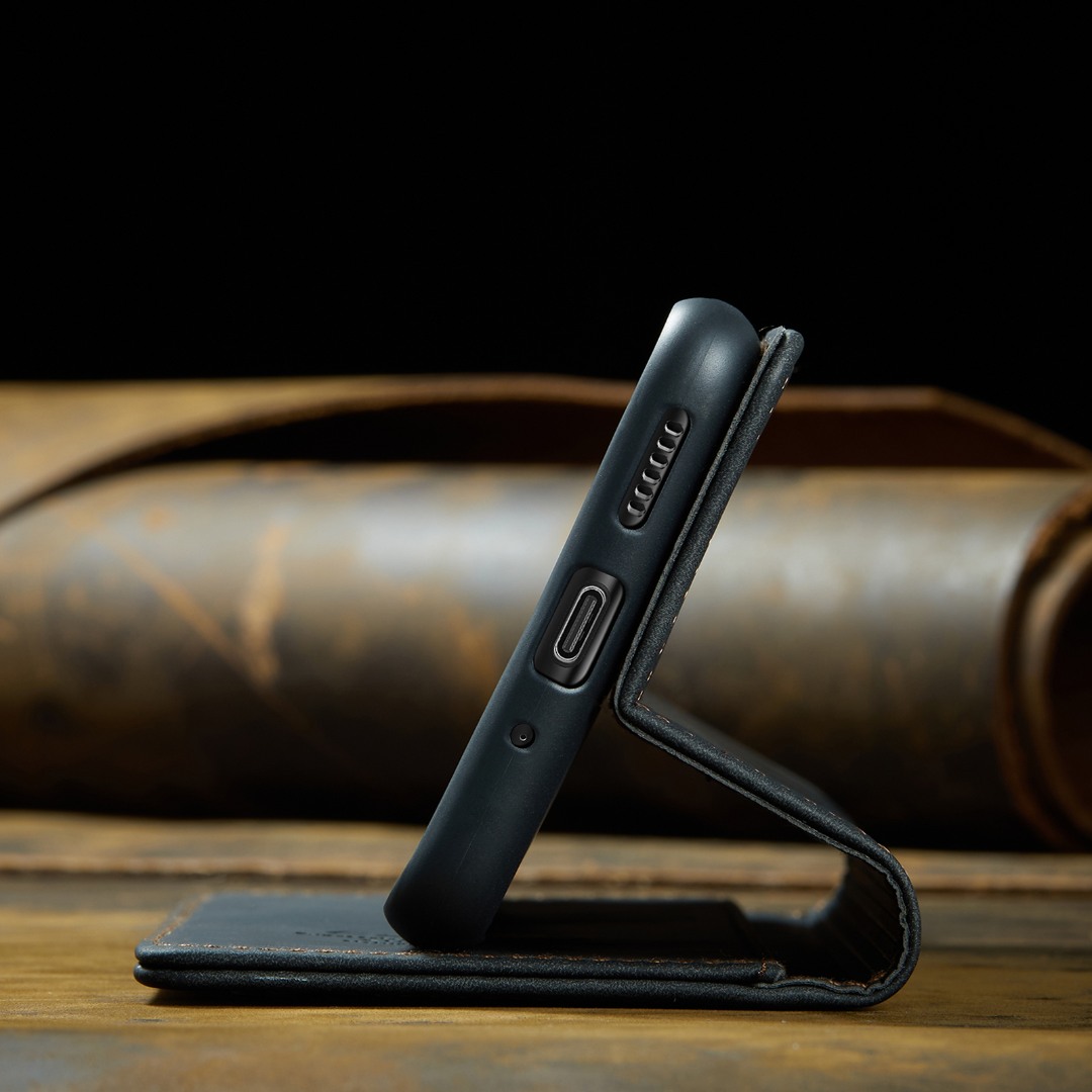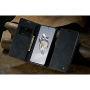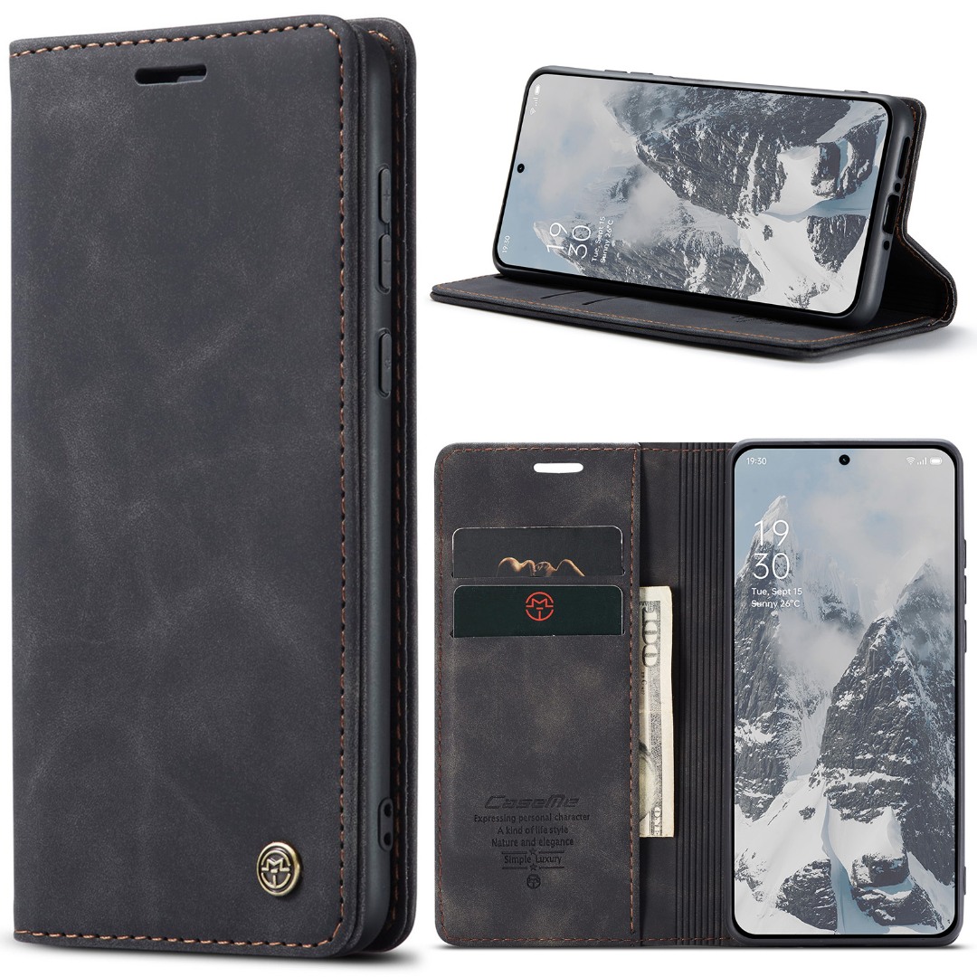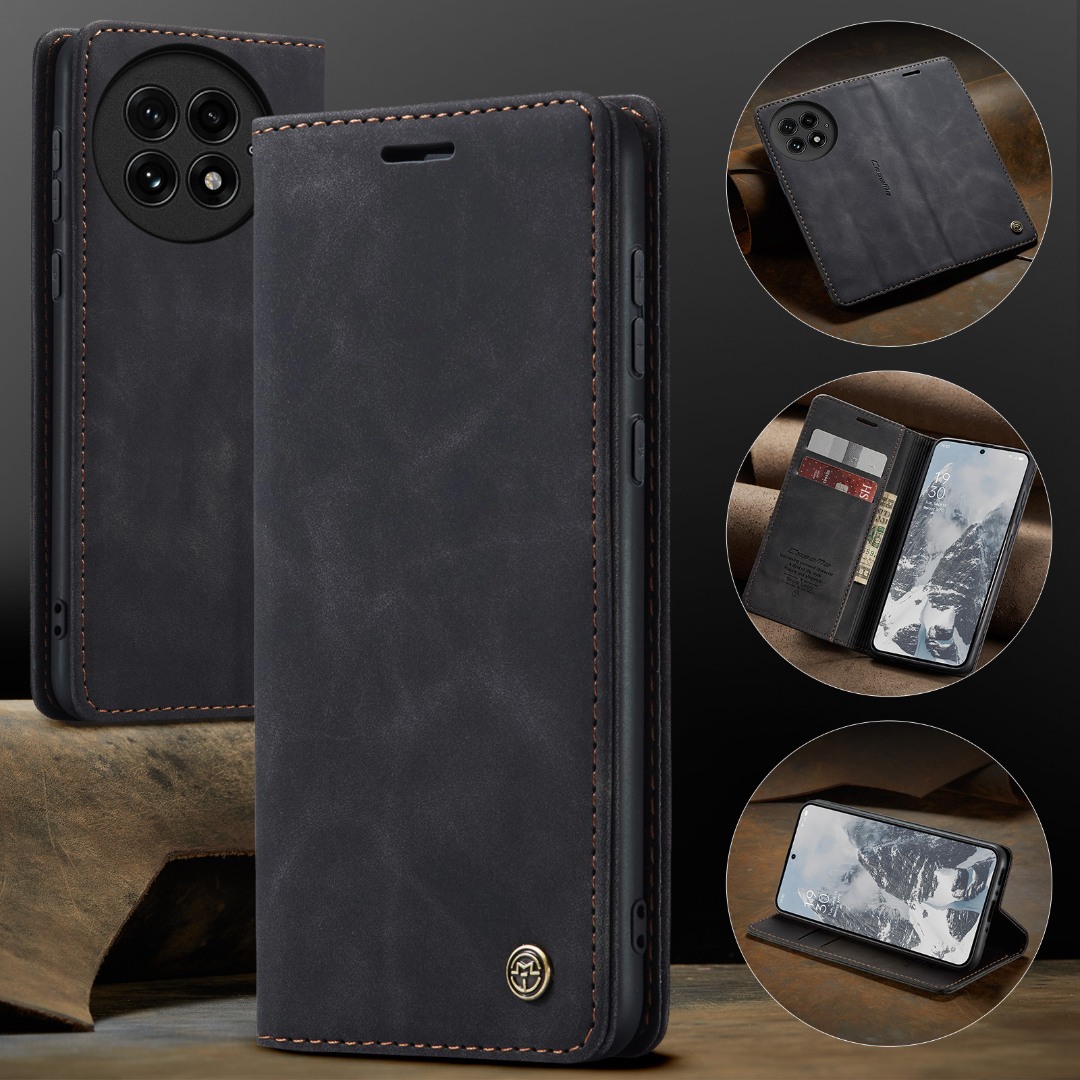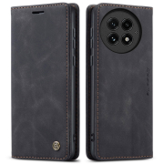 Husa slim piele, tip portofel, stand, inchidere magnetica, textura catifelata, OnePlus 13 - CaseMe, Negru