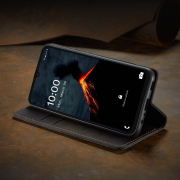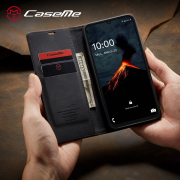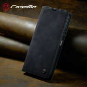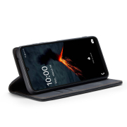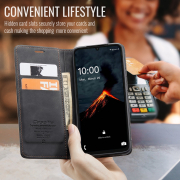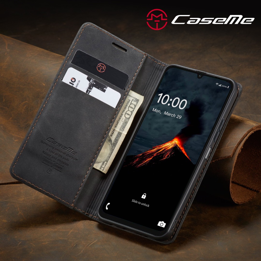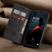 Husa slim piele, tip portofel, stand, inchidere magnetica, textura catifelata, Samsung Galaxy A06 / A06 5G - CaseMe, Negru