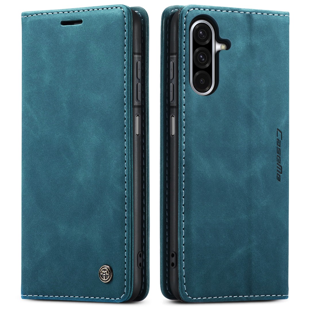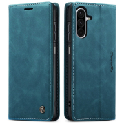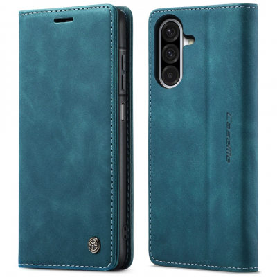 Husa slim piele, tip portofel, stand, inchidere magnetica, textura catifelata, Samsung Galaxy A17 - CaseMe, Albastru verzui