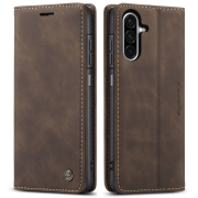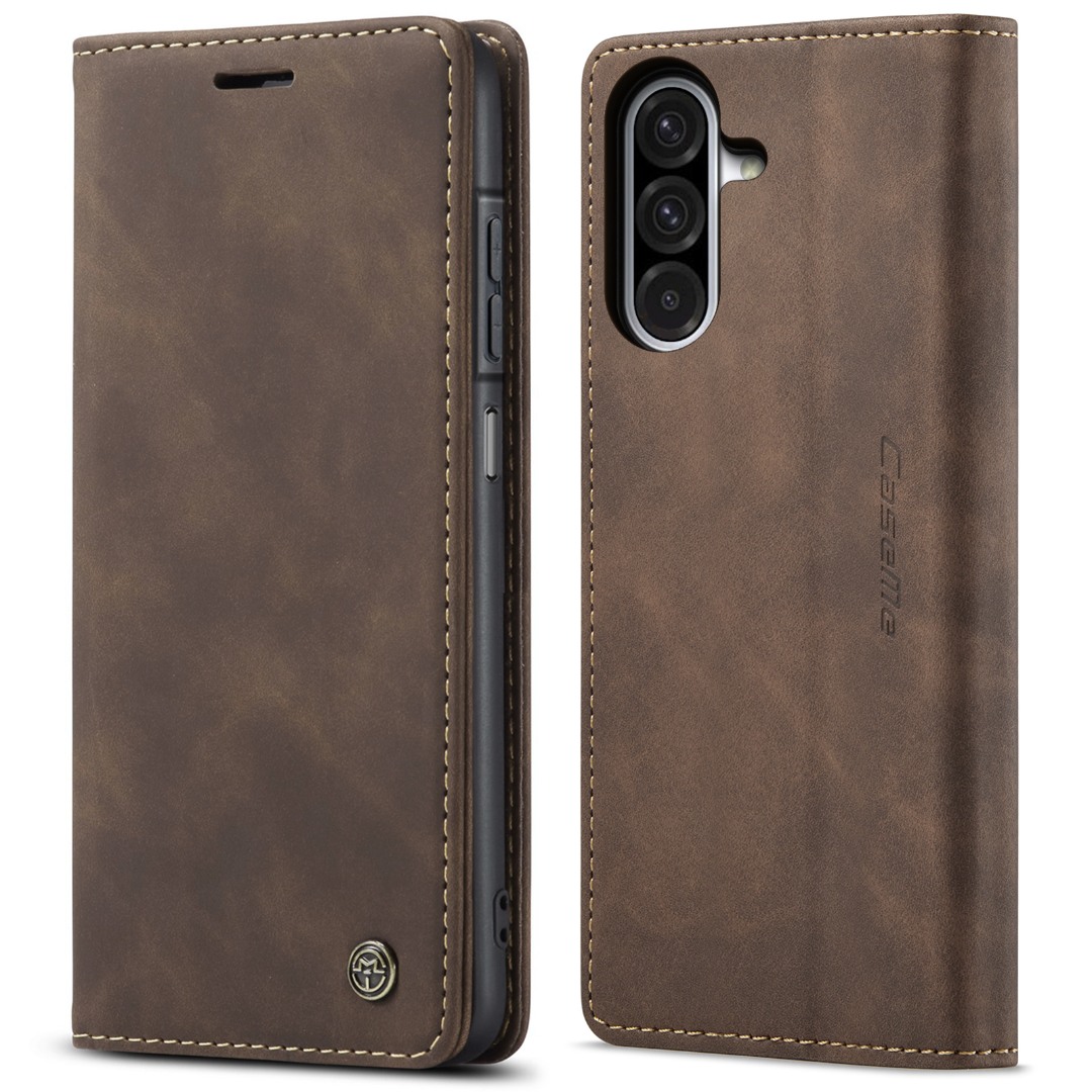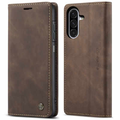 Husa slim piele, tip portofel, stand, inchidere magnetica, textura catifelata, Samsung Galaxy A17 - CaseMe, Maro coffee
