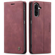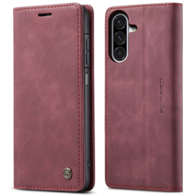 Husa slim piele, tip portofel, stand, inchidere magnetica, textura catifelata, Samsung Galaxy A17 - CaseMe, Visiniu