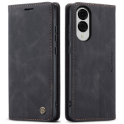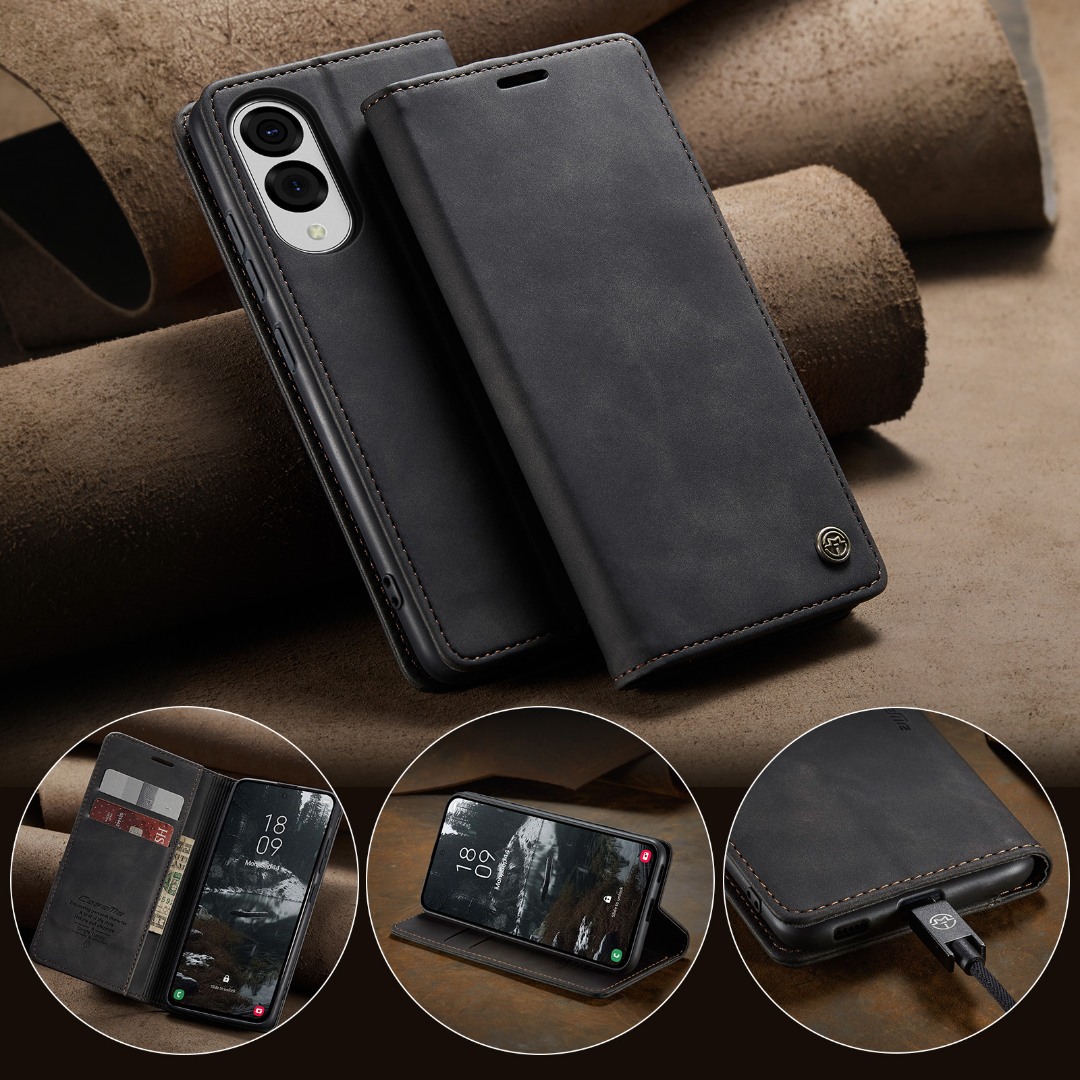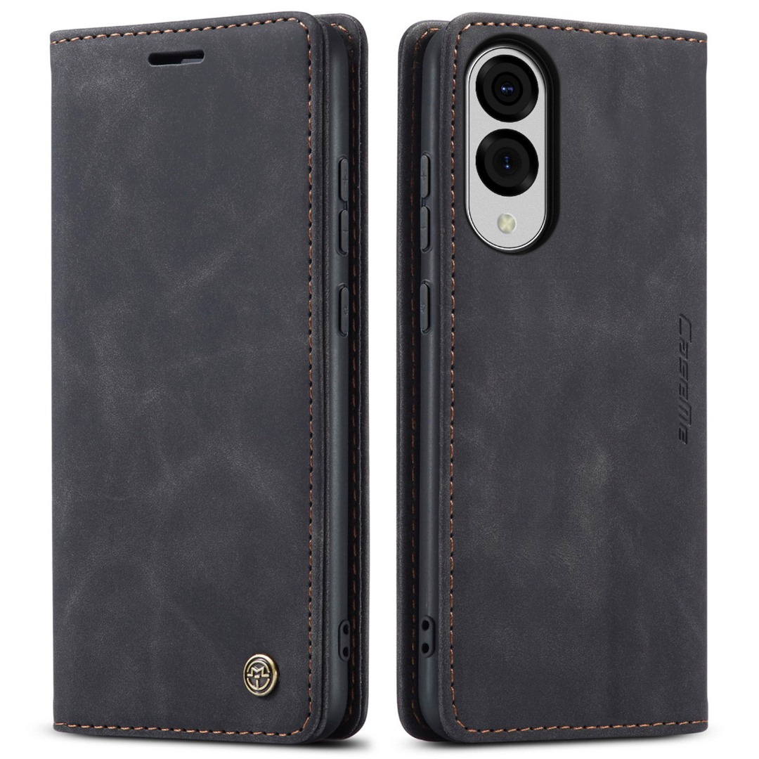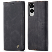Husa slim piele, tip portofel, stand, inchidere magnetica, textura catifelata, Samsung Galaxy S25 Edge - CaseMe, Negru
