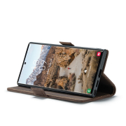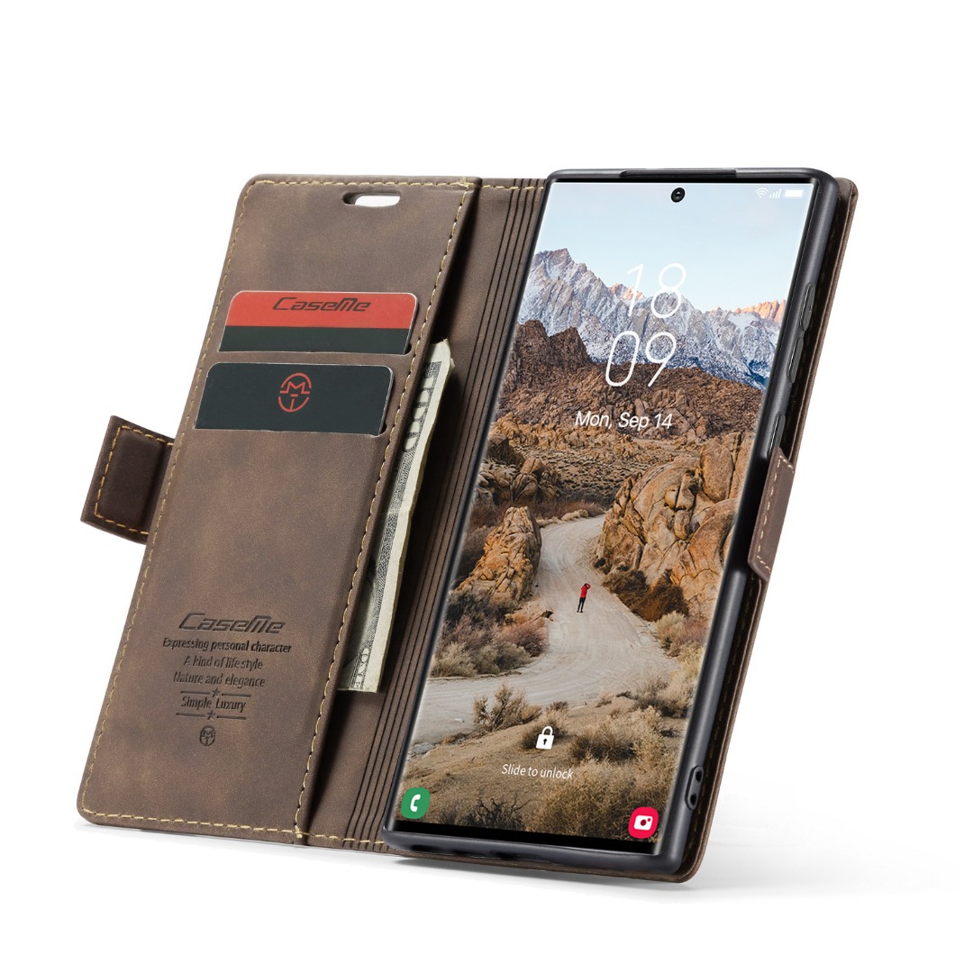 Husa slim piele, tip portofel, stand, inchidere magnetica, textura catifelata, Samsung Galaxy S25 Ultra - CaseMe, Maro coffee