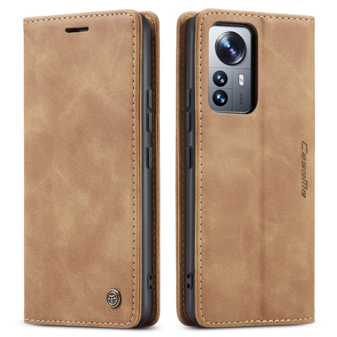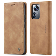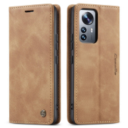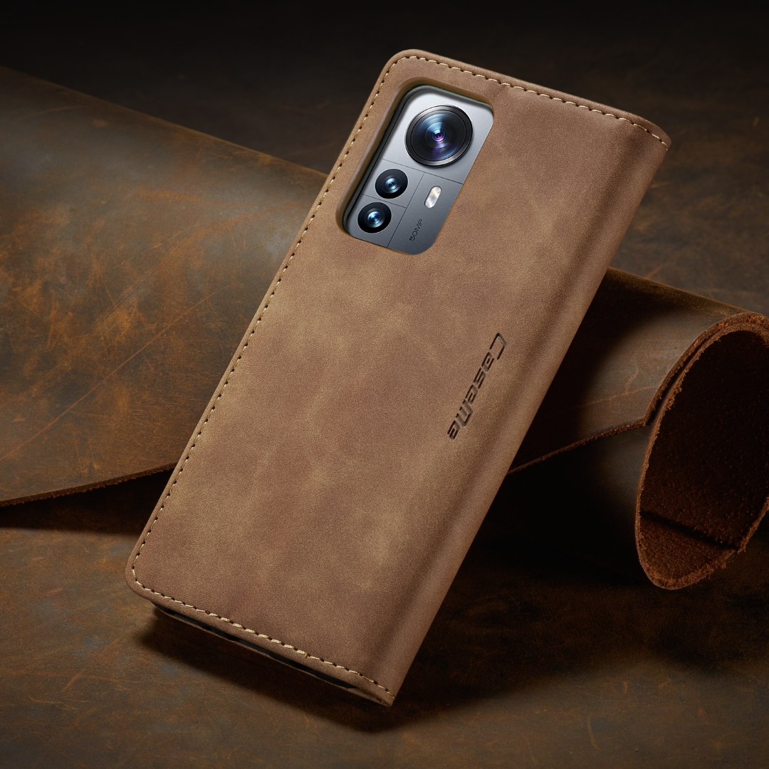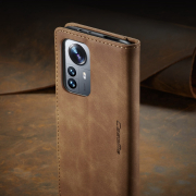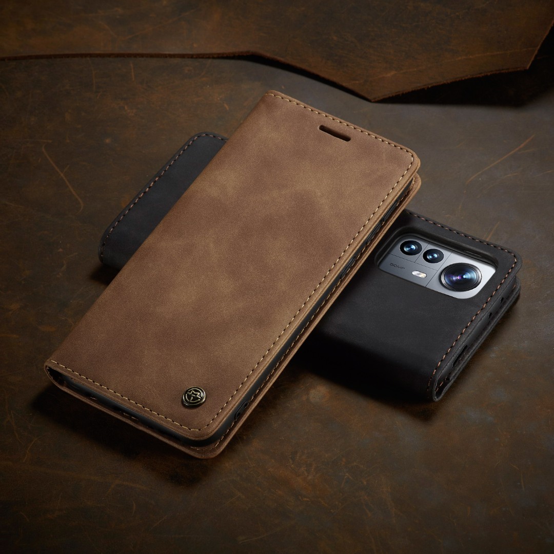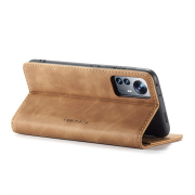 Husa slim piele, tip portofel, stand, inchidere magnetica, textura catifelata, Xiaomi 12 Lite - CaseMe, Maro