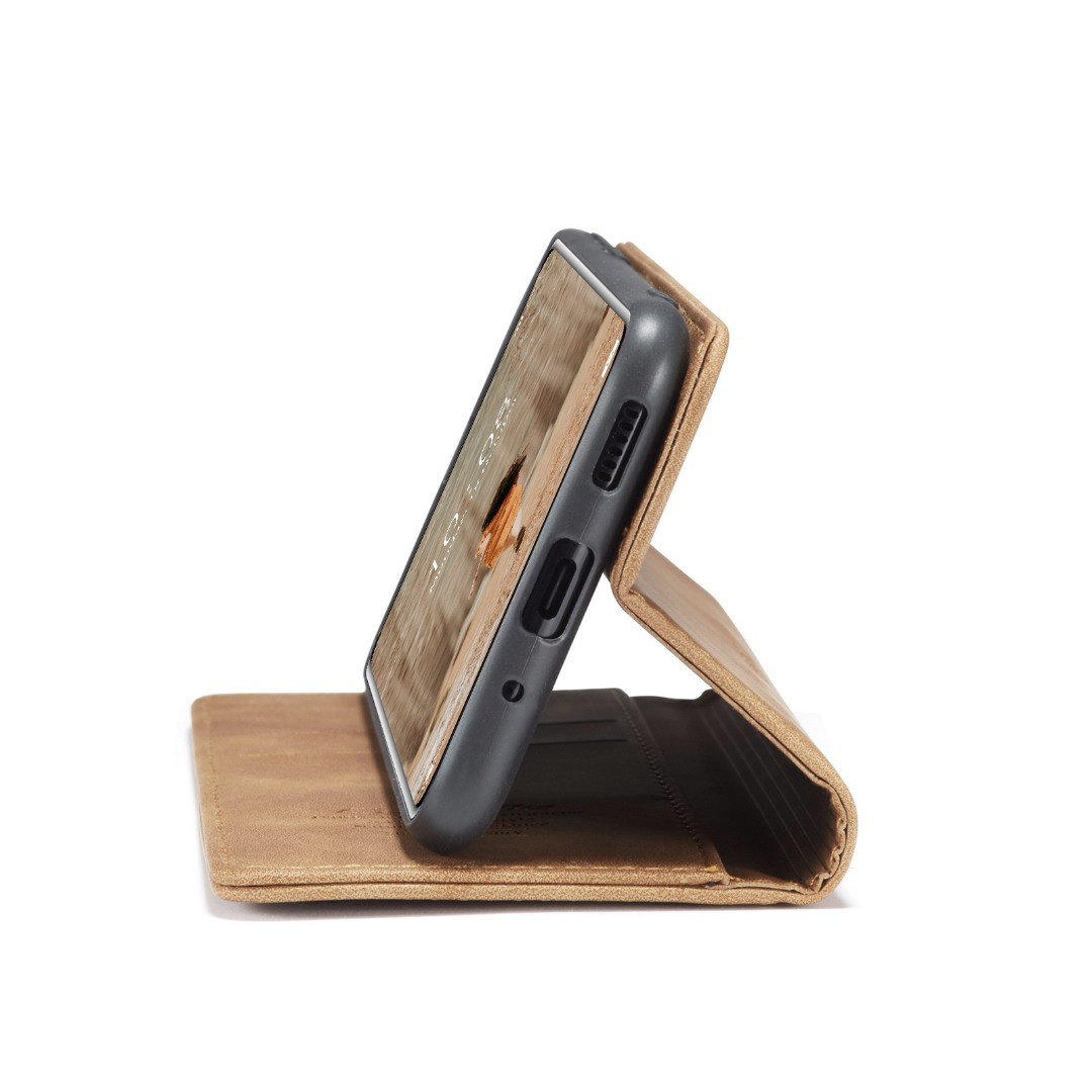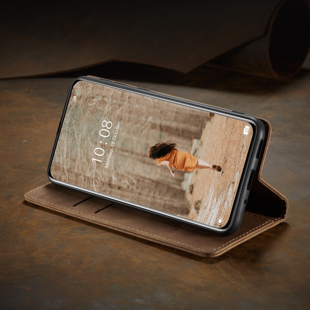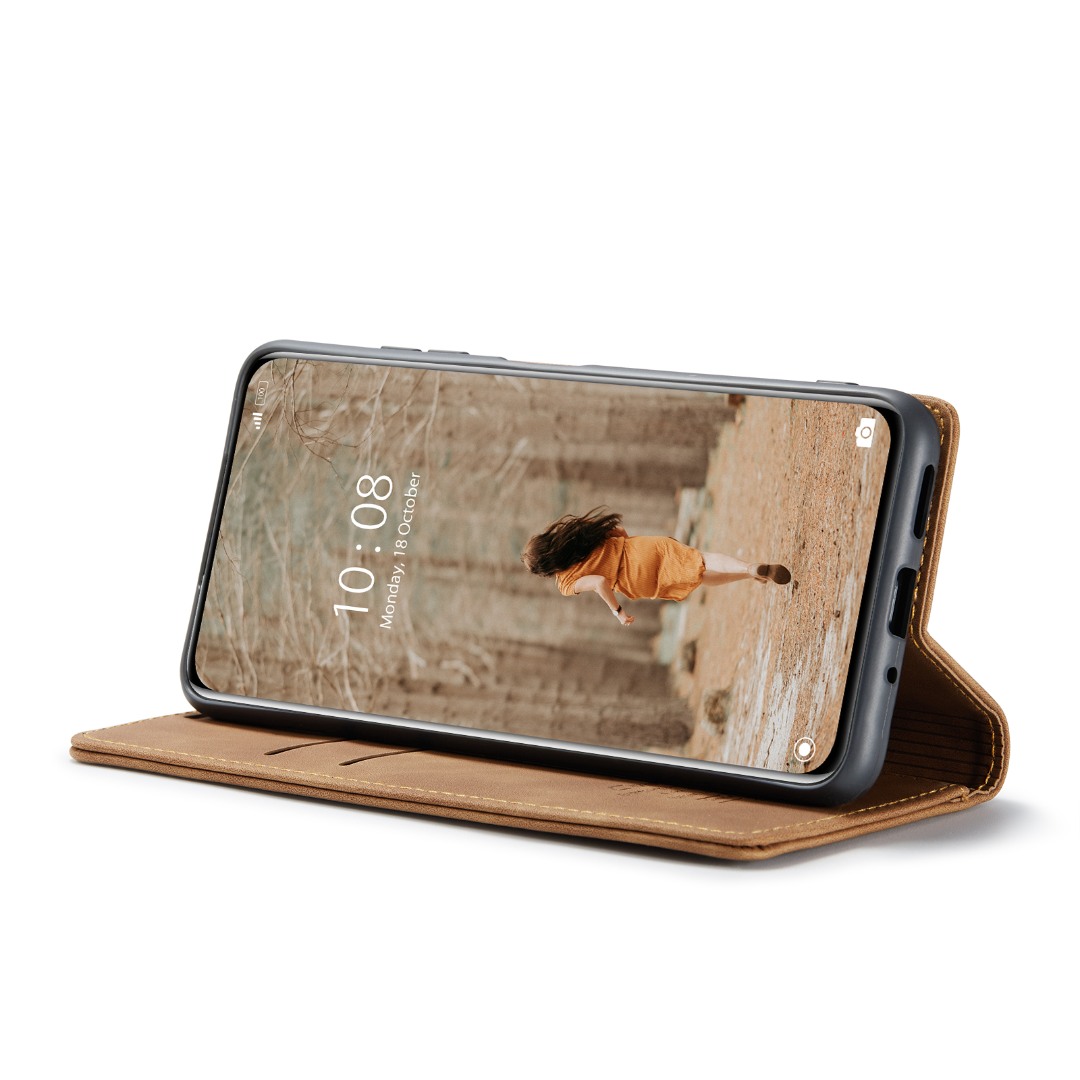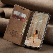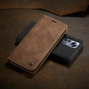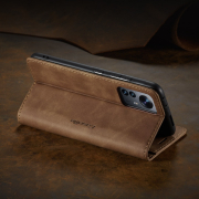 Husa slim piele, tip portofel, stand, inchidere magnetica, textura catifelata, Xiaomi 12 Lite - CaseMe, Maro