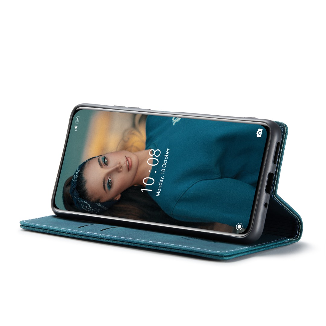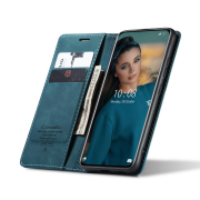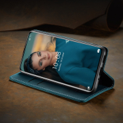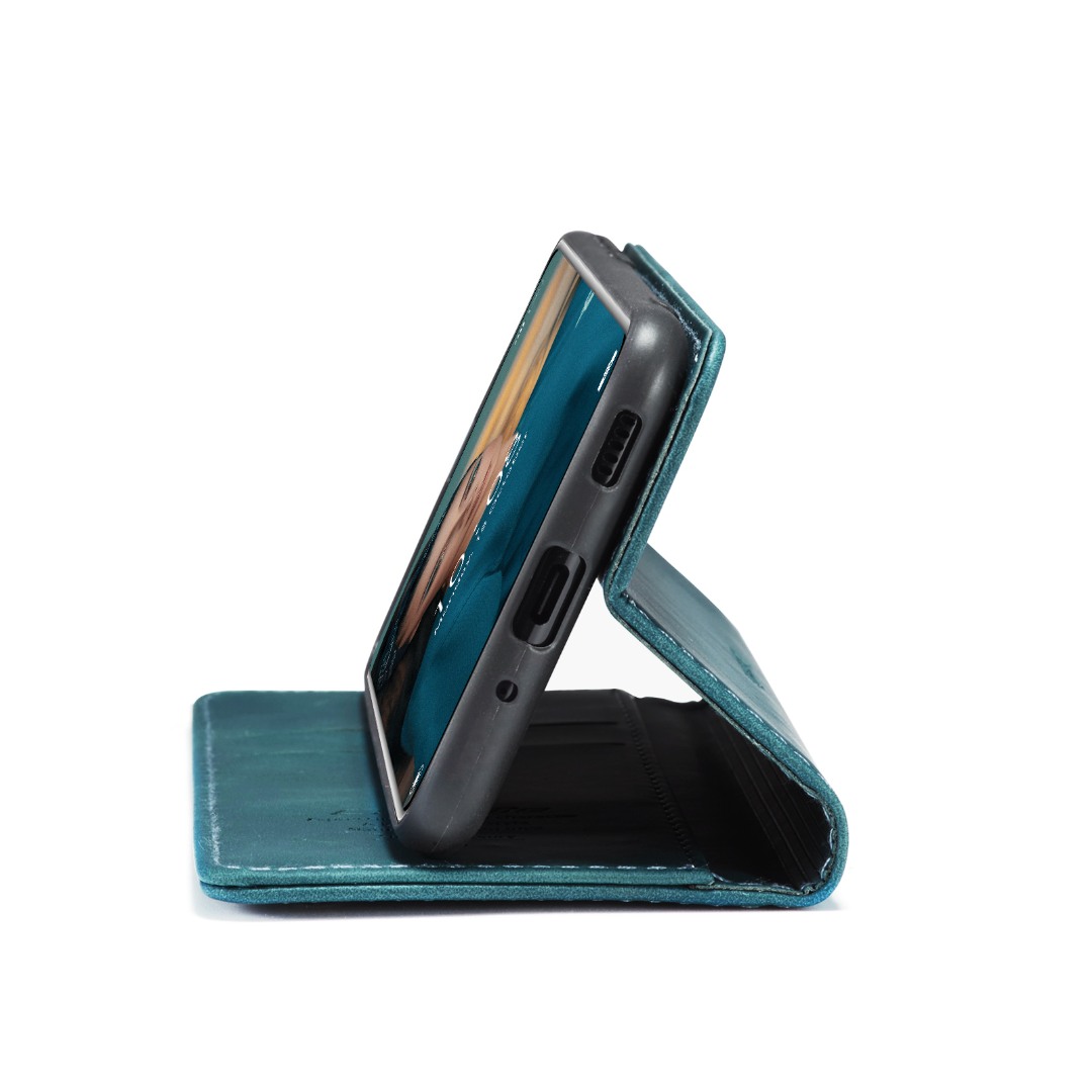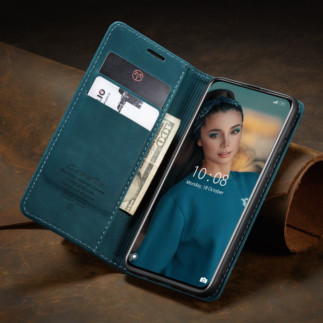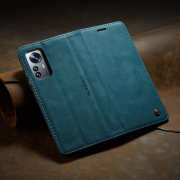 Husa slim piele, tip portofel, stand, inchidere magnetica, textura catifelata, Xiaomi 12 Pro - CaseMe, Albastru verzui