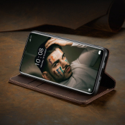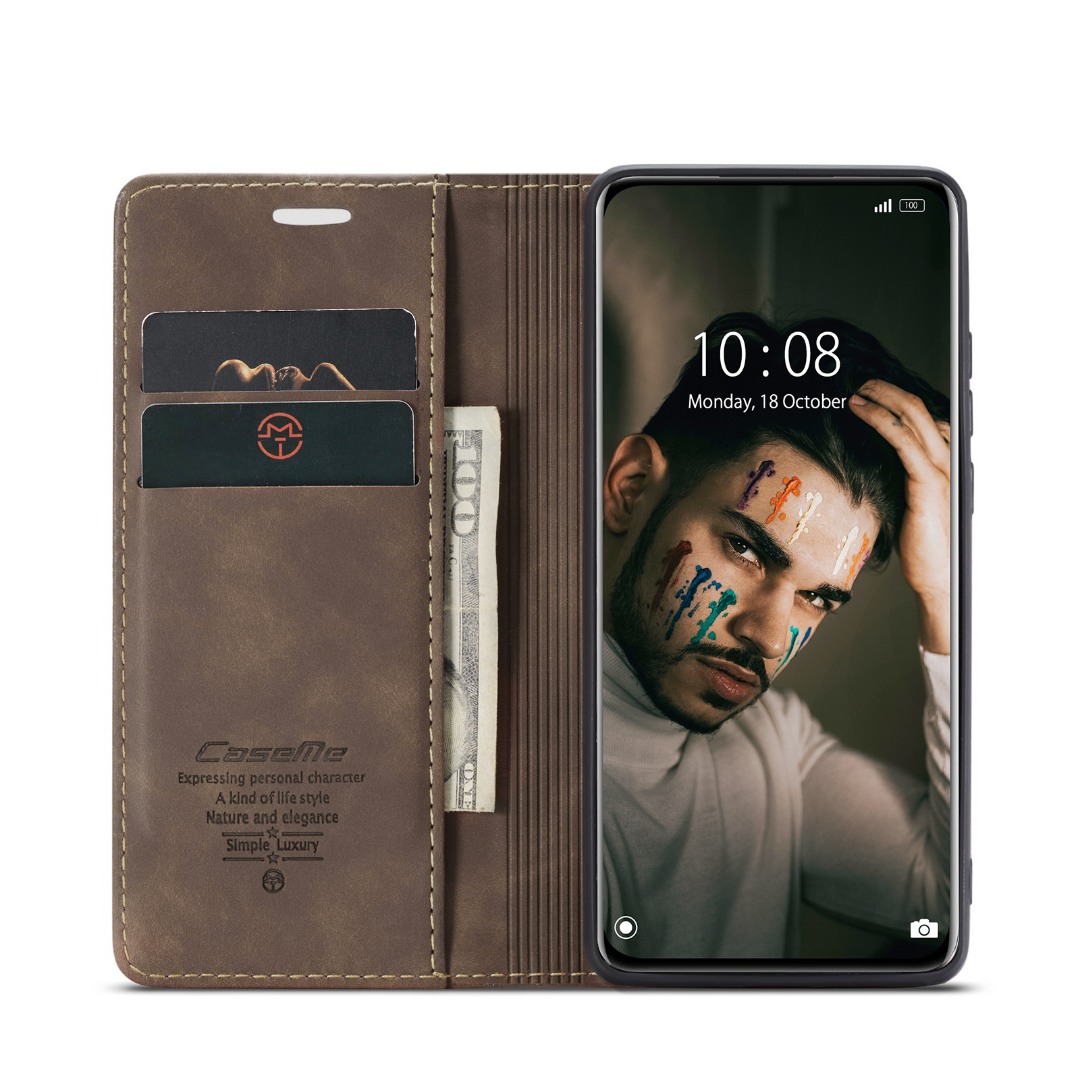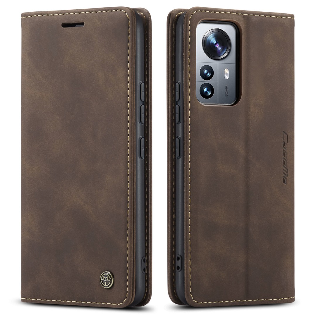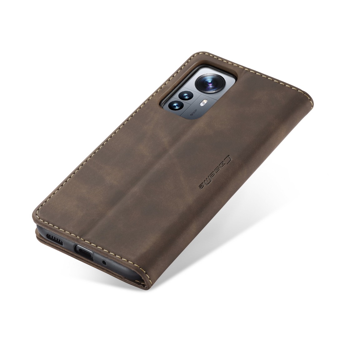 Husa slim piele, tip portofel, stand, inchidere magnetica, textura catifelata, Xiaomi 12 Pro - CaseMe, Maro coffee