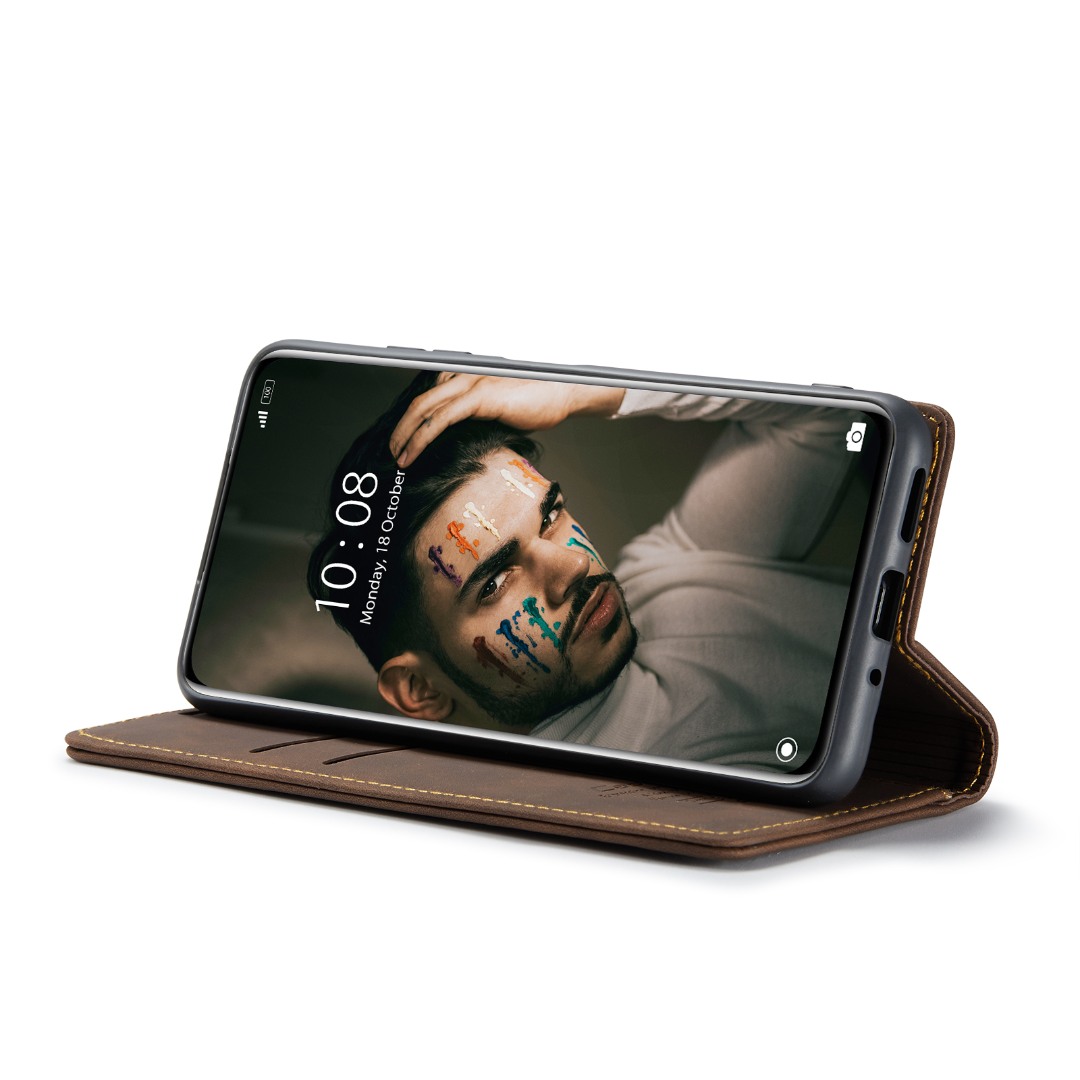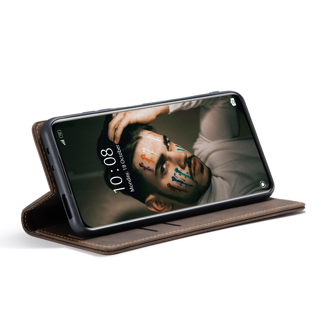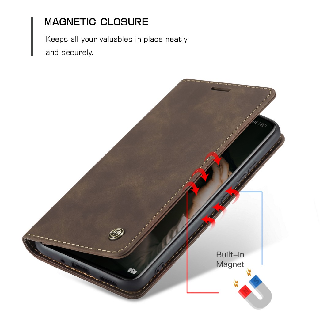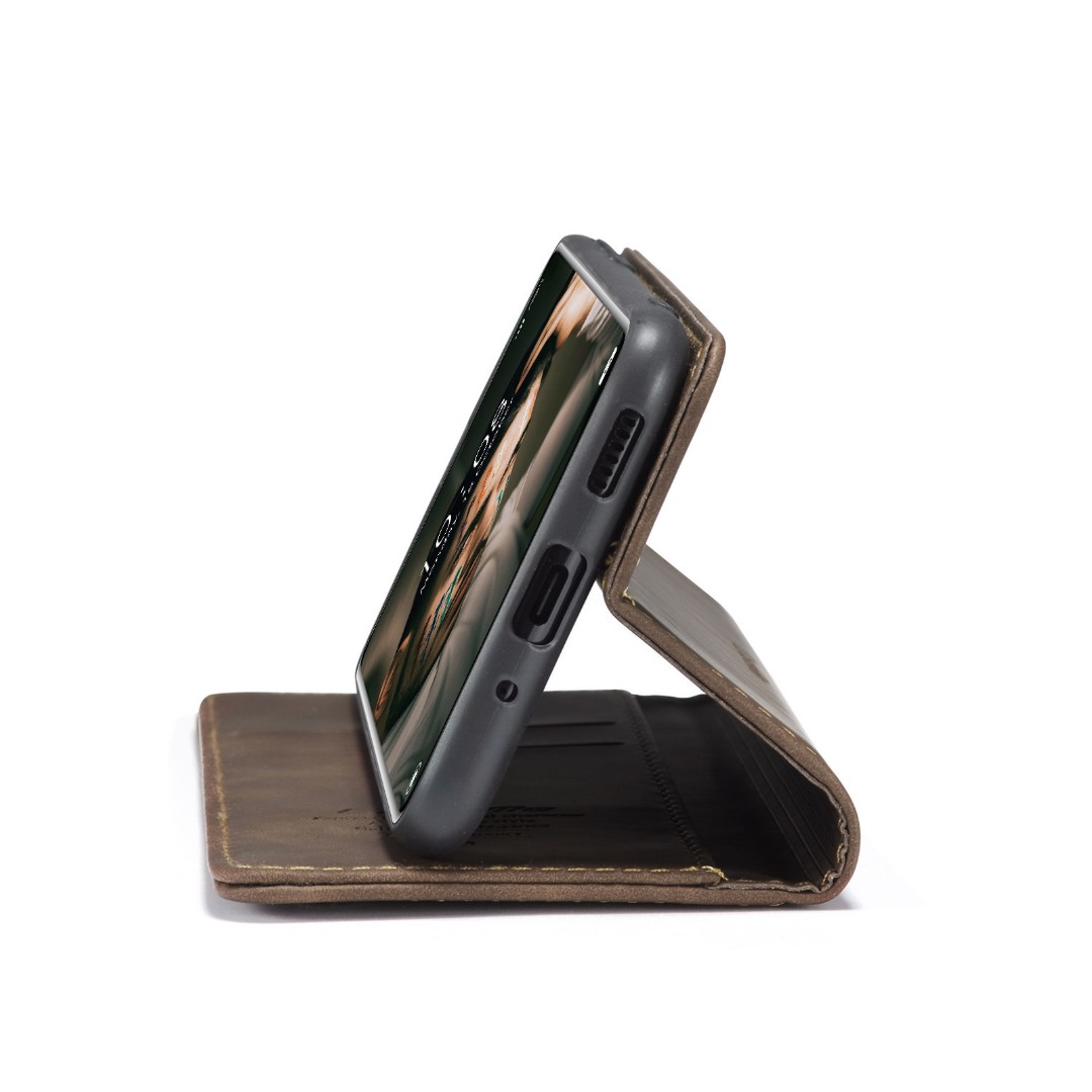 Husa slim piele, tip portofel, stand, inchidere magnetica, textura catifelata, Xiaomi 12 Pro - CaseMe, Maro coffee