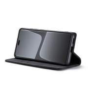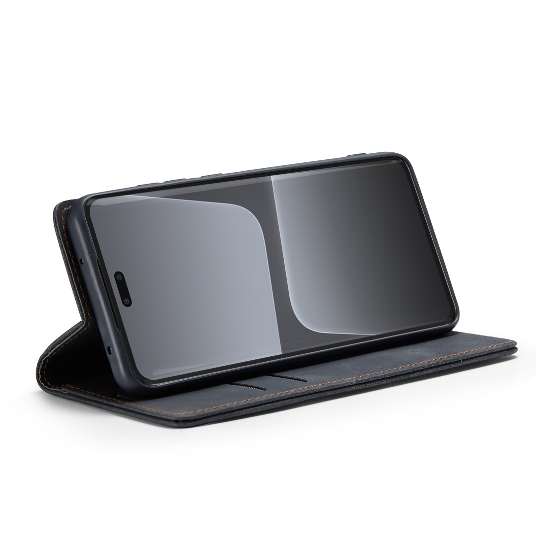 Husa slim piele, tip portofel, stand, inchidere magnetica, textura catifelata, Xiaomi 13 Lite - CaseMe, Negru