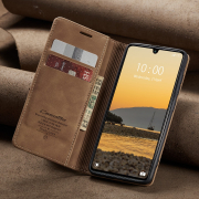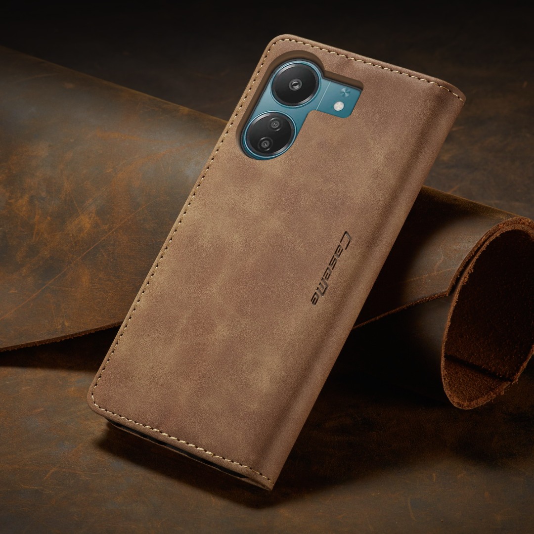 Husa slim piele, tip portofel, stand, inchidere magnetica, textura catifelata, Xiaomi Redmi 13C - CaseMe, Maro