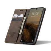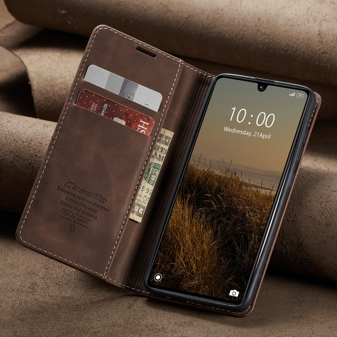 Husa slim piele, tip portofel, stand, inchidere magnetica, textura catifelata, Xiaomi Redmi 13C - CaseMe, Maro coffee