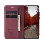 Husa slim piele, tip portofel, stand, inchidere magnetica, textura catifelata, Xiaomi 14 Ultra - CaseMe, Visiniu