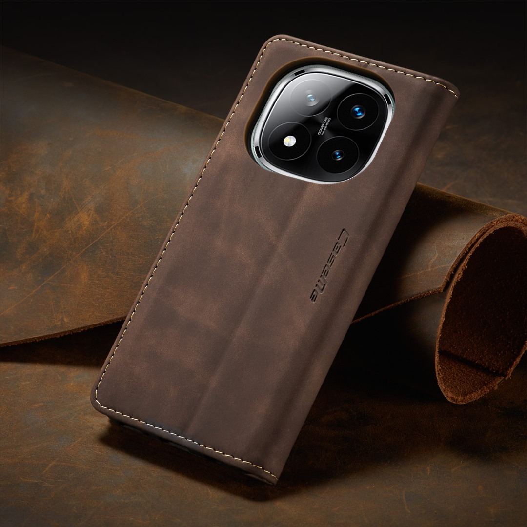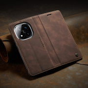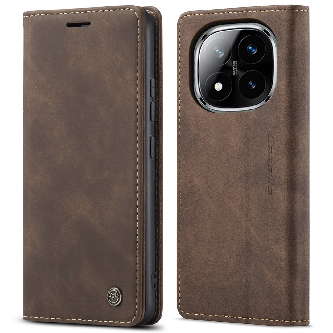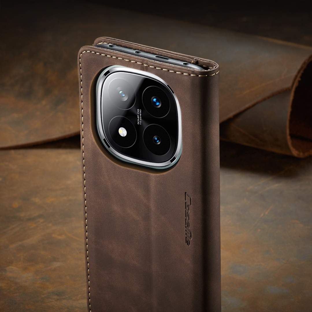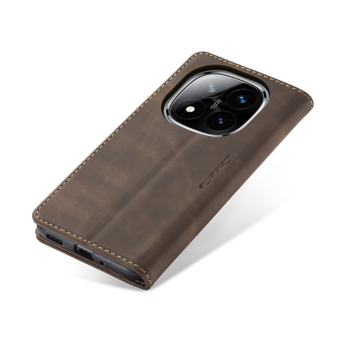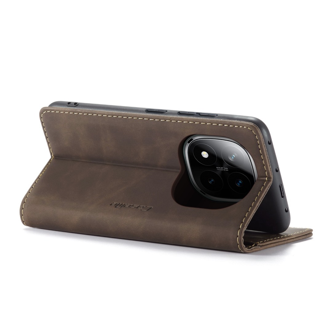 Husa slim piele, tip portofel, stand, inchidere magnetica, textura catifelata, Xiaomi Redmi Note 14 Pro 4G - CaseMe, Maro coffee