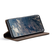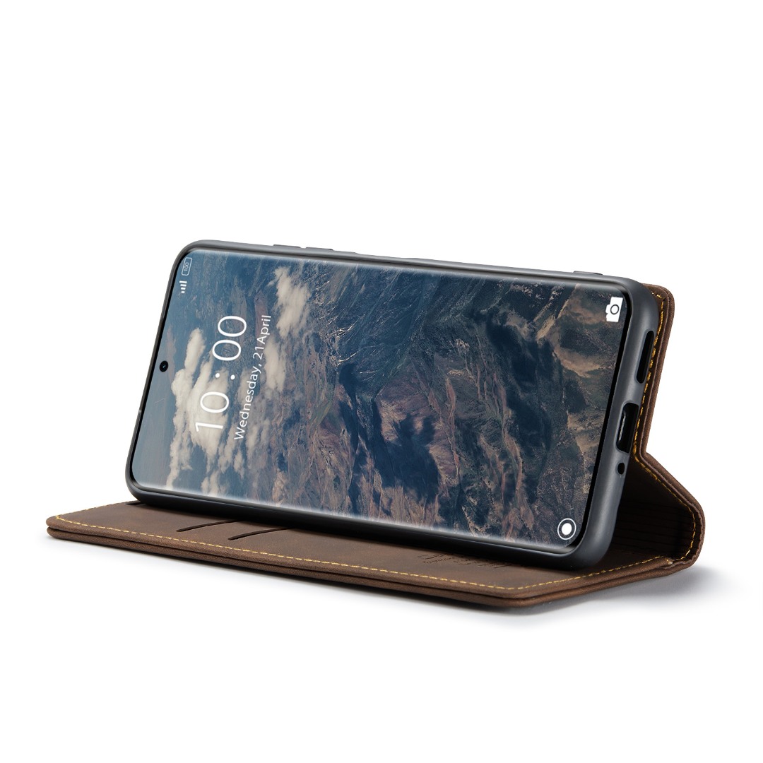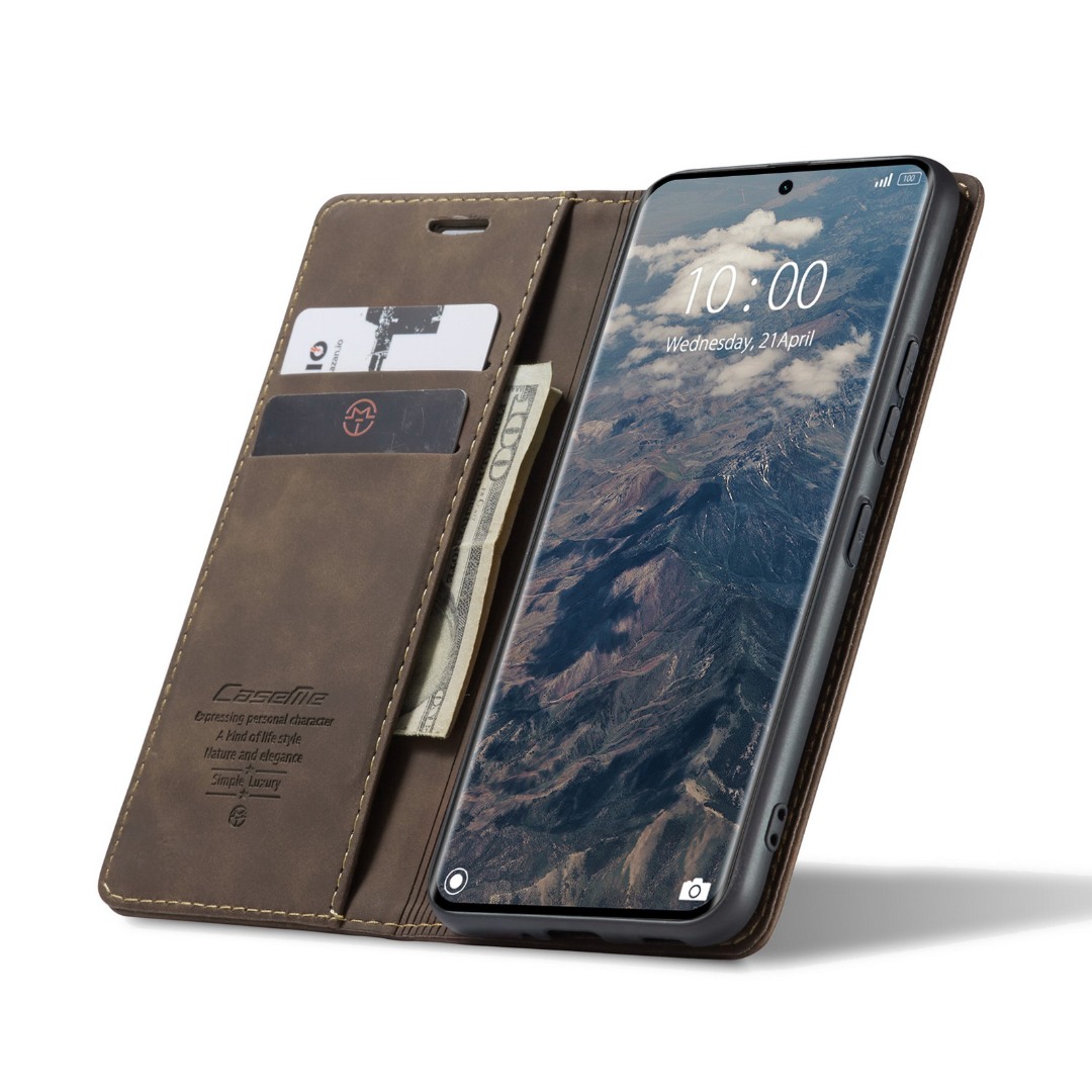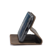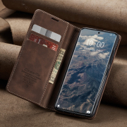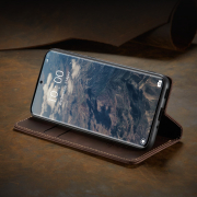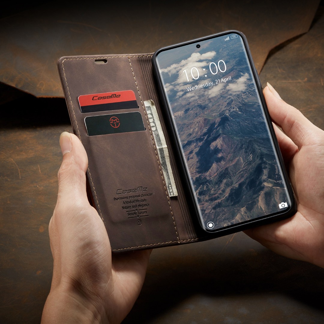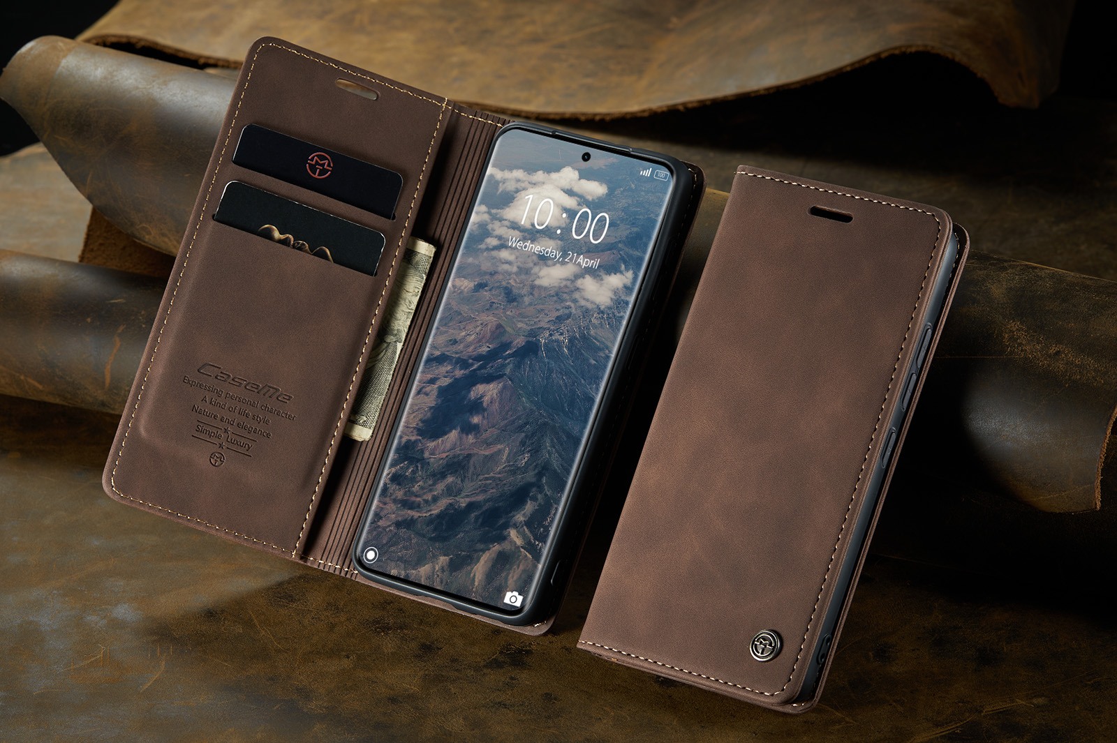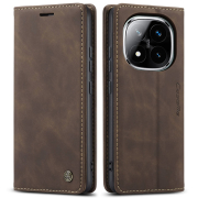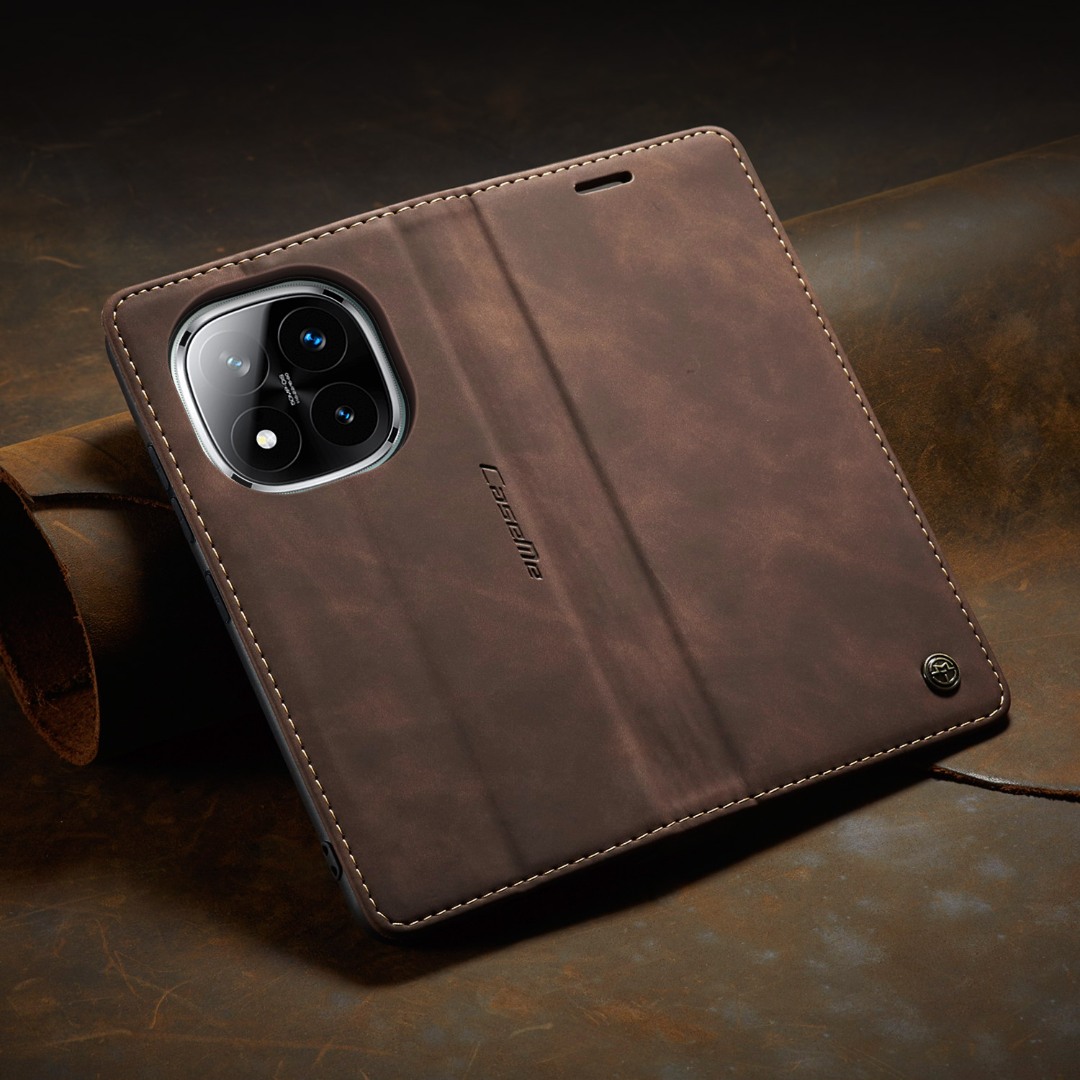 Husa slim piele, tip portofel, stand, inchidere magnetica, textura catifelata, Xiaomi Redmi Note 14 Pro 4G - CaseMe, Maro coffee