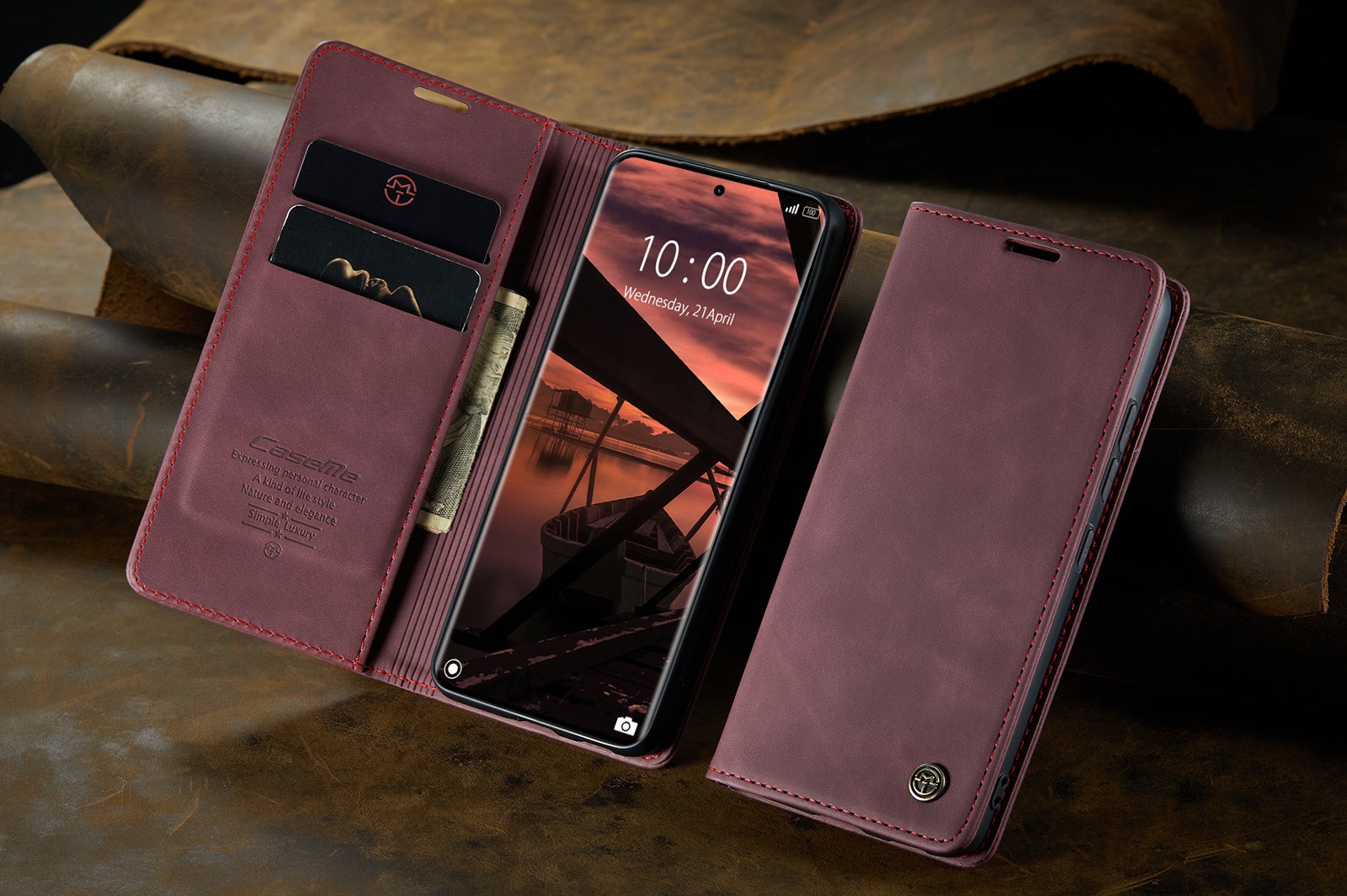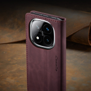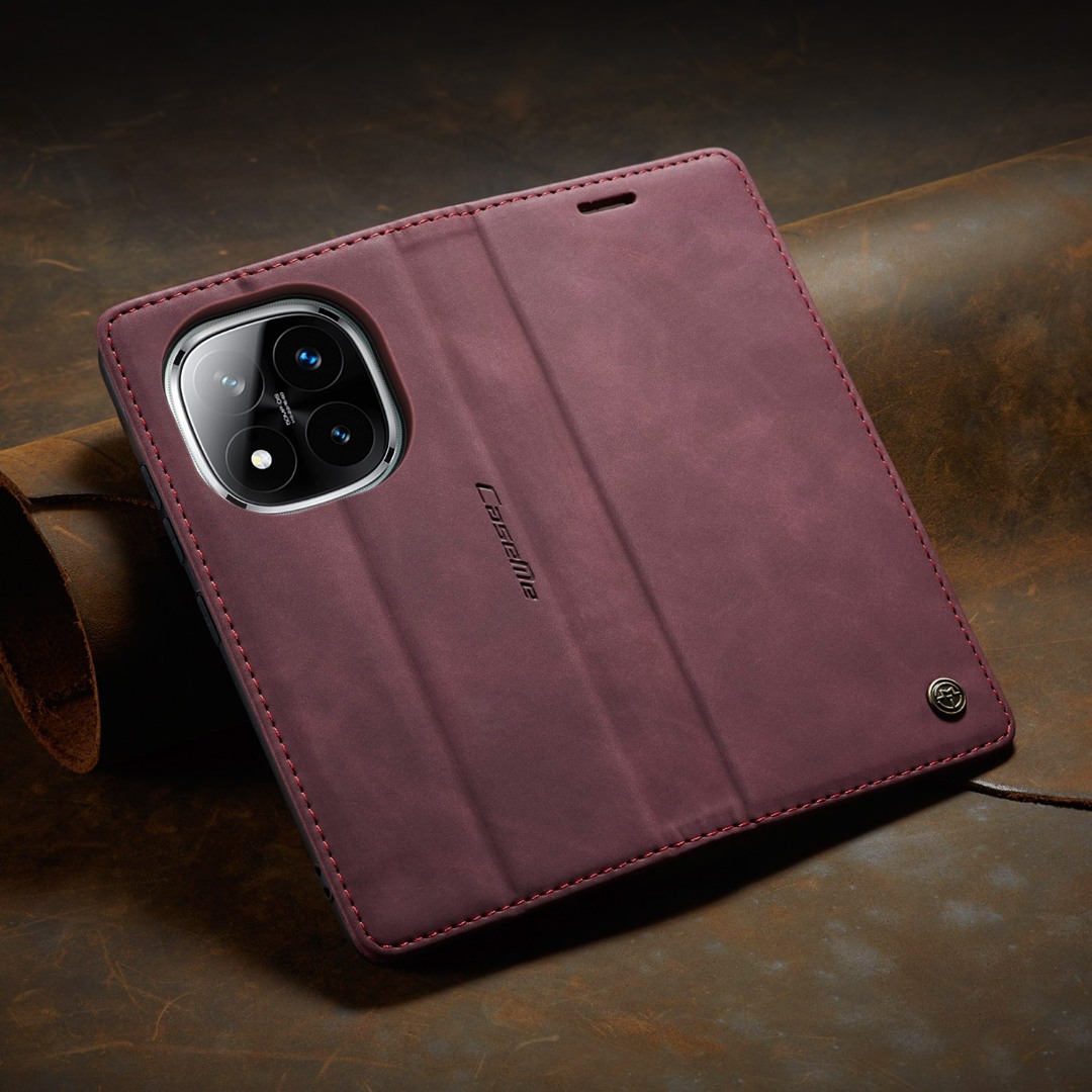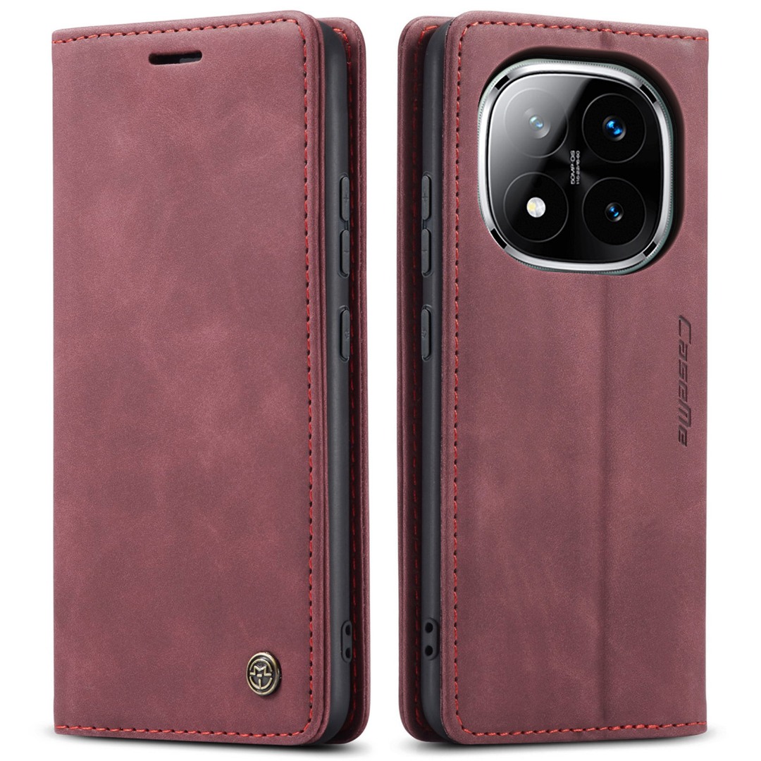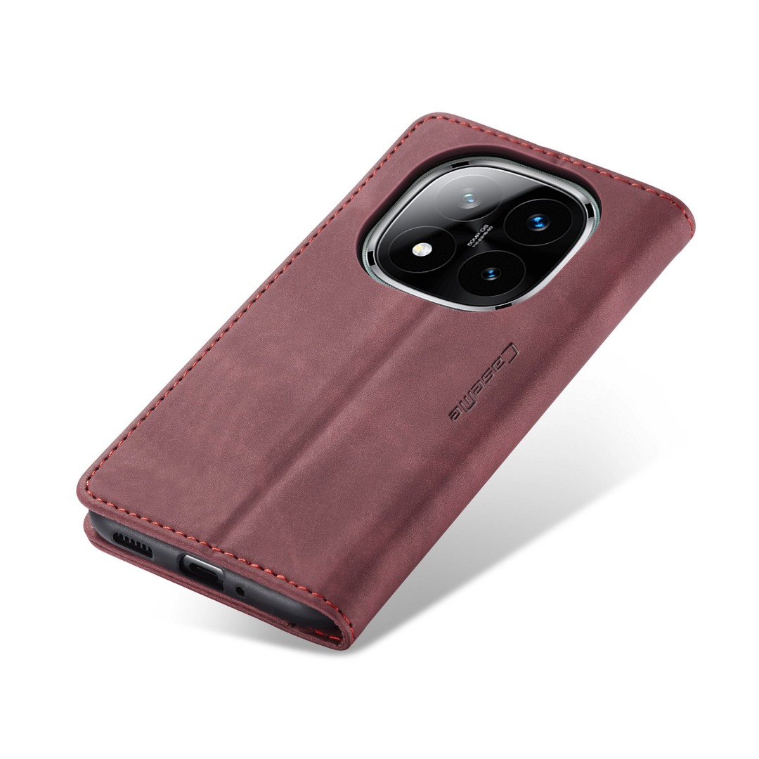 Husa slim piele, tip portofel, stand, inchidere magnetica, textura catifelata, Xiaomi Redmi Note 14 Pro 4G - CaseMe, Visiniu