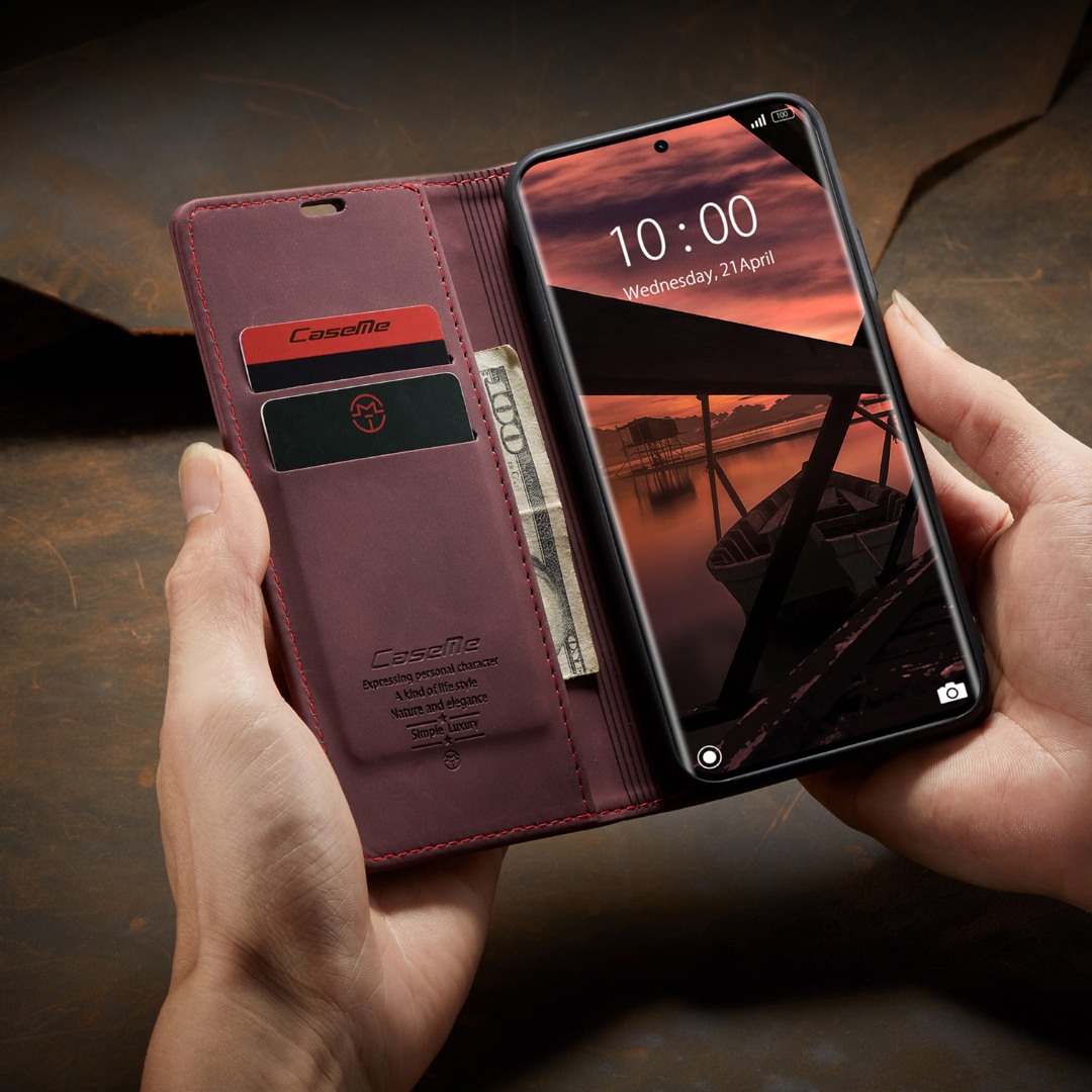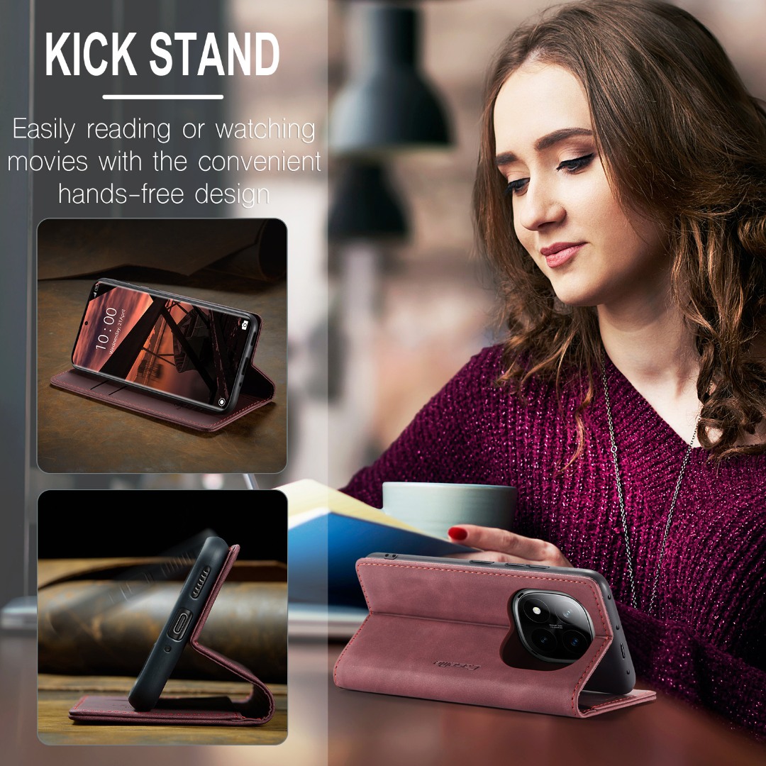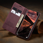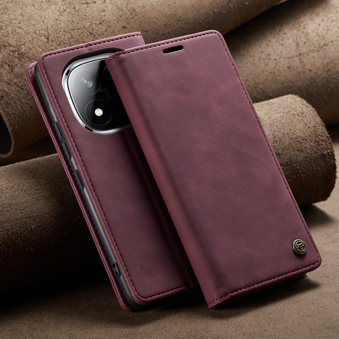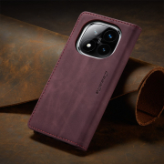 Husa slim piele, tip portofel, stand, inchidere magnetica, textura catifelata, Xiaomi Redmi Note 14 Pro 4G - CaseMe, Visiniu