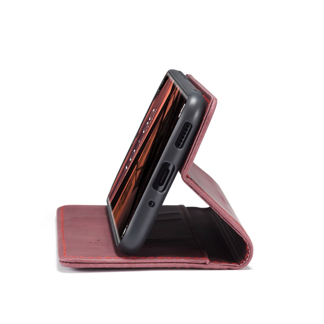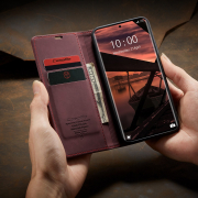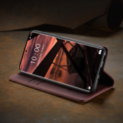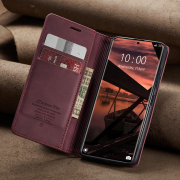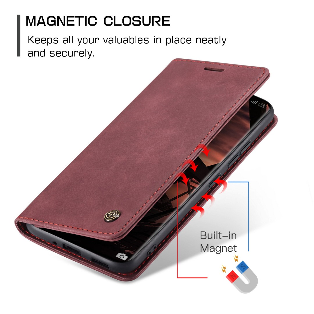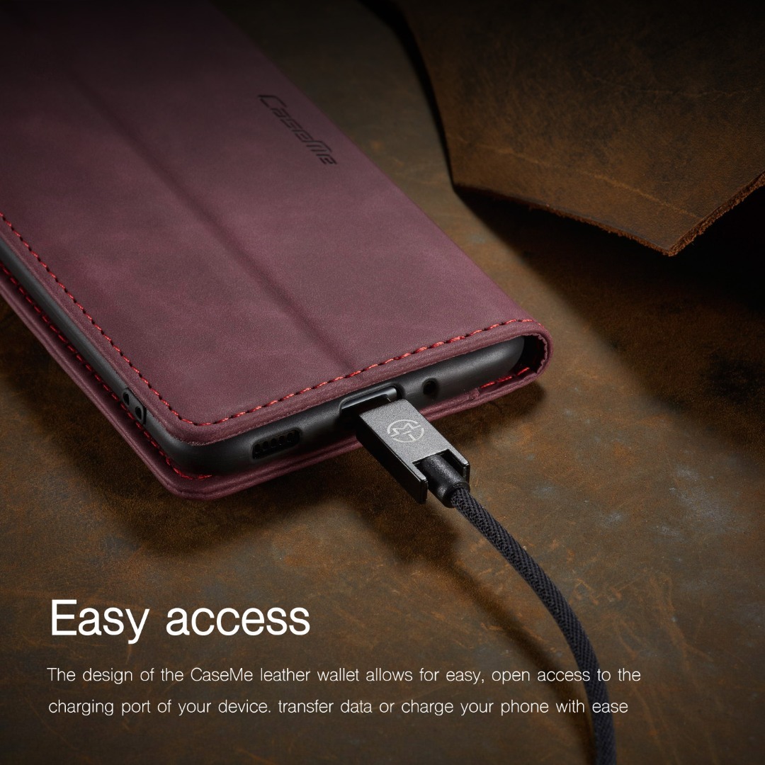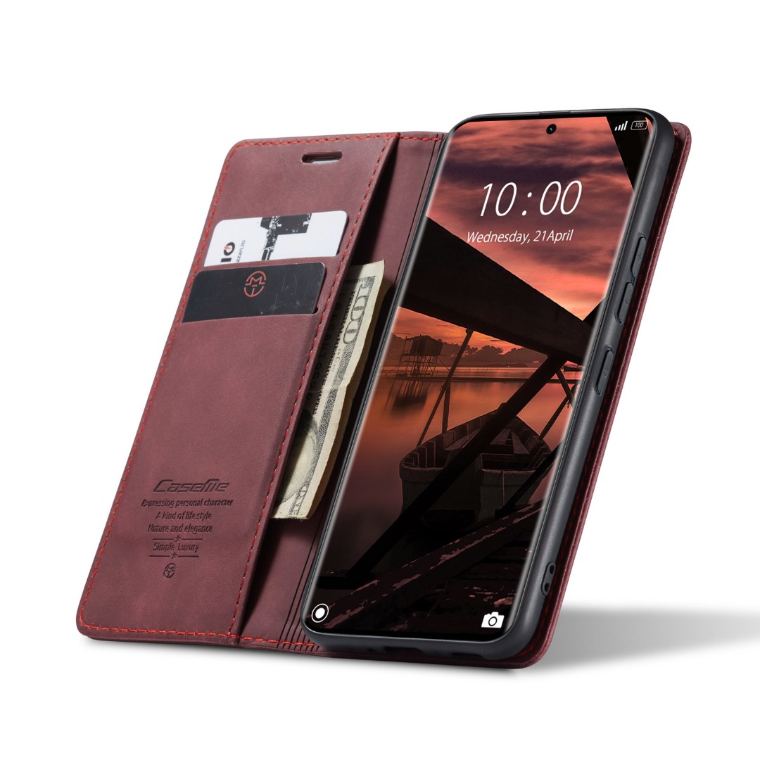 Husa slim piele, tip portofel, stand, inchidere magnetica, textura catifelata, Xiaomi Redmi Note 14 Pro 4G - CaseMe, Visiniu