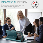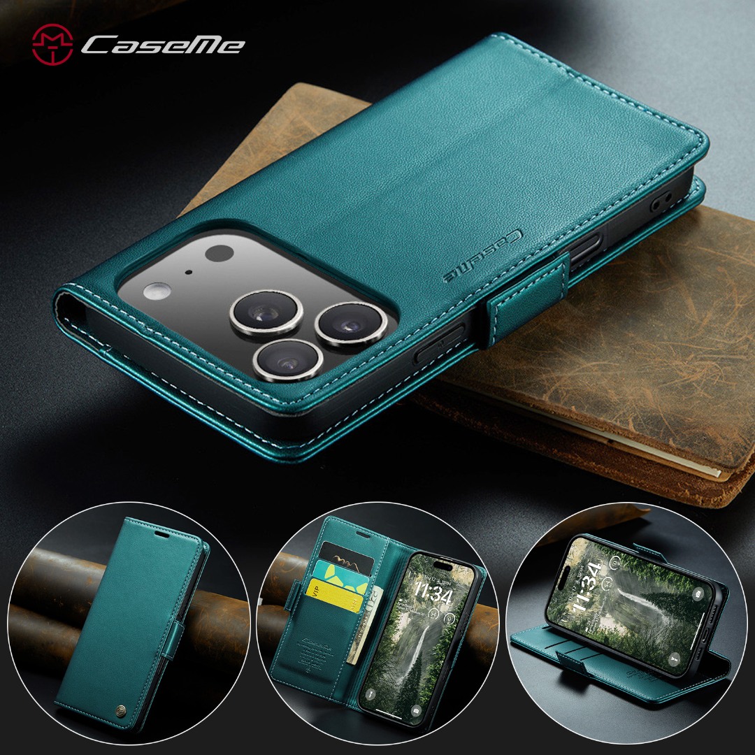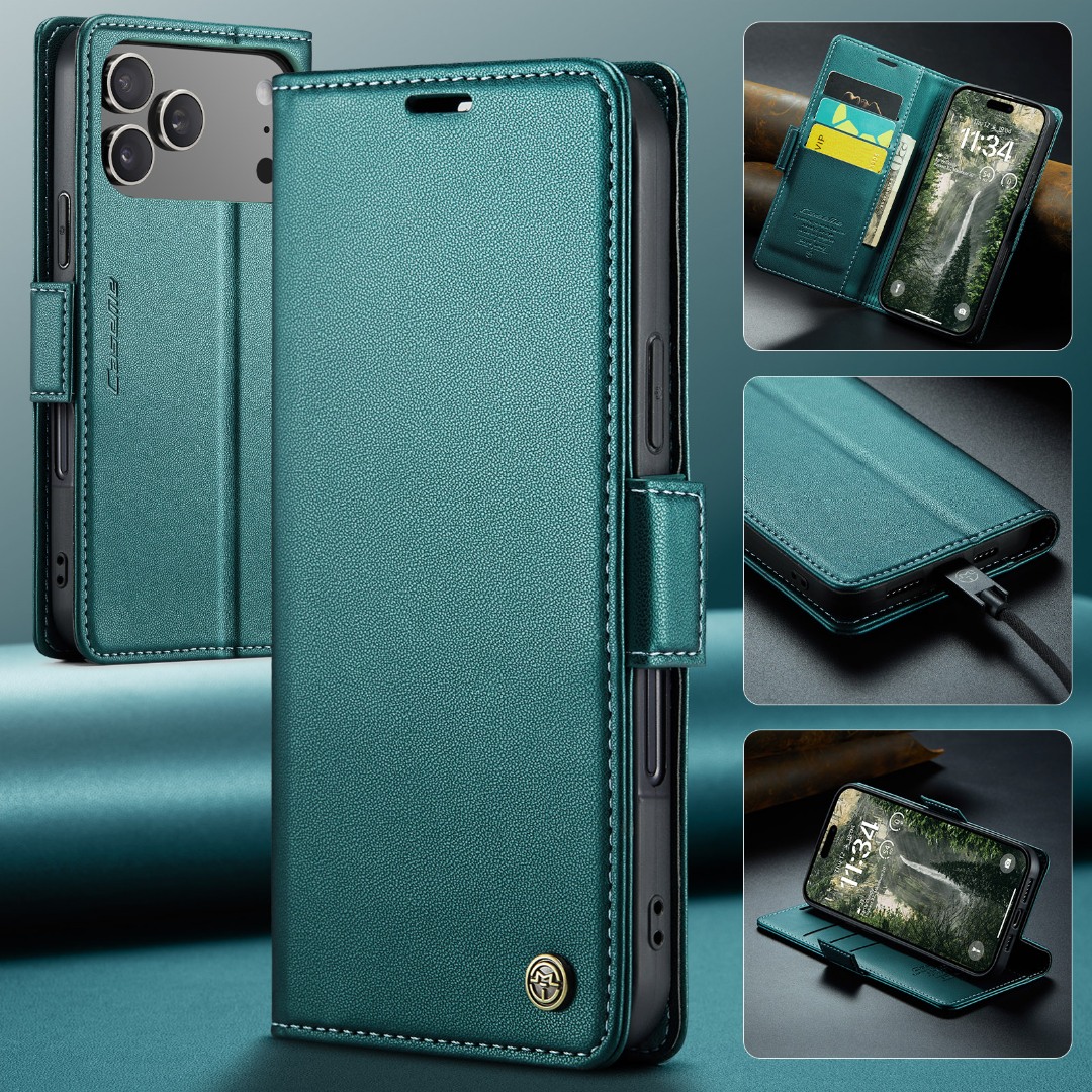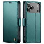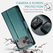 Husa slim piele, tip portofel, stand, inchidere sigura magnetica, textura moale si aderenta in mana, protectie RFID, iPhone 17 Pro Max - CaseMe, Verde